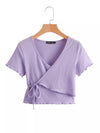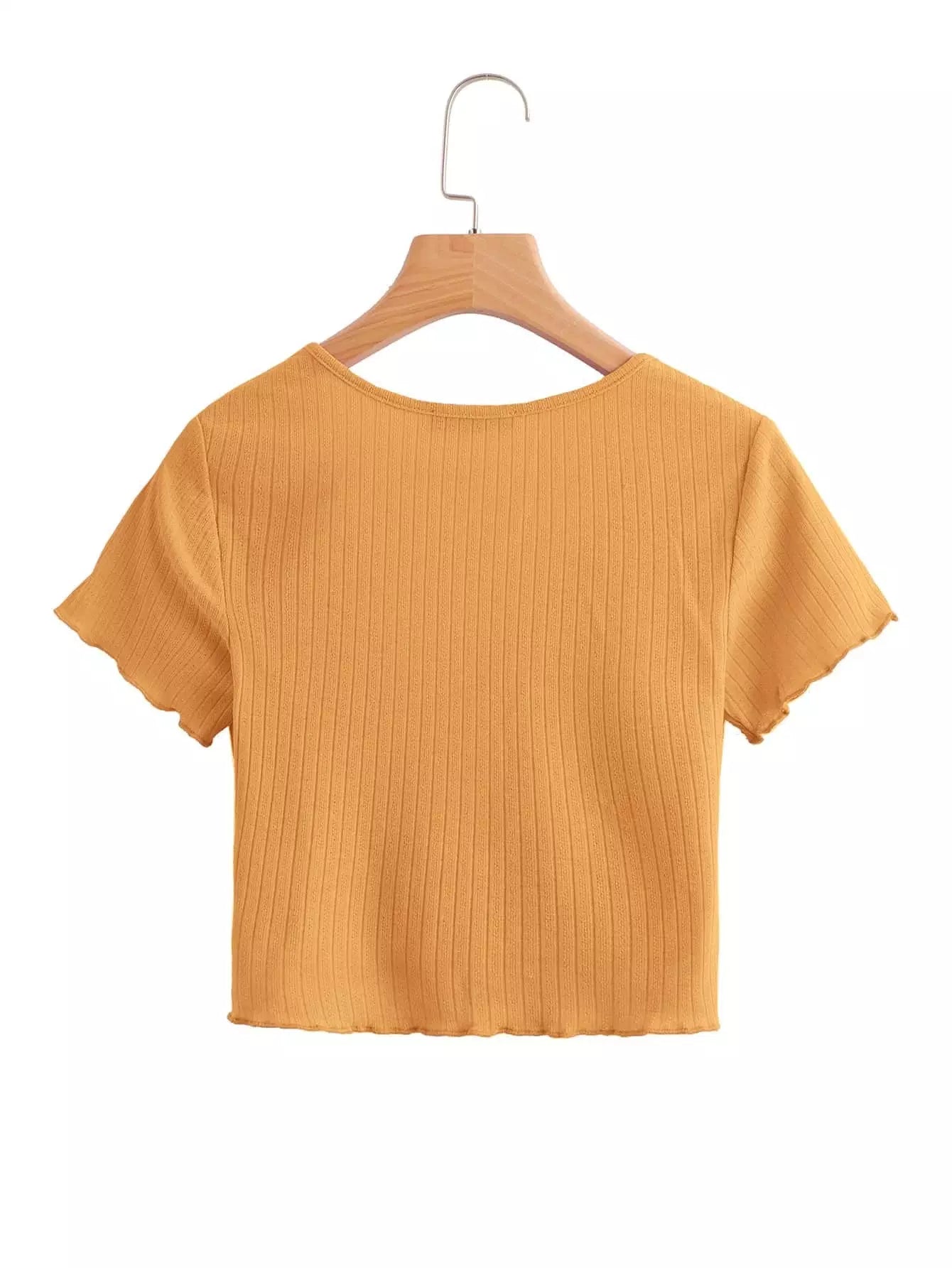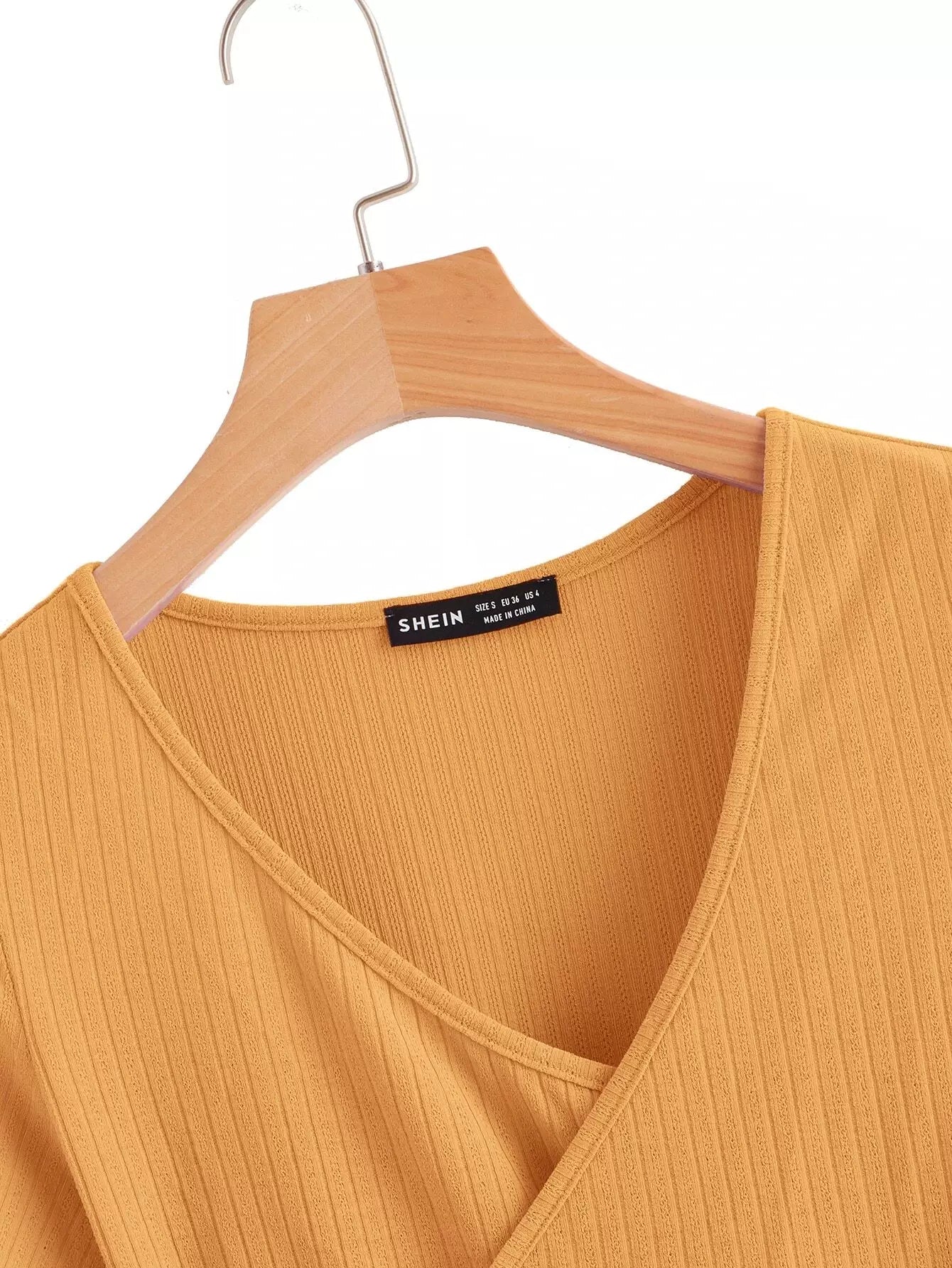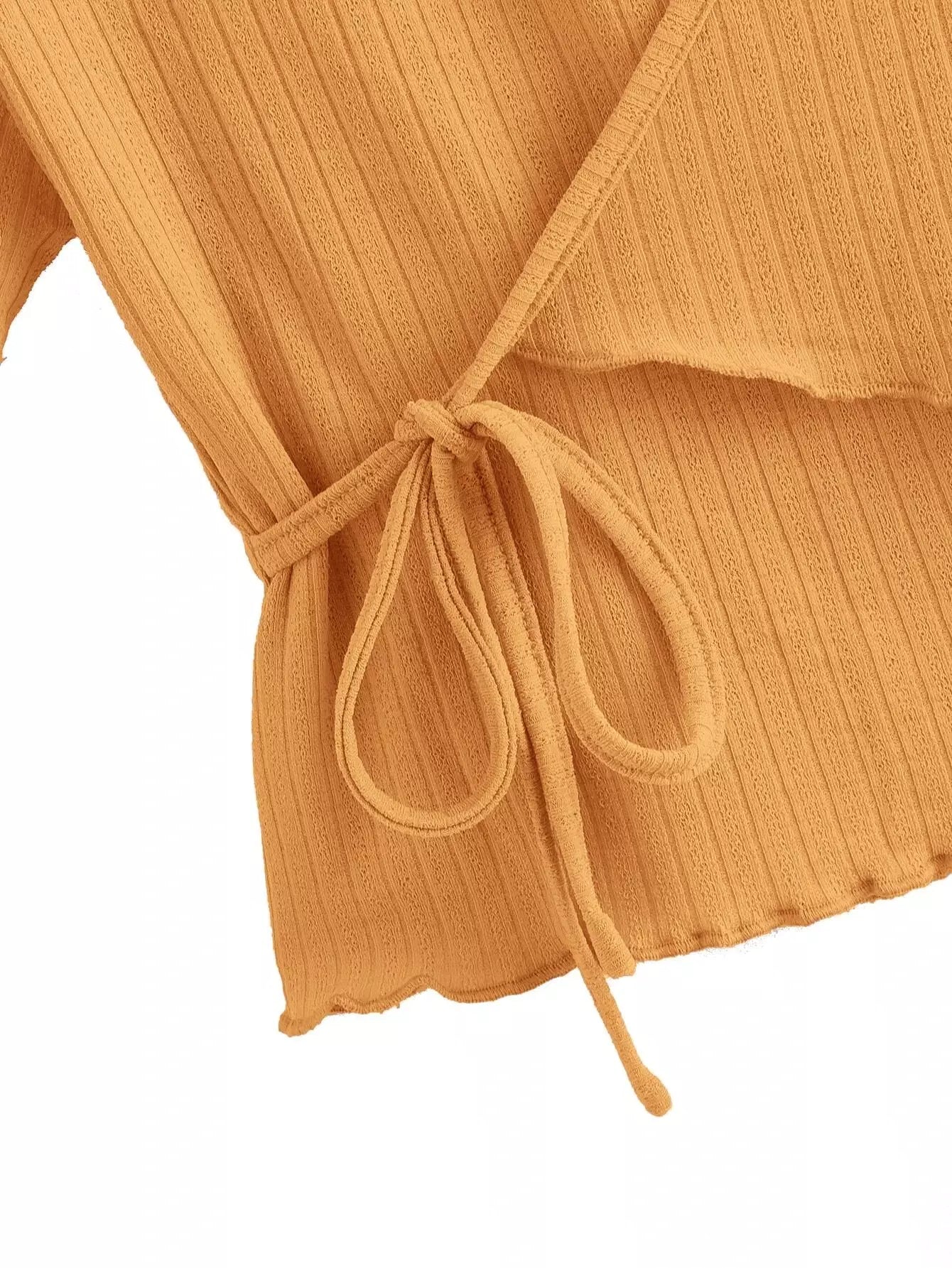 بلوزة ملفوفة بحواف مضلعة بحواف خس مضلعة