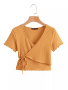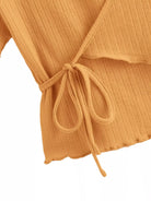 للنساء - بلوزة ملفوفة بحواف خس مضلعة