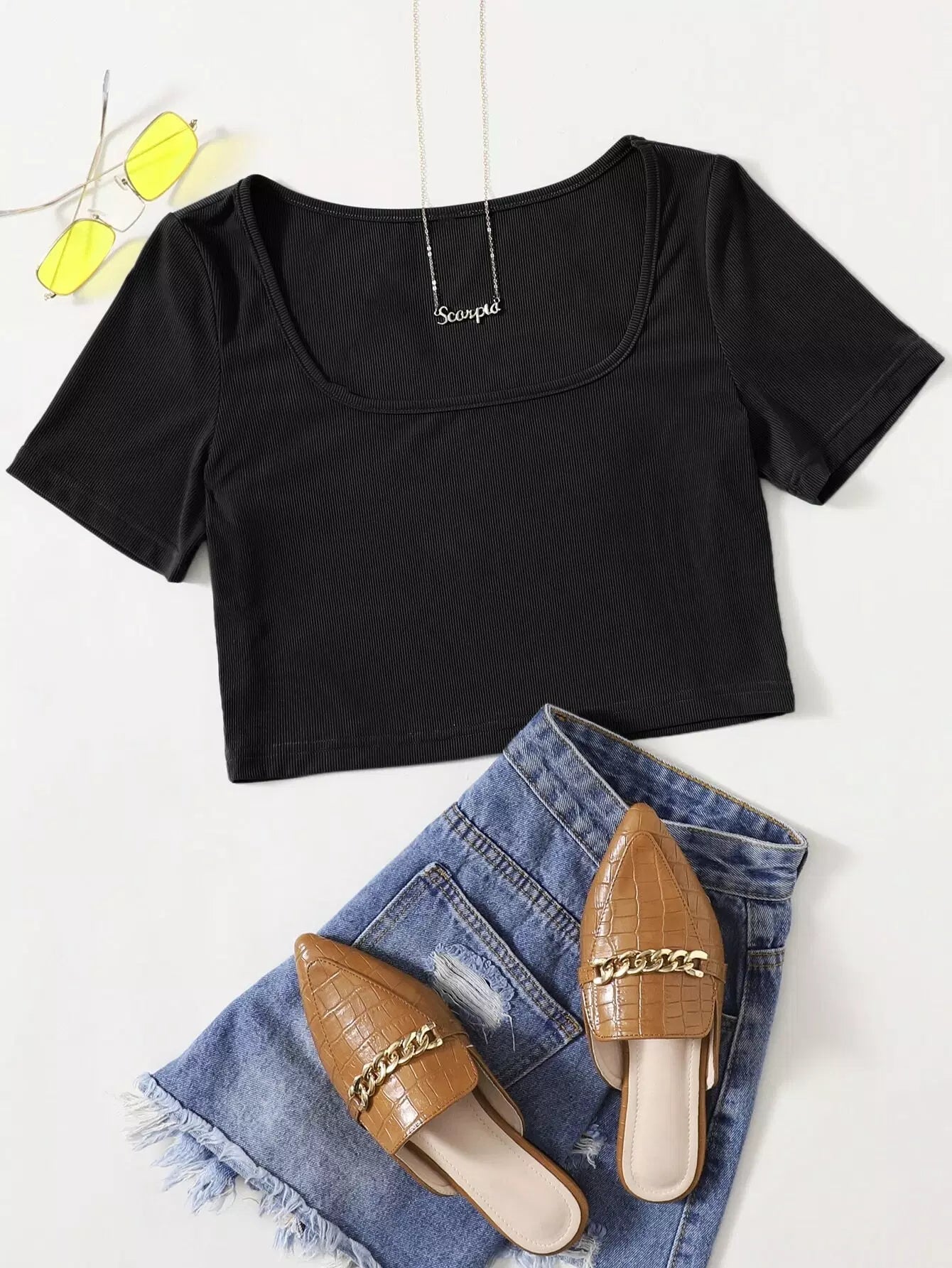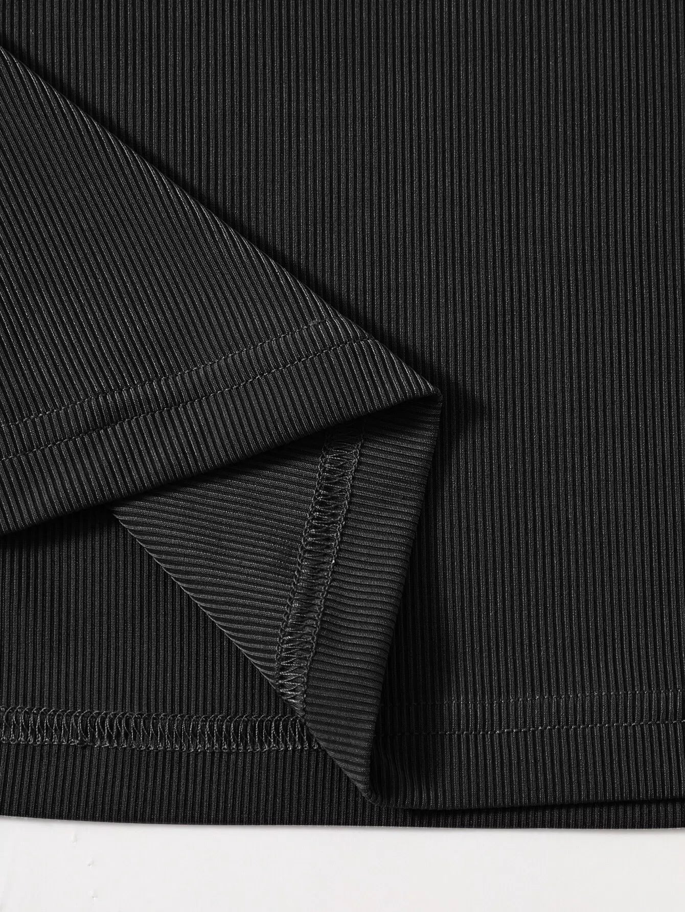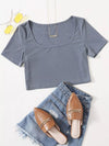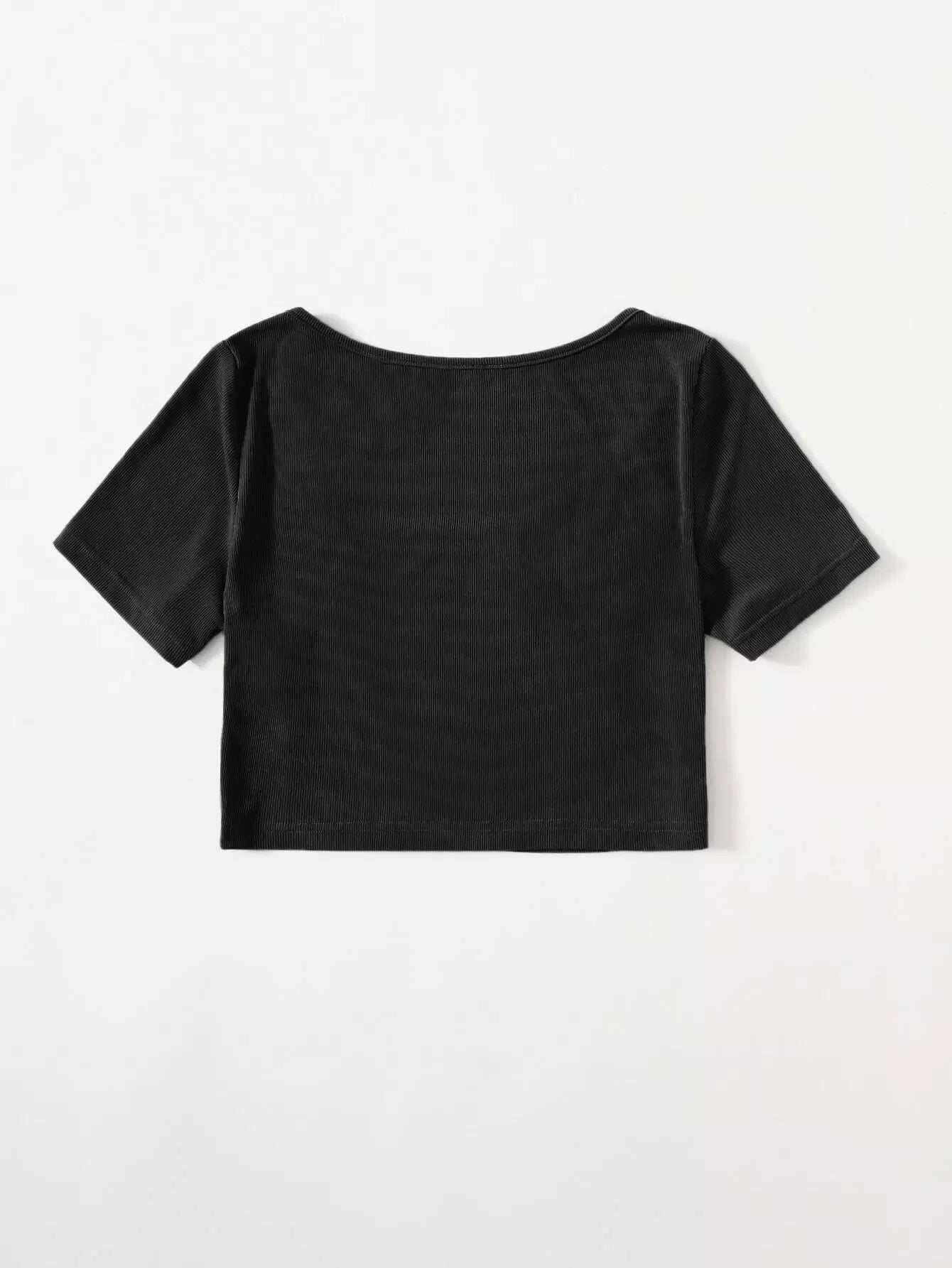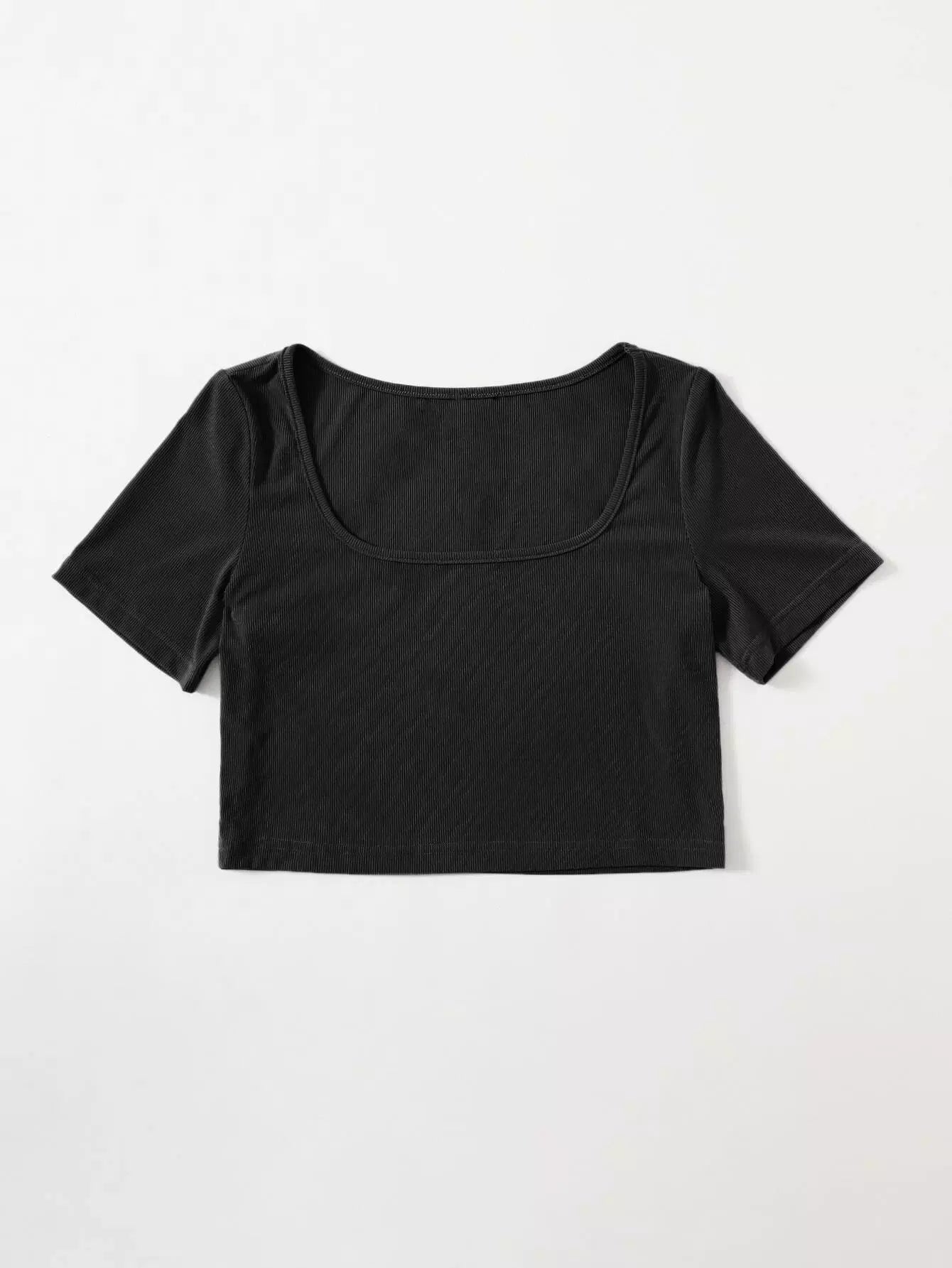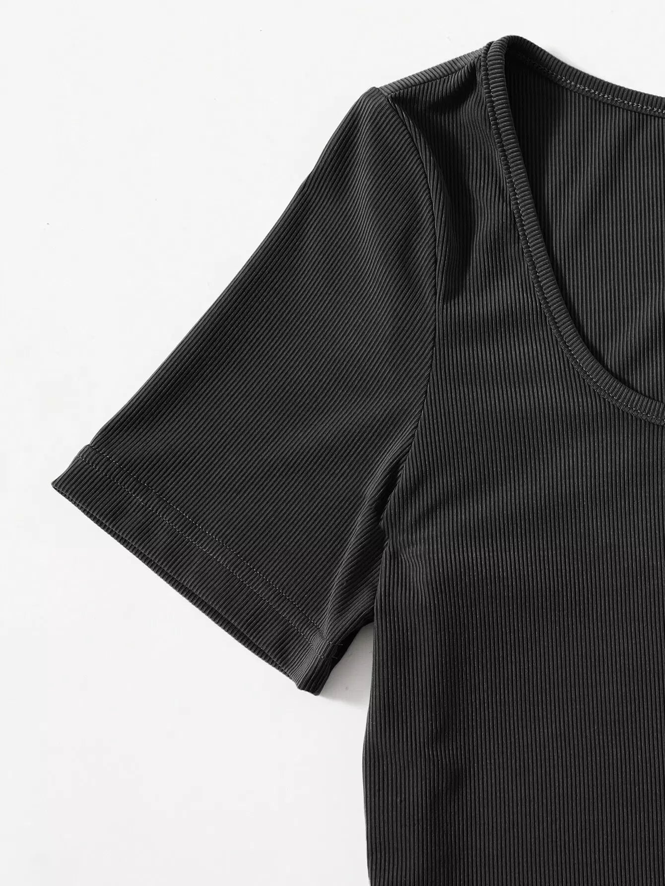 تي شيرت برقبة دائرية مضلعة بقصّة قصيرة برقبة مضلعة