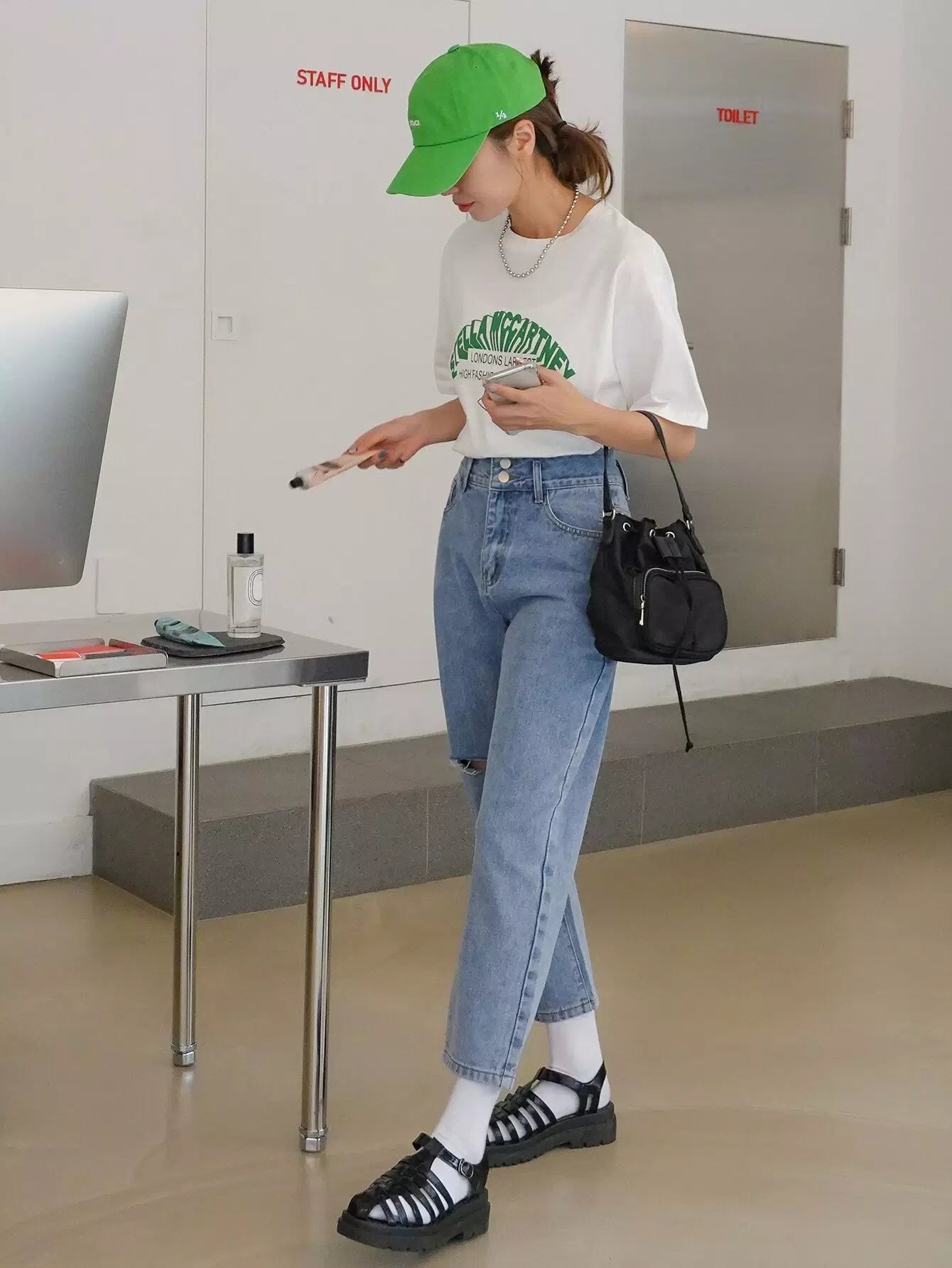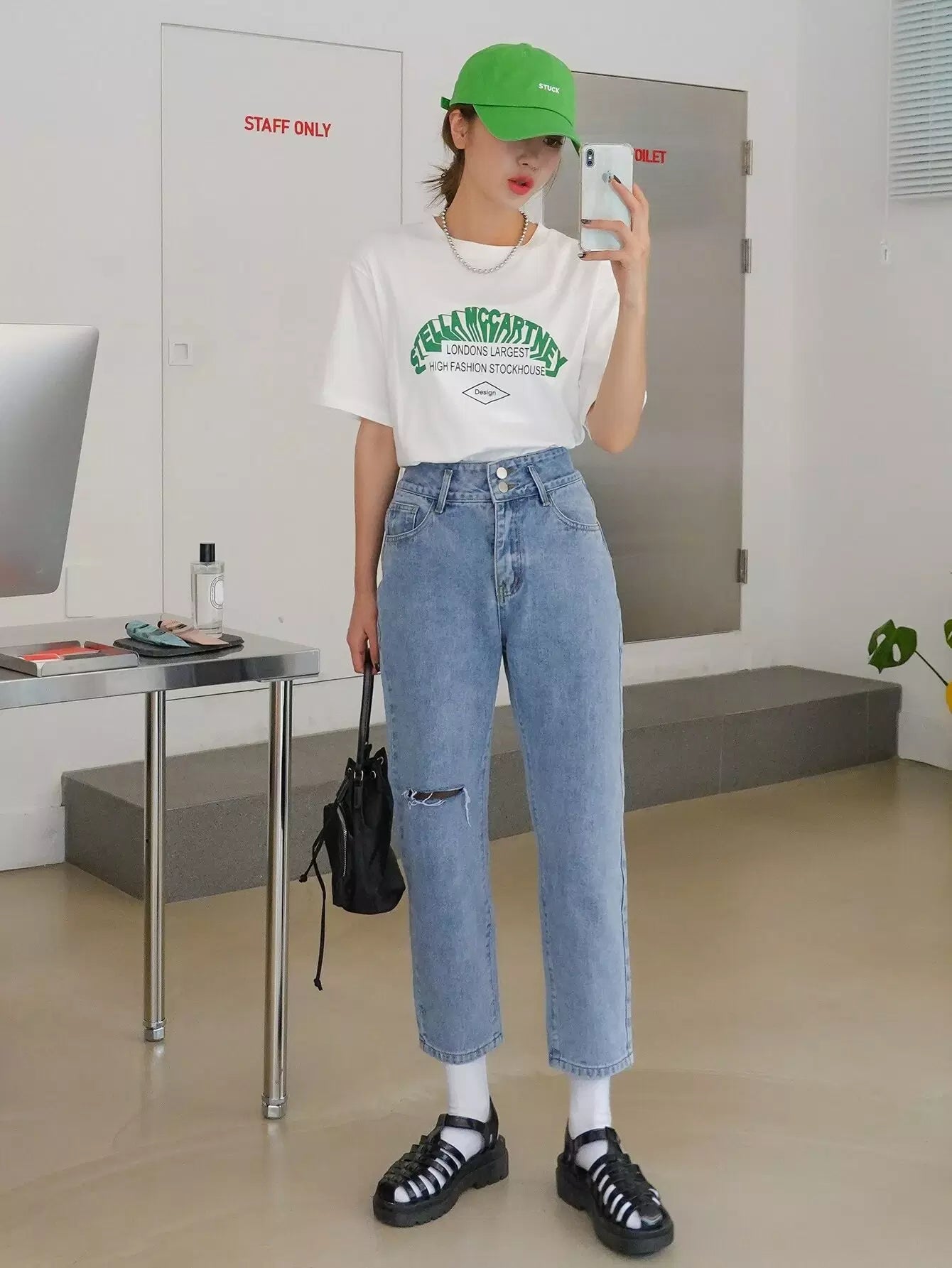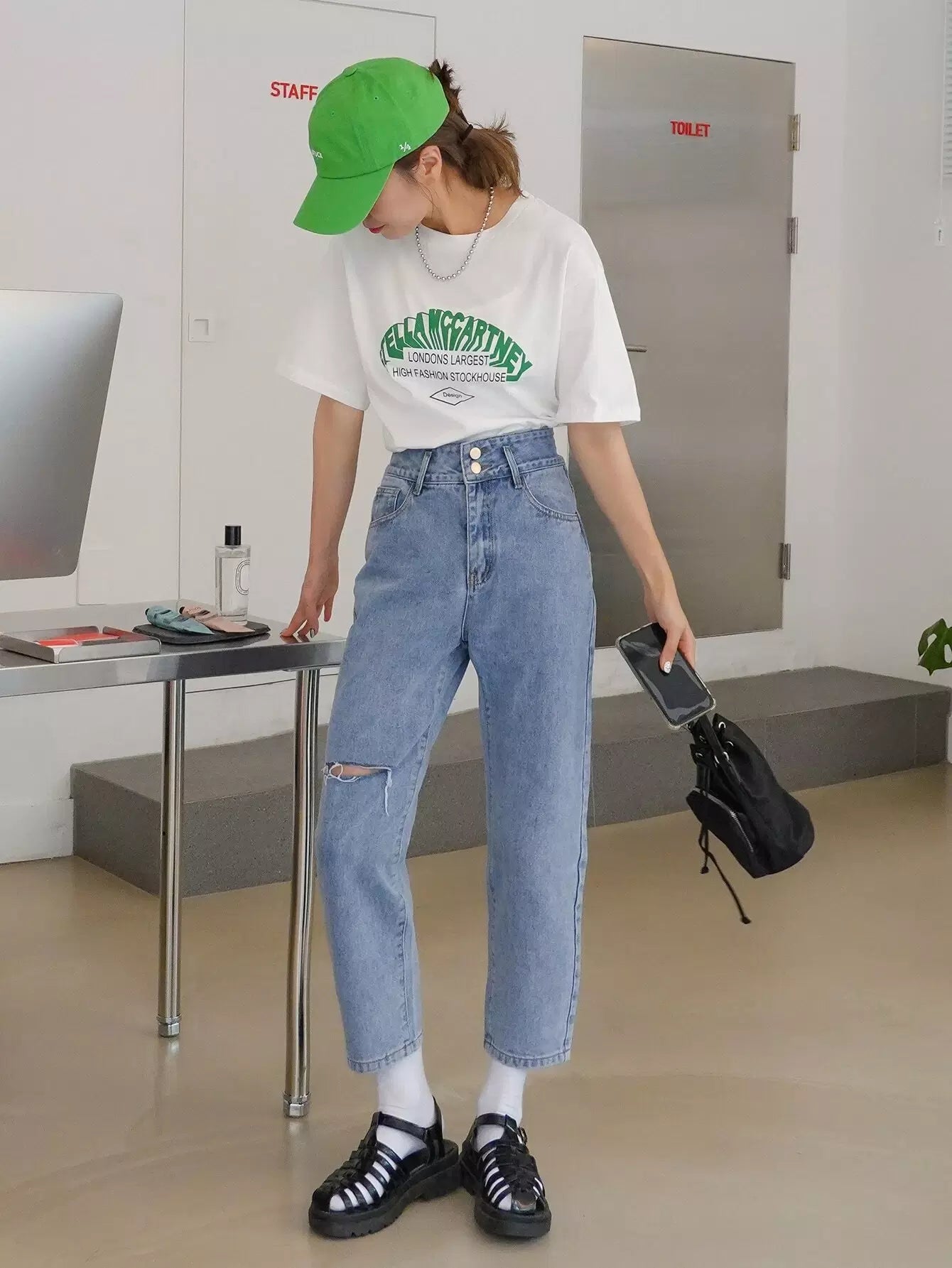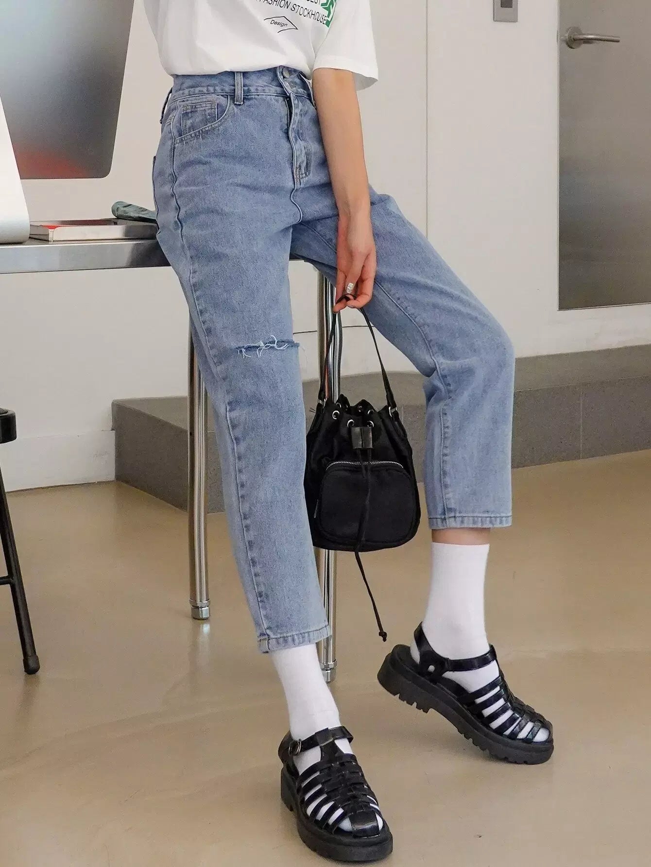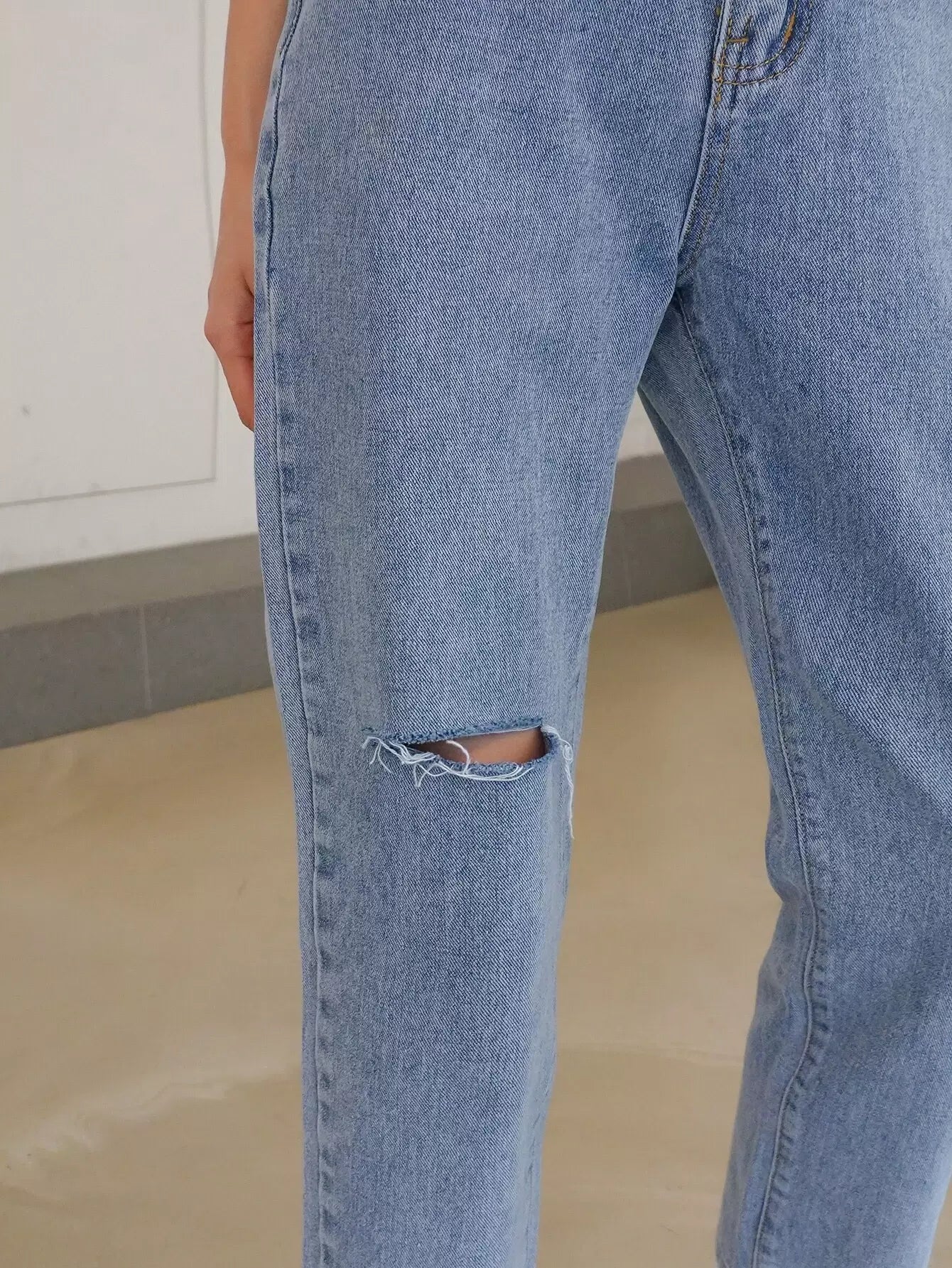 بنطلون جينز أم ممزق بأزرار ممزقة
