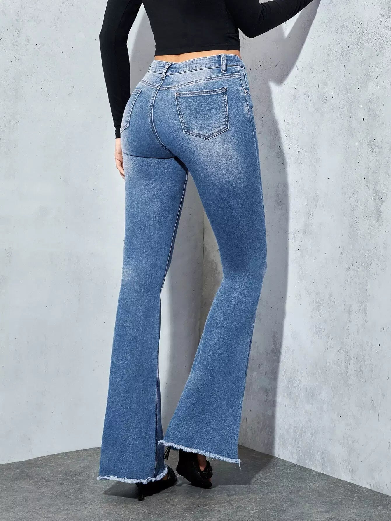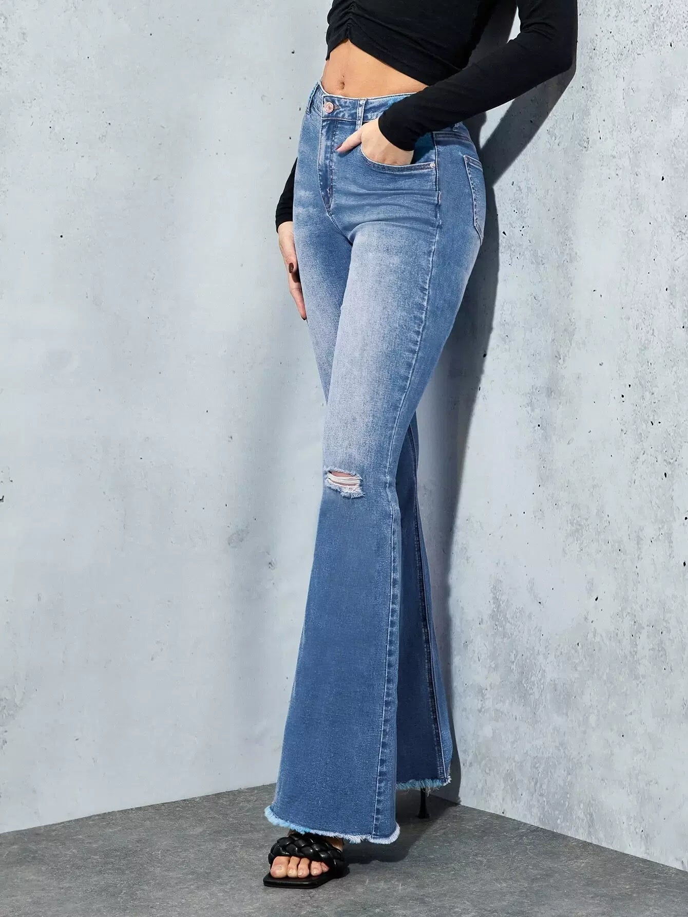 بنطلون جينز بحواف ممزق بحواف ممزقة من الساقين الواسعة