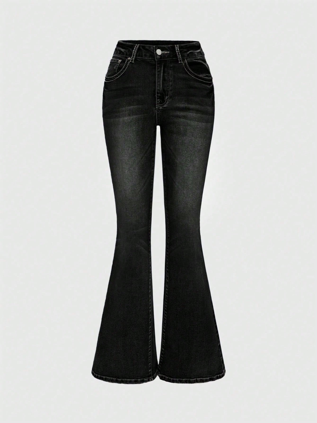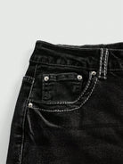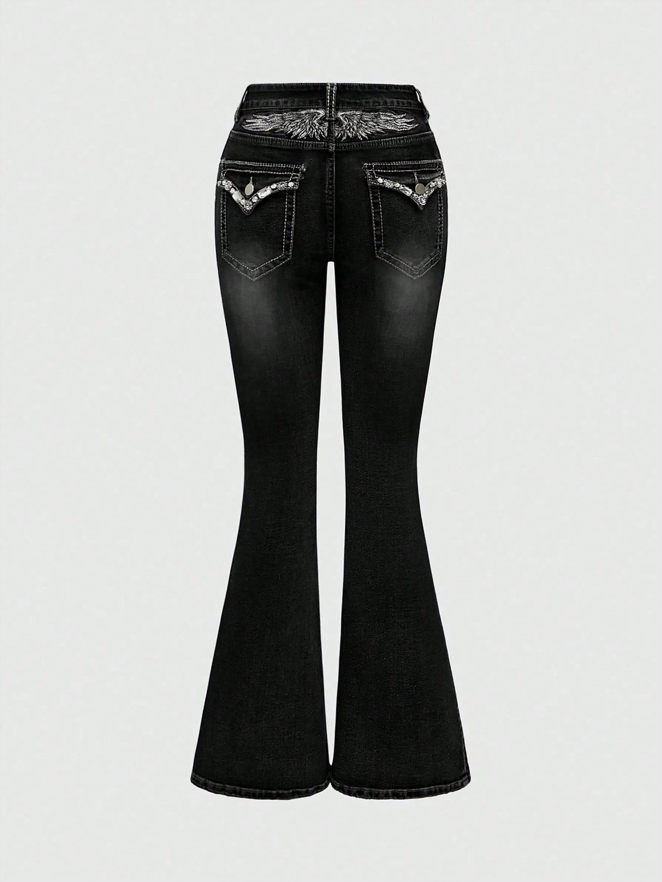 بنطلون جينز نسائي من روموي، بتصميم قوطي، مطرز بأحجار الراين، بقصة واسعة من الأسفل وخصر منخفض.
