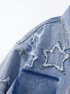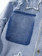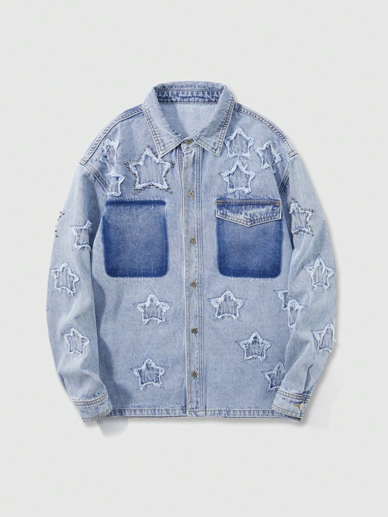 men ROMWE MEN Street Life Men's Star Embroidery Casual Denim Jacket