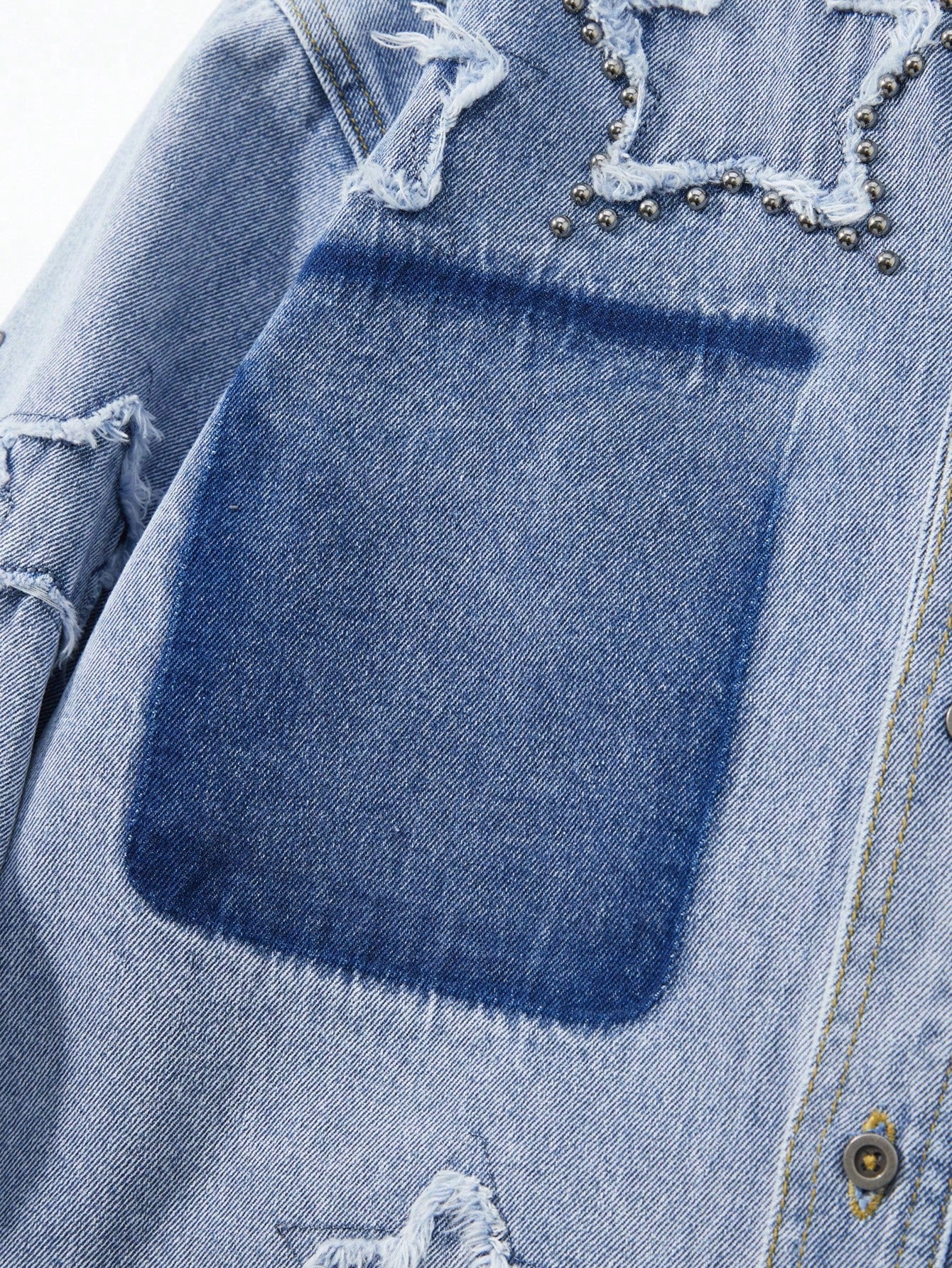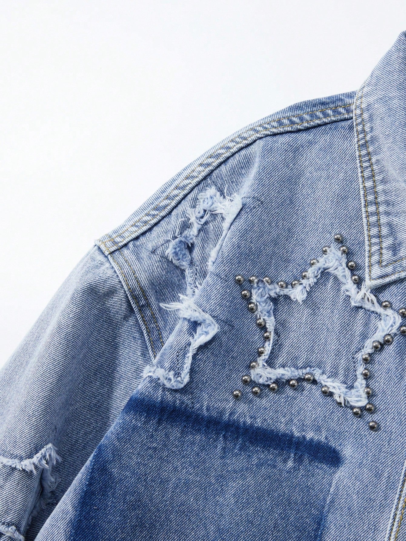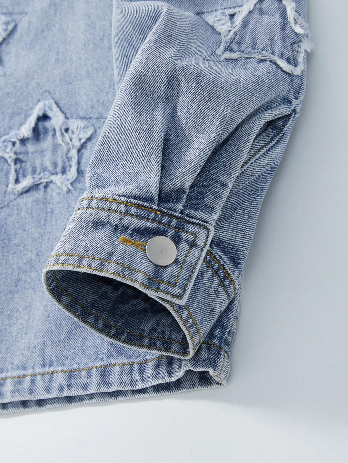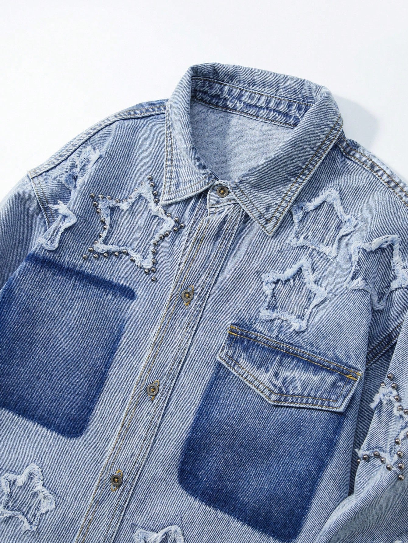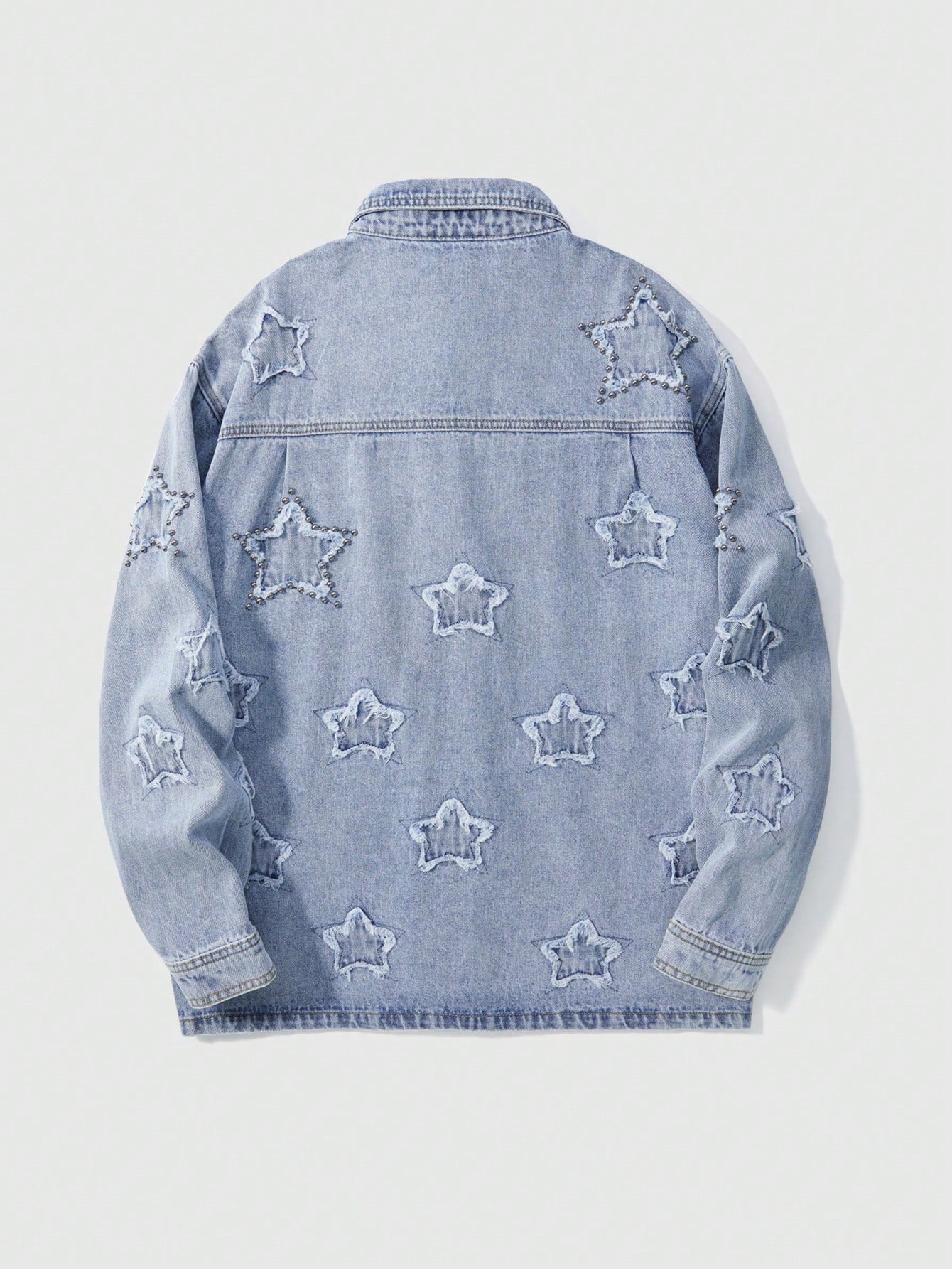 جاكيت جينز كاجوال مطرز بنجوم للرجال من ROMWE MEN Street Life