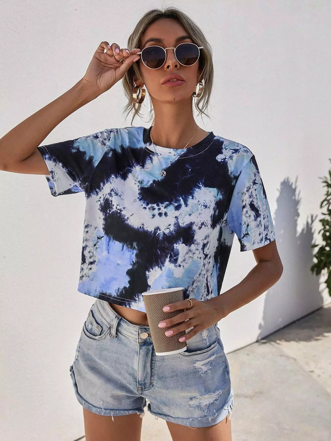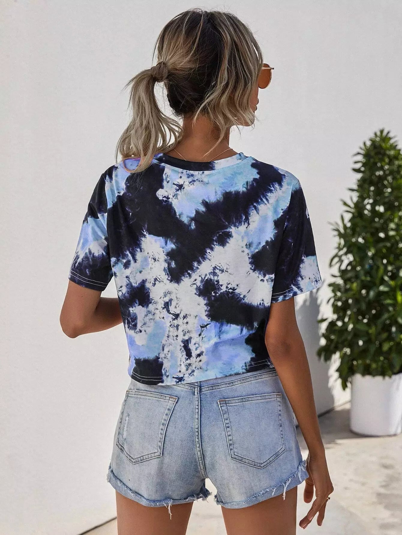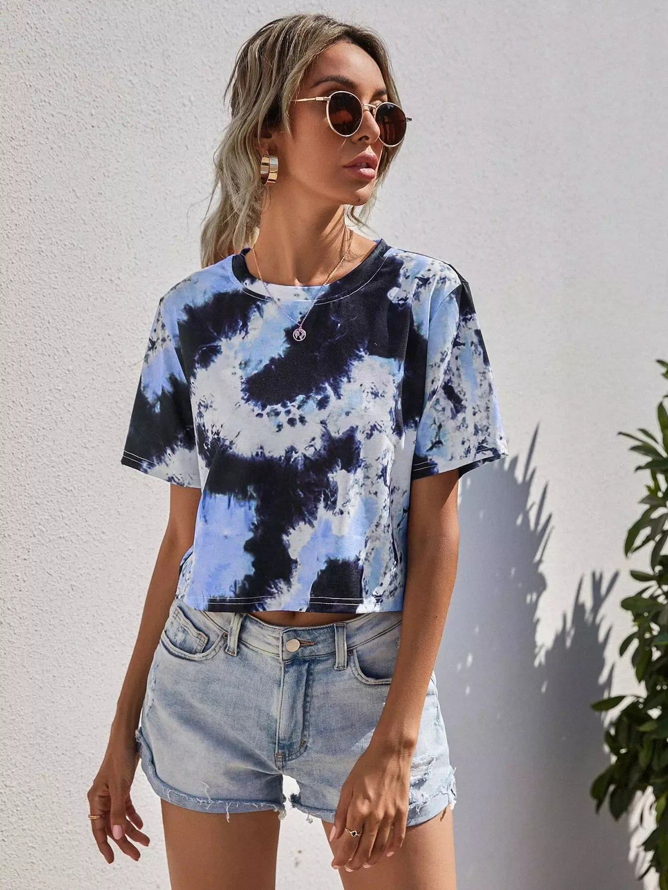تي شيرت قصير برقبة دائرية وبتصميم صبغ التعادل