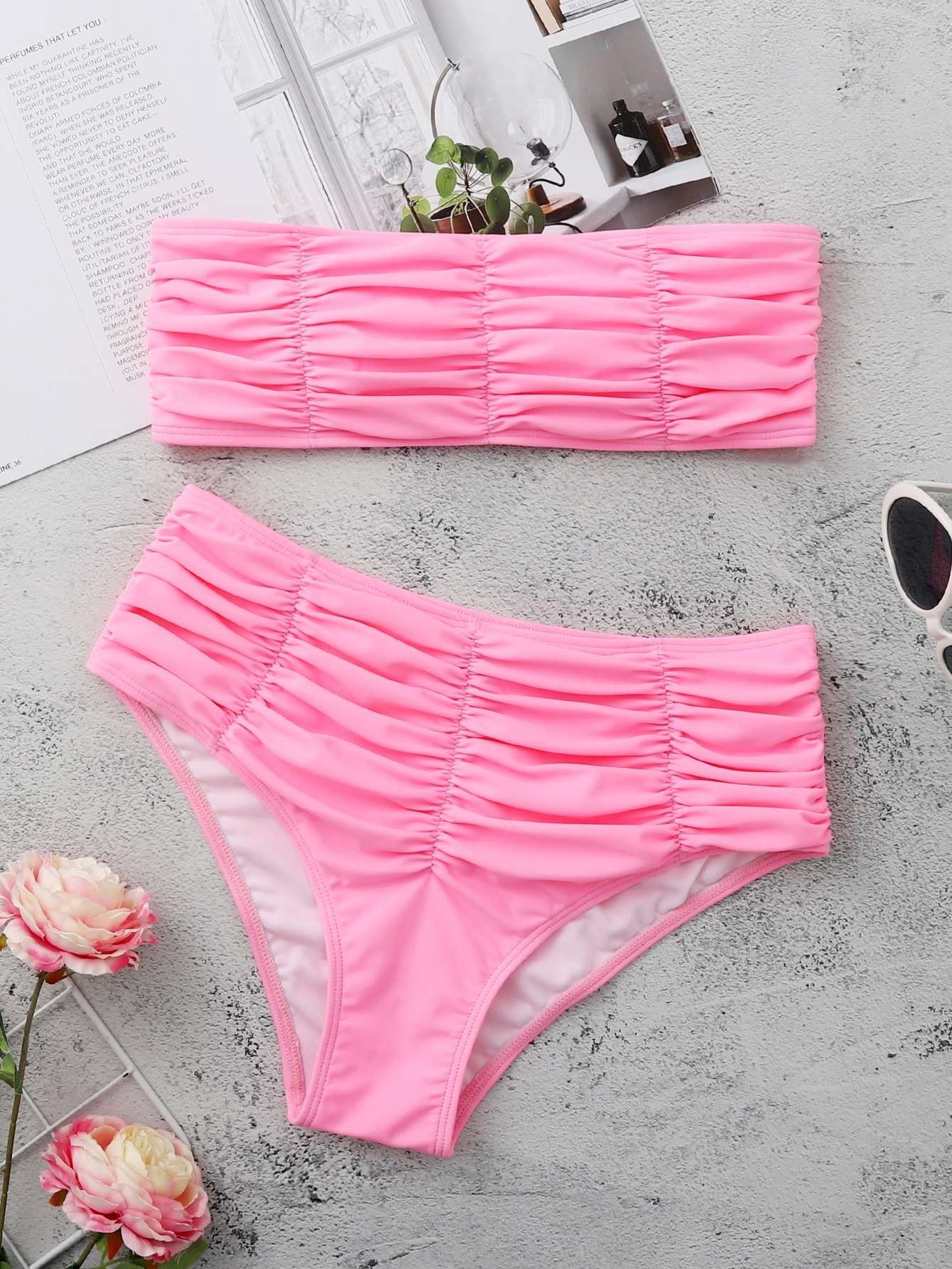 ملابس سباحة بيكيني بعصابة مكشكشة عالية الخصر