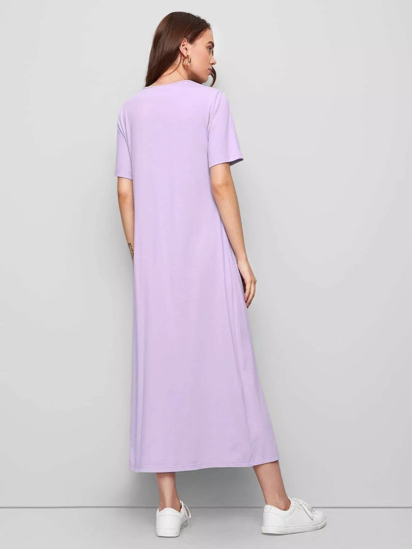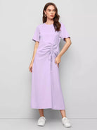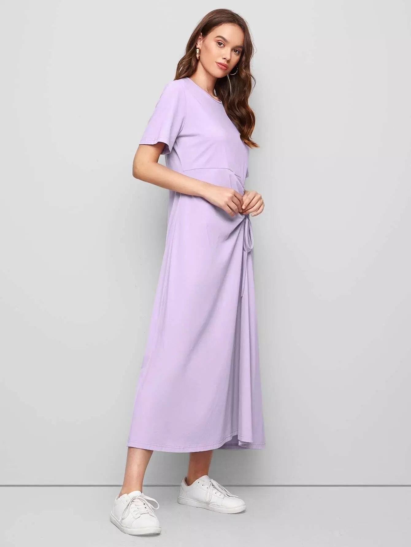 فستان سادة برباط مع كشكشة