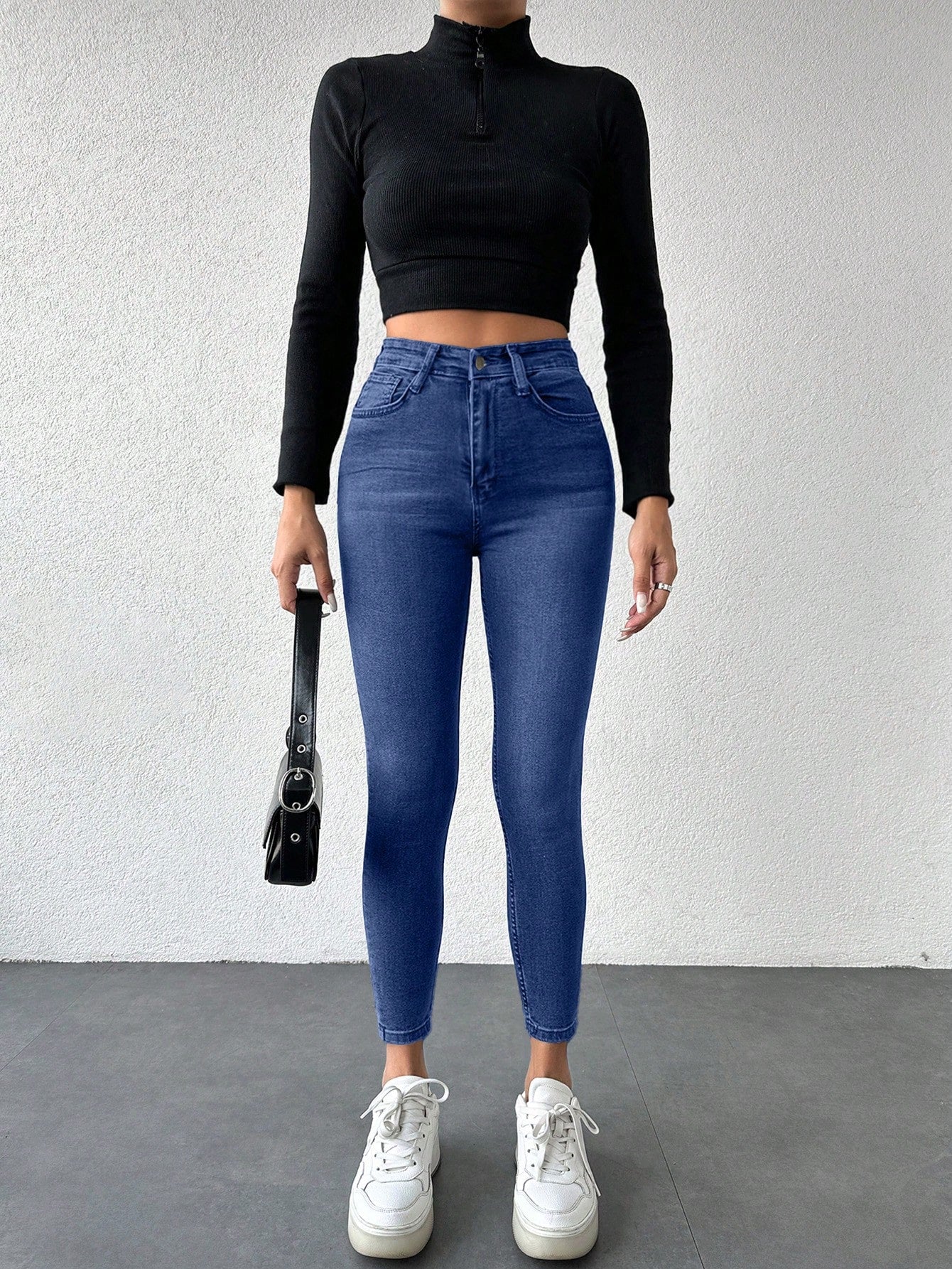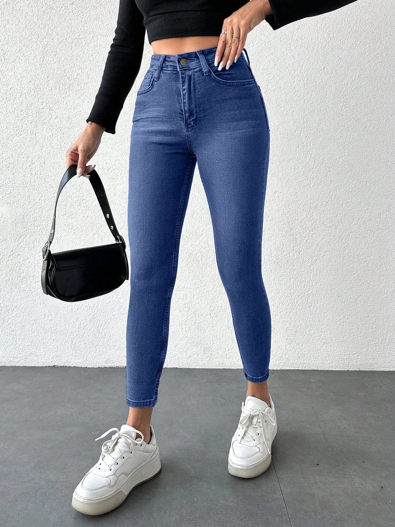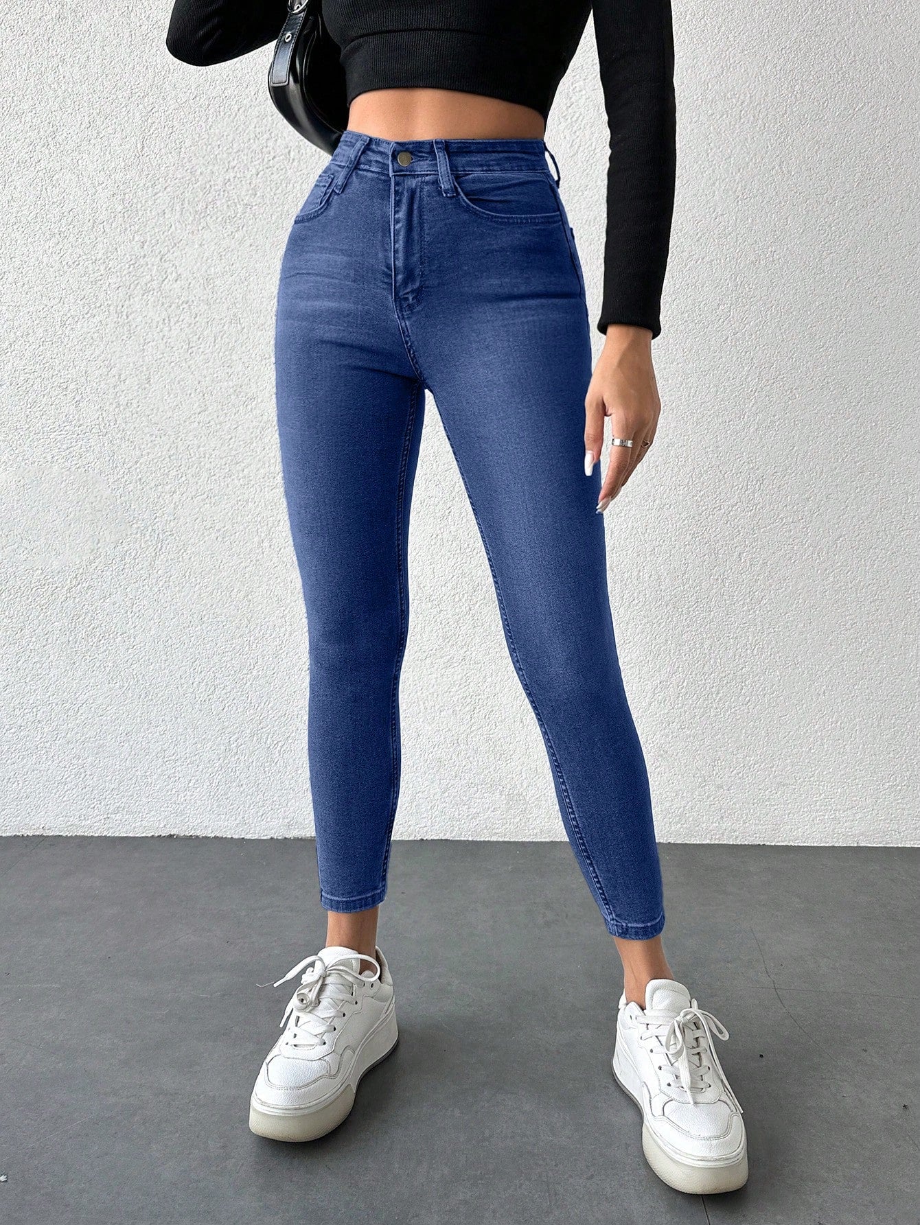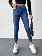 بنطلون جينز نسائي من RueChic بقصة ضيقة مغسولة مع جيوب مائلة