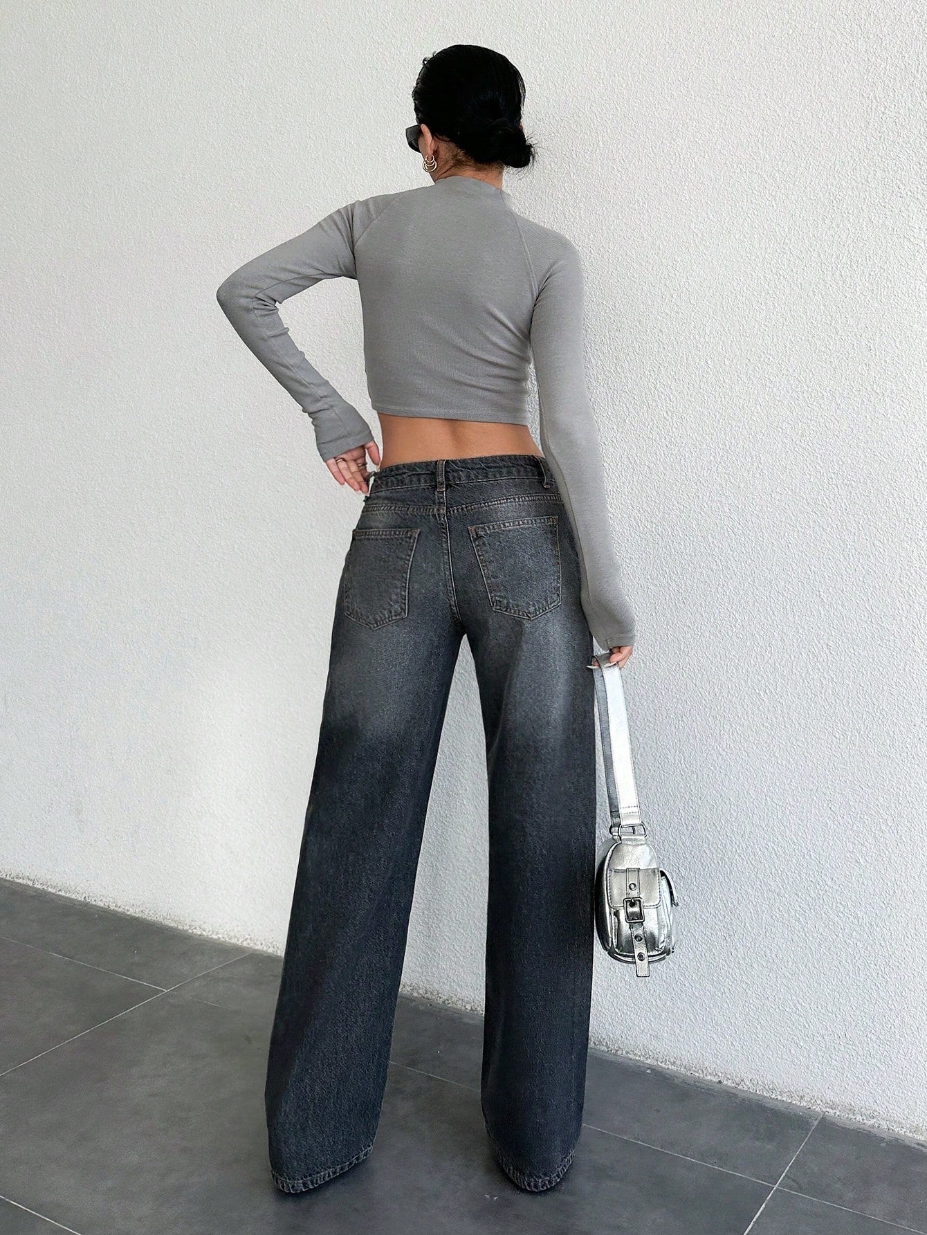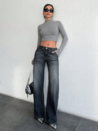 بنطلون جينز نسائي من RueChic بقصة مستقيمة مع معالجة غسيل