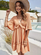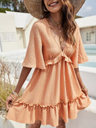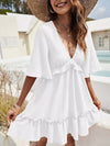فستان بحواف مكشكشة سادة على شكل حرف A