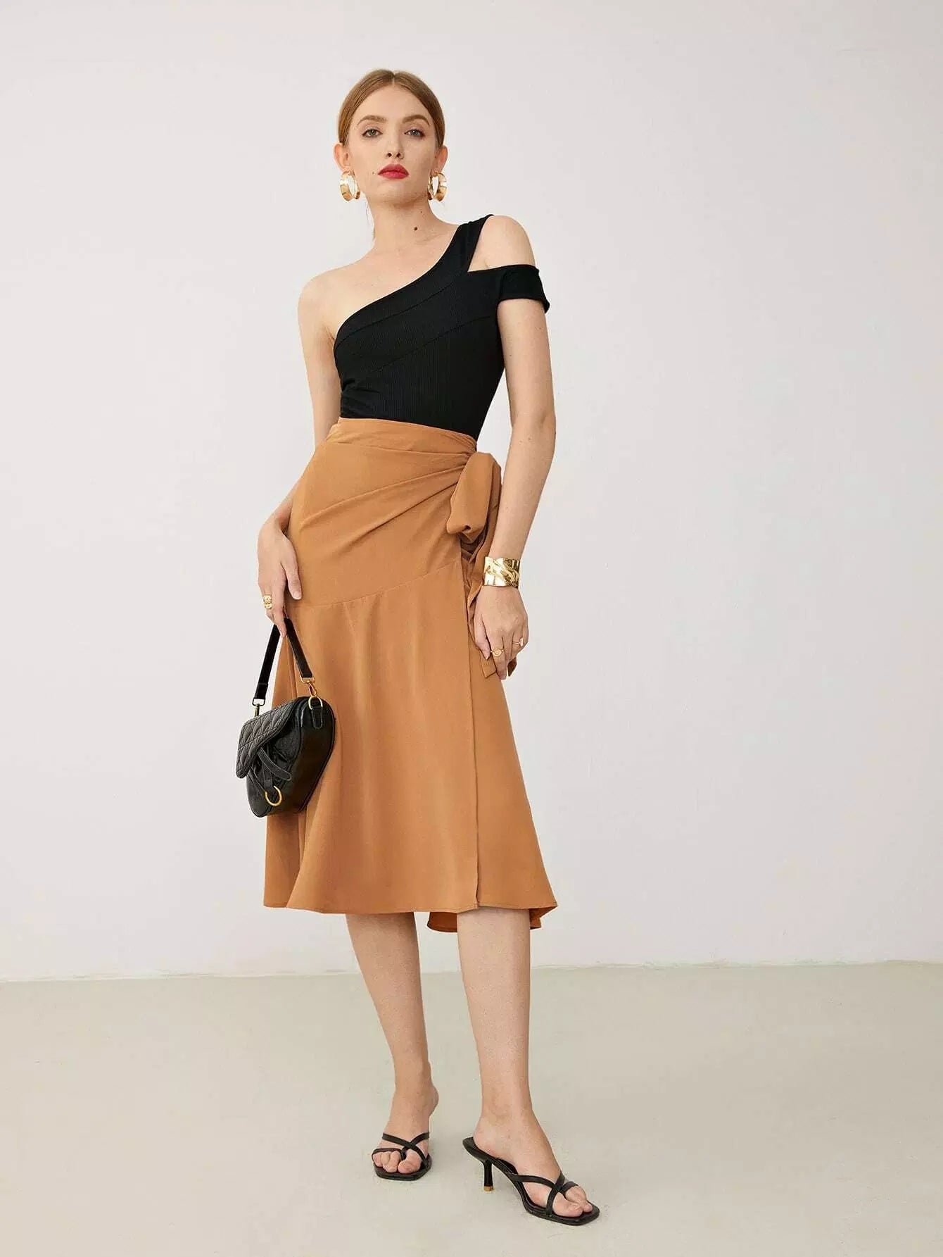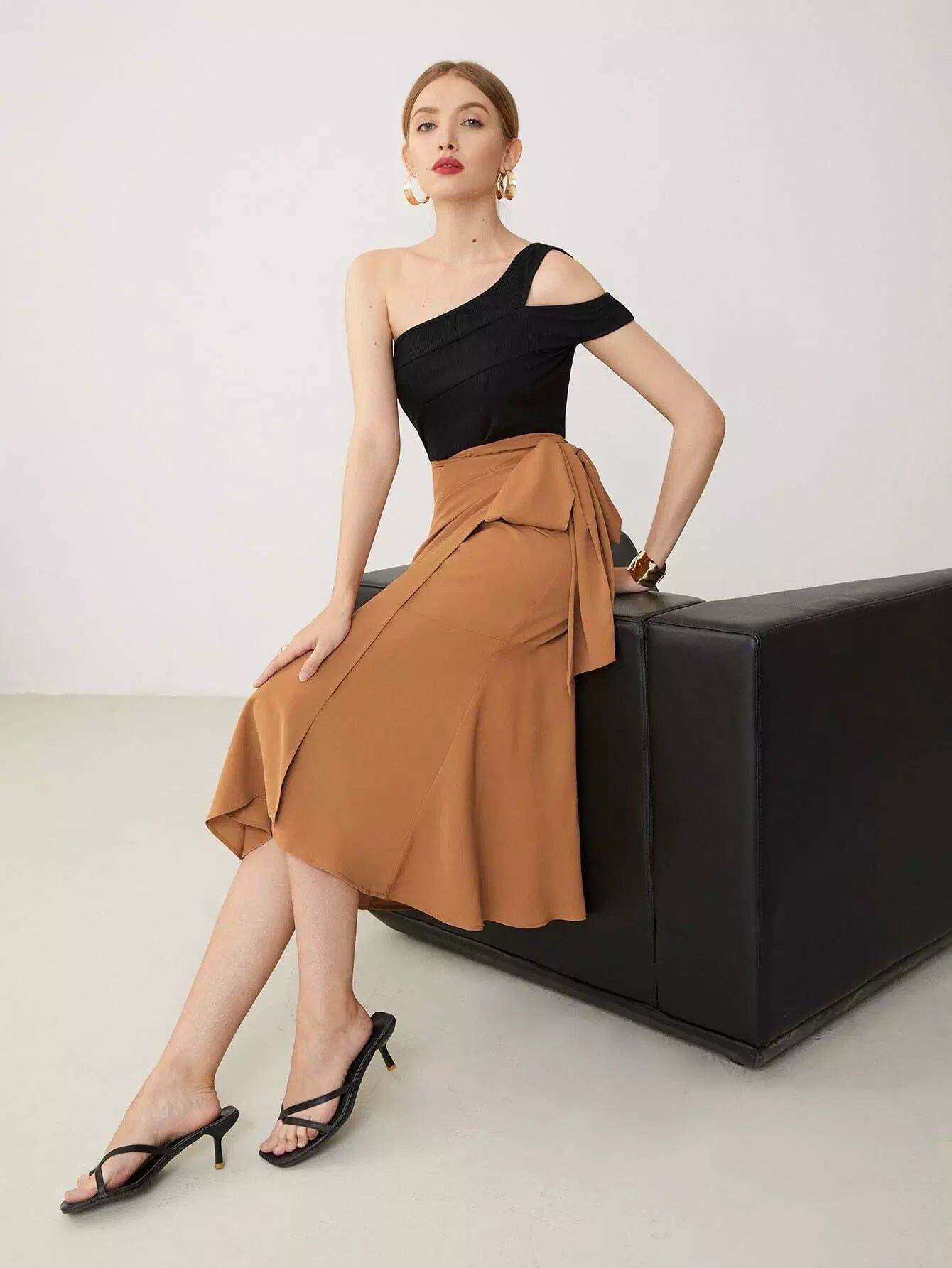 النساء - تنورة بعقدة ملفوفة بحاشية مكشكشة
