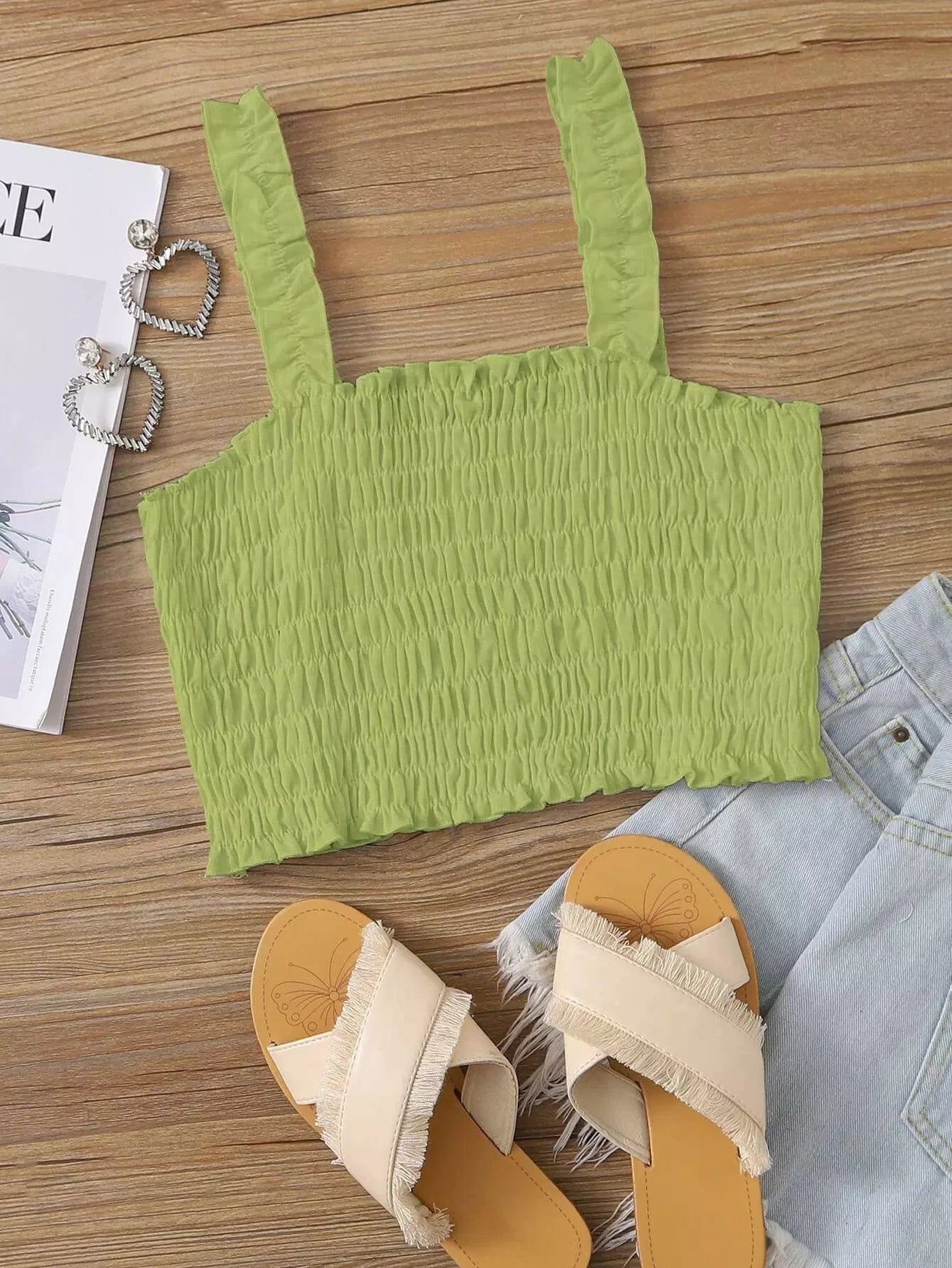 بلوزة قصيرة مكشكشة بأشرطة كشكش مكشكشة