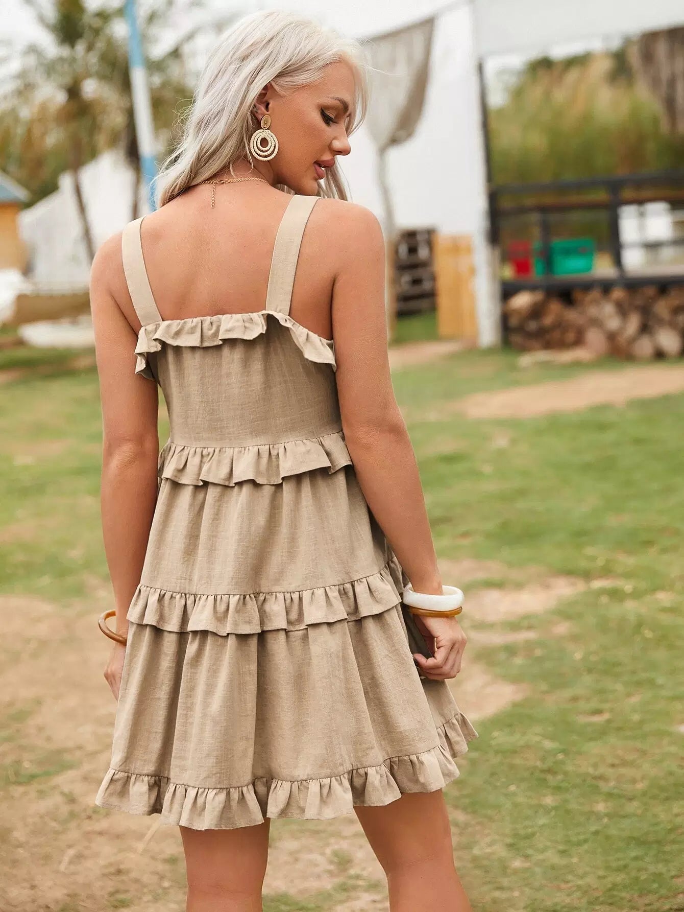 فستان بحواف مكشكشة ذات طبقات من الكشكش