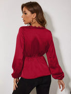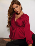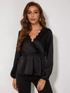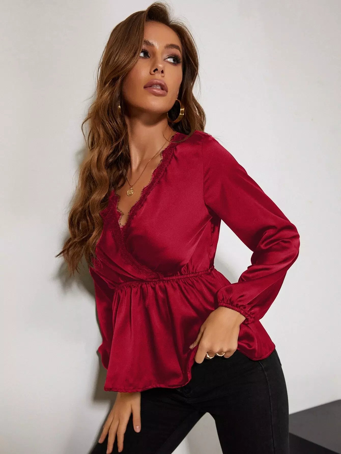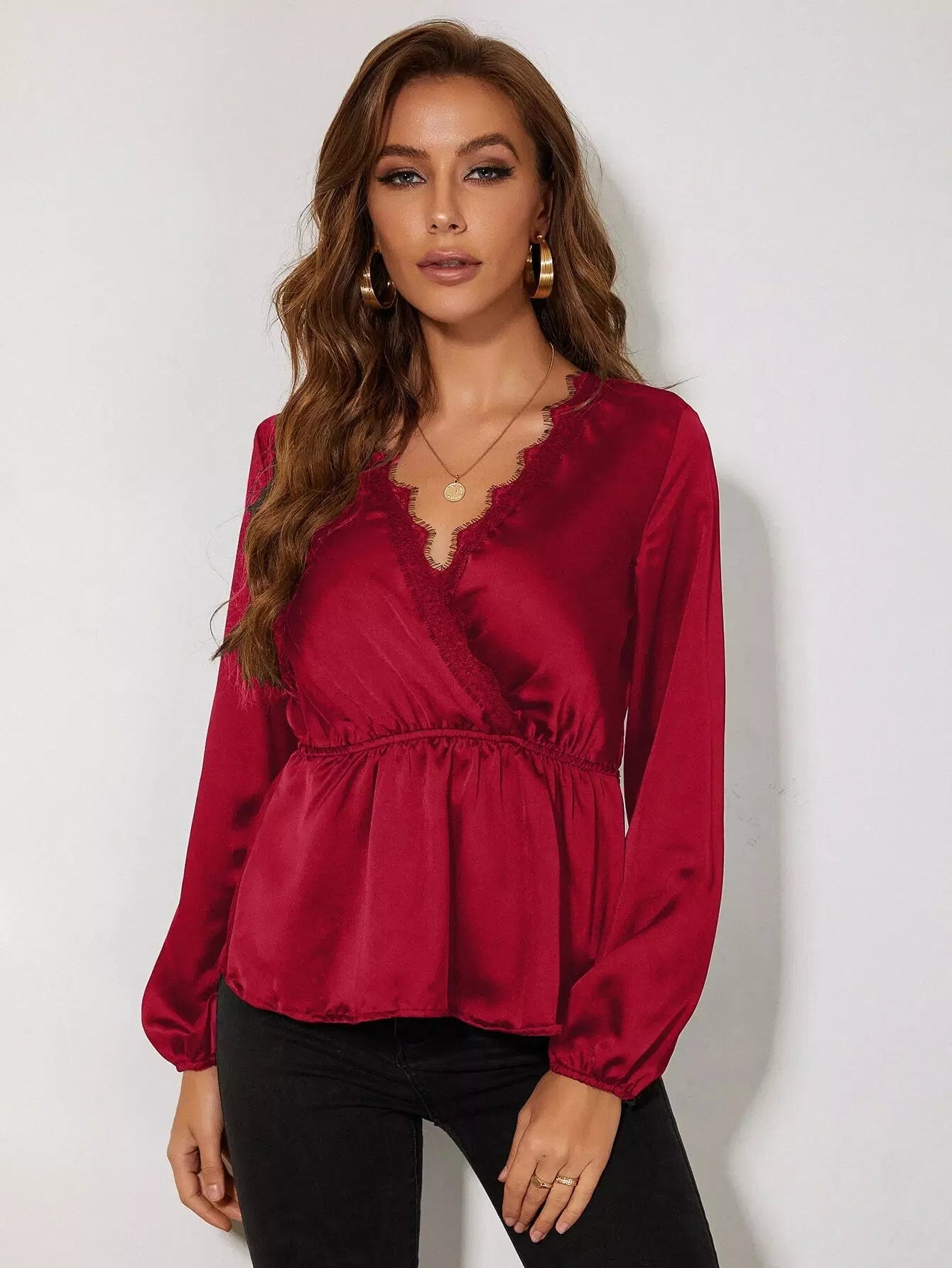 بلوزة بأكمام واسعة من الدانتيل المتباين من الساتان