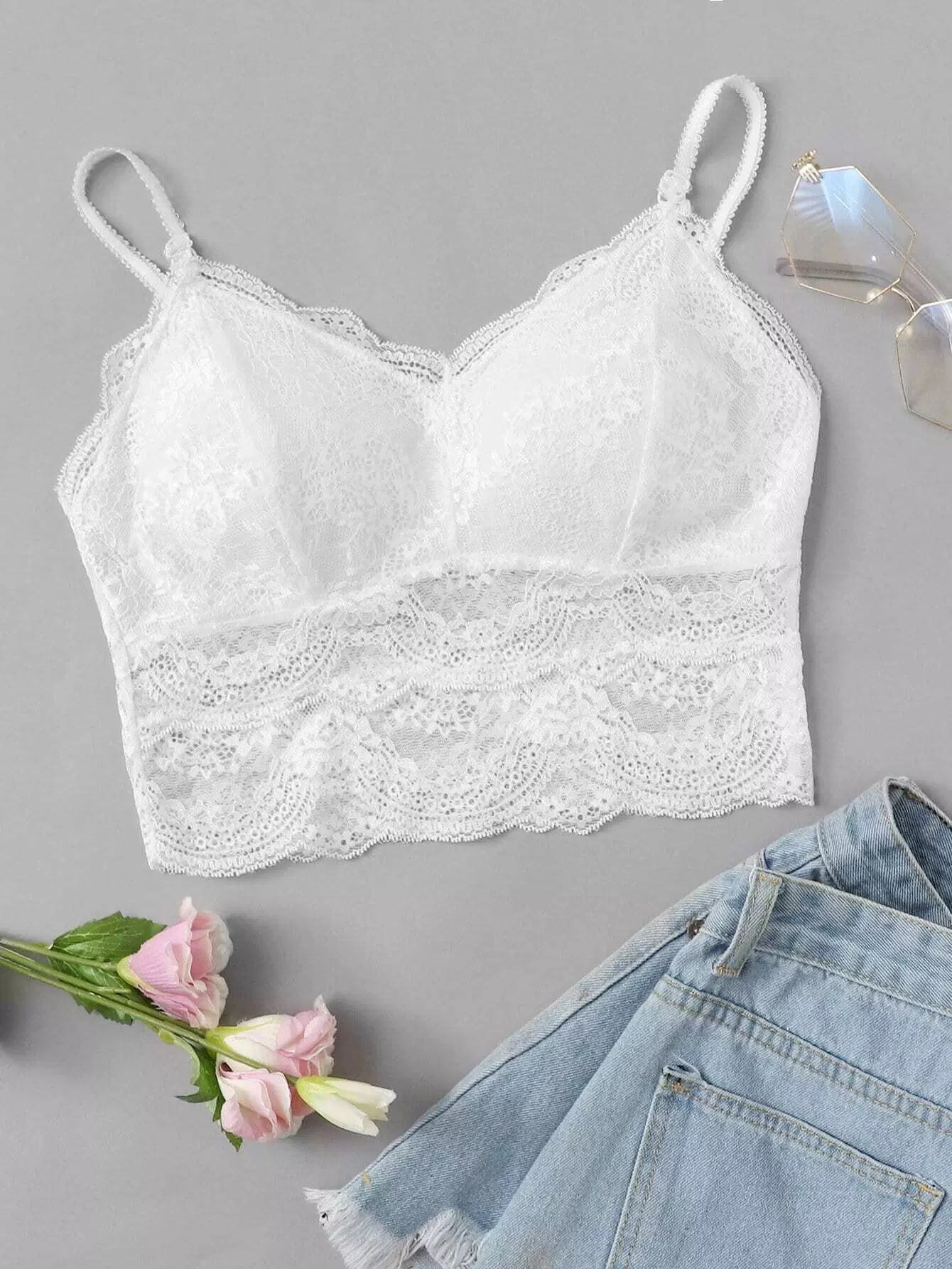 قميص قصير من الدانتيل بحواف من الدانتيل الإسكالوب