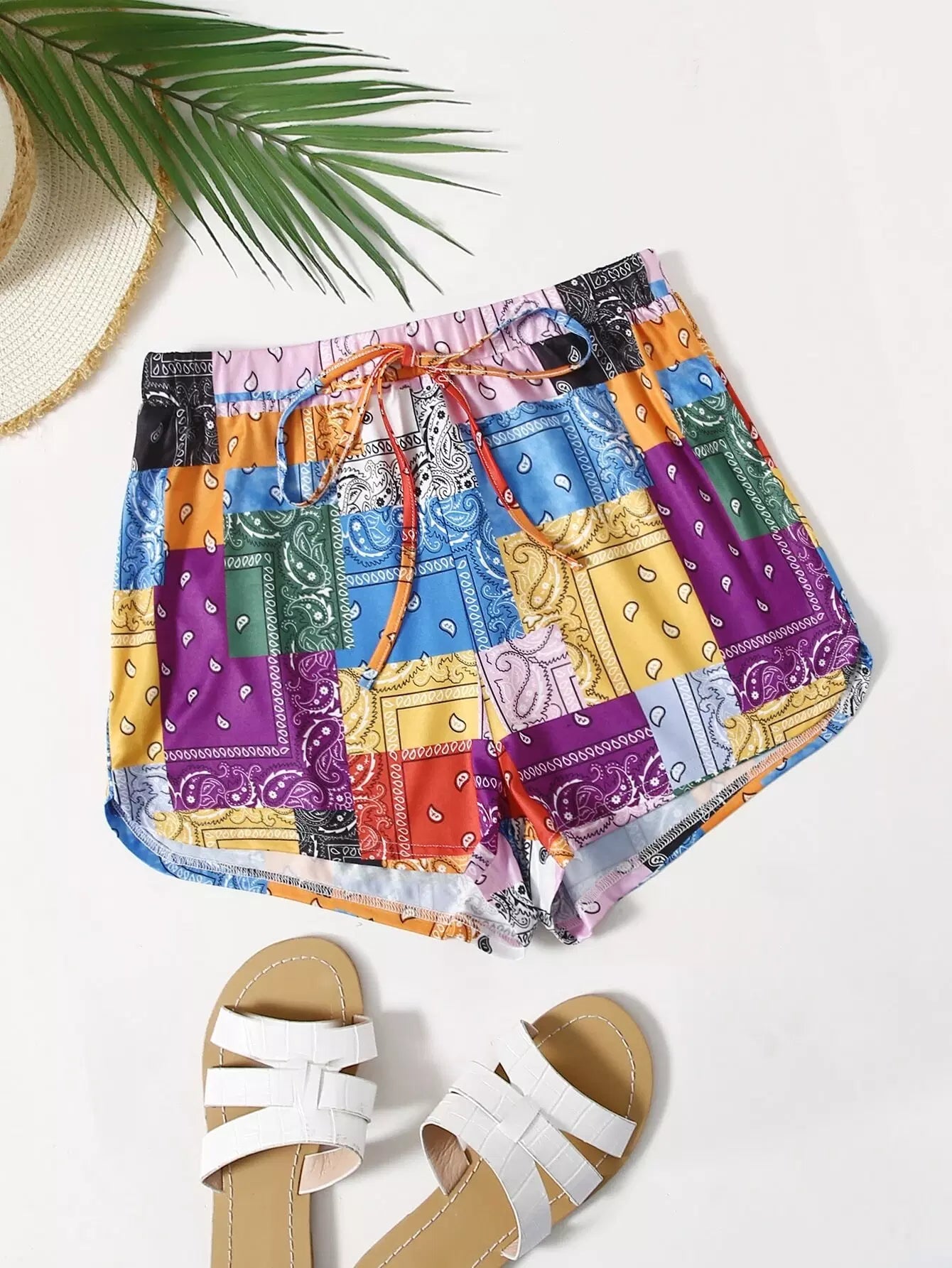 شورت قصير بطبعة وشاح بعقدة أمامية