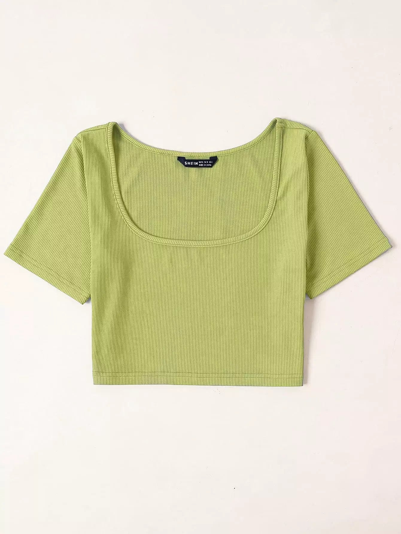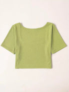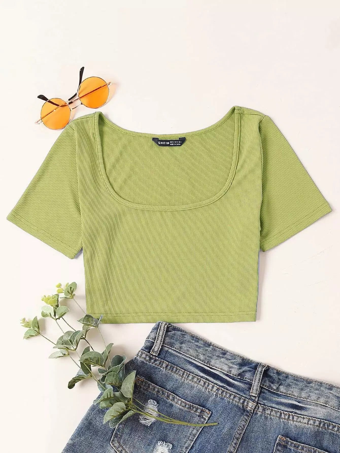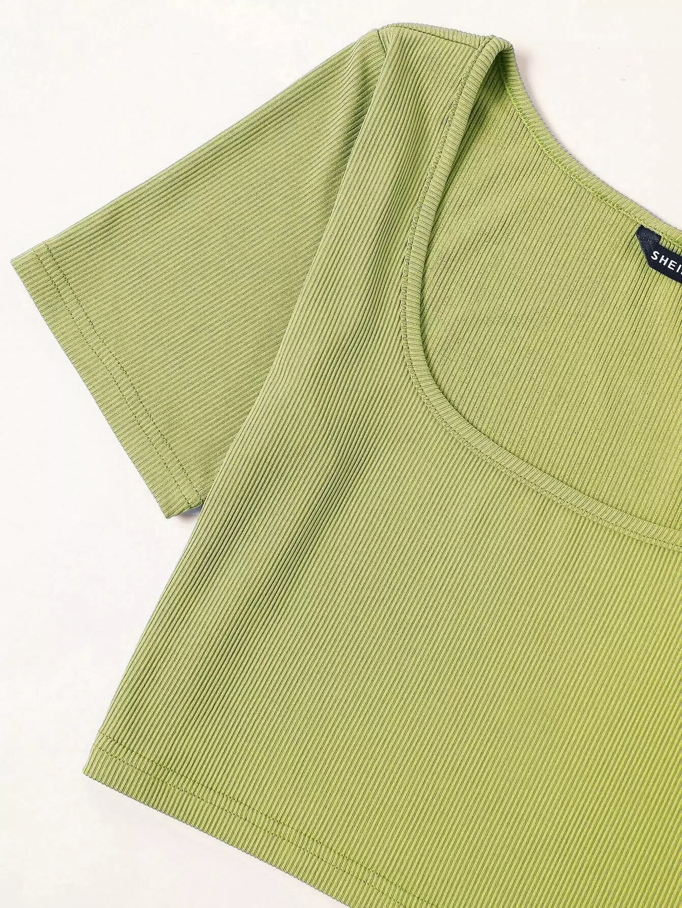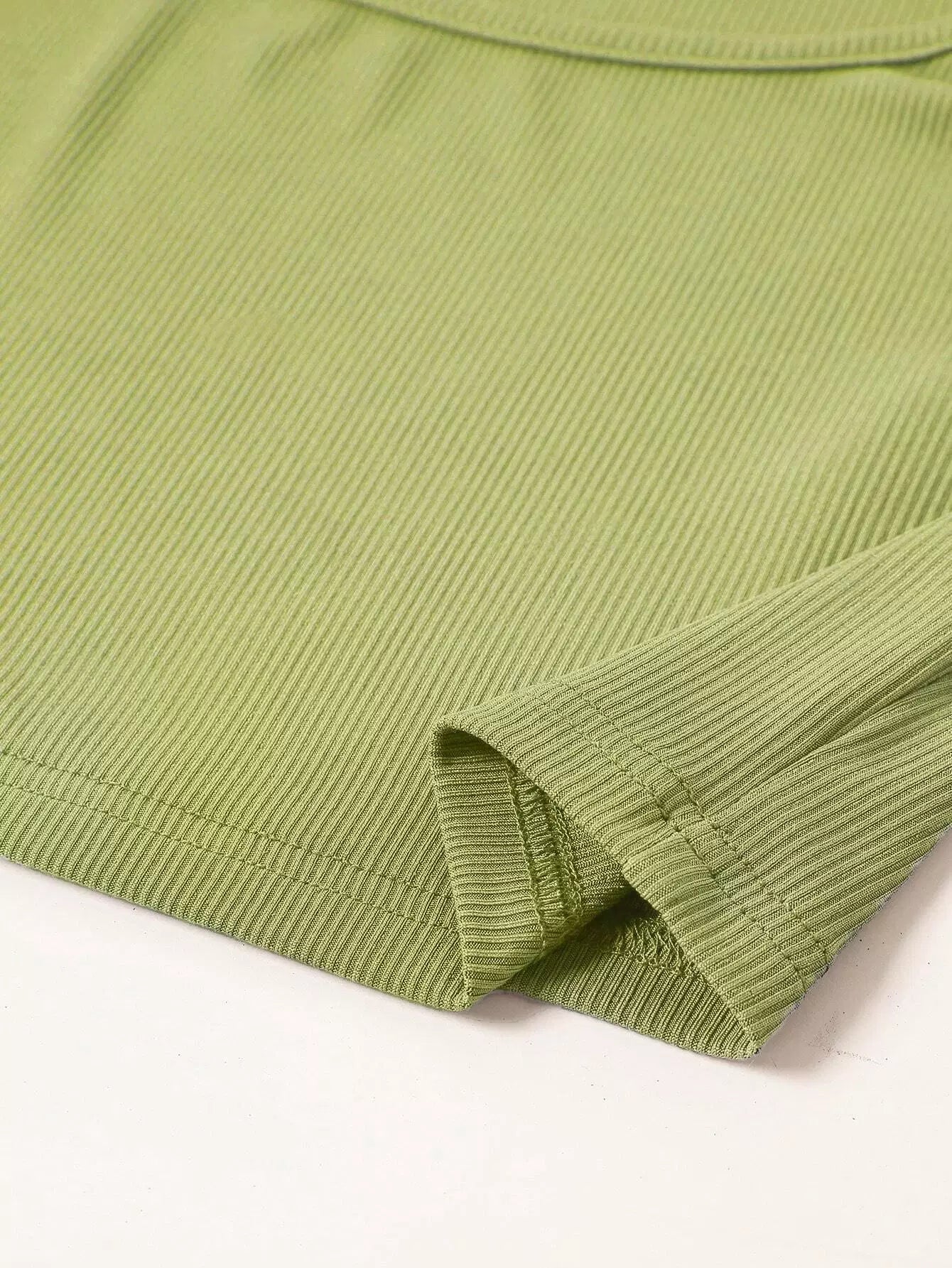 تي شيرت برقبة دائرية محبوكة على شكل ضلع محبوكة