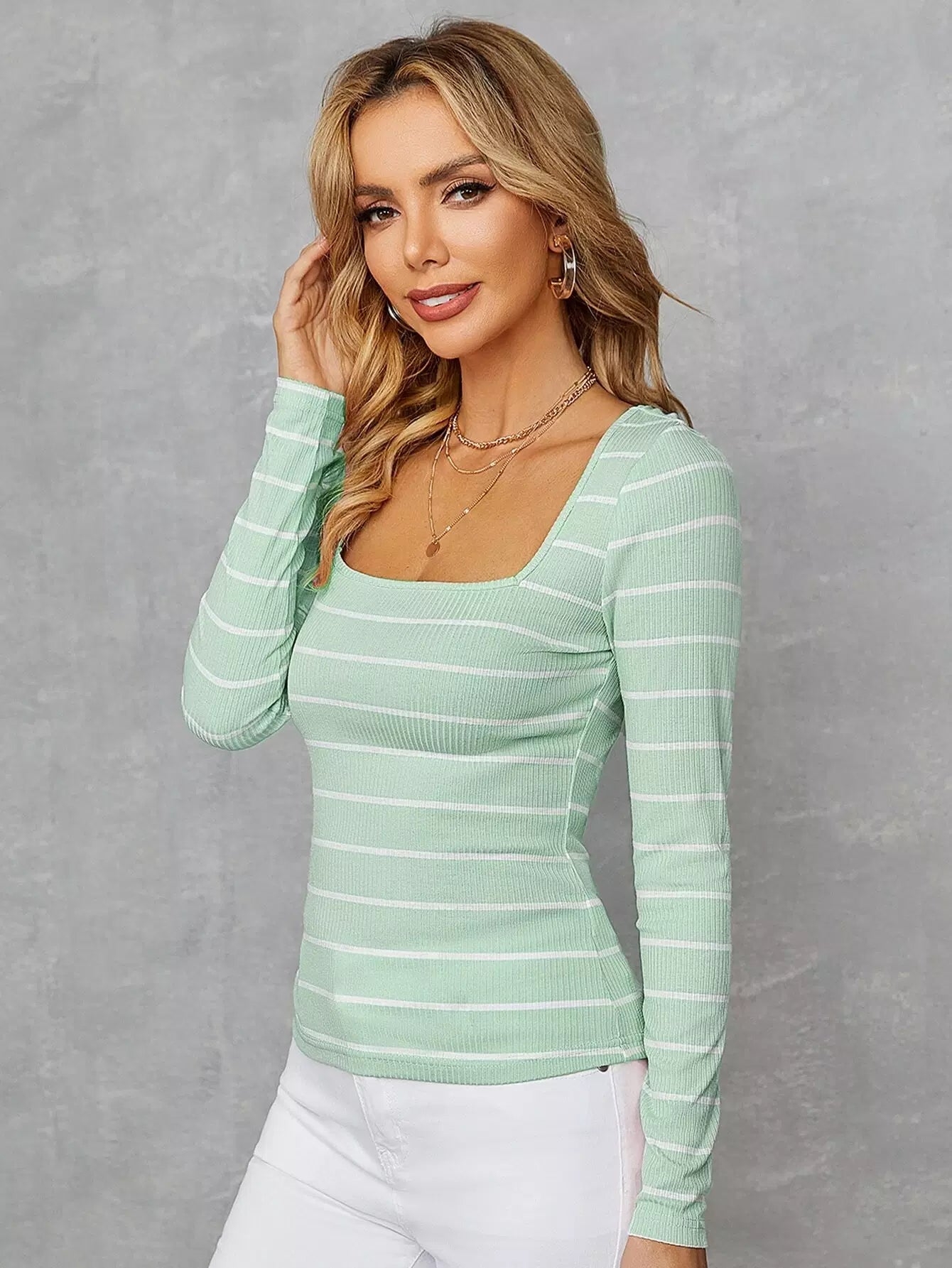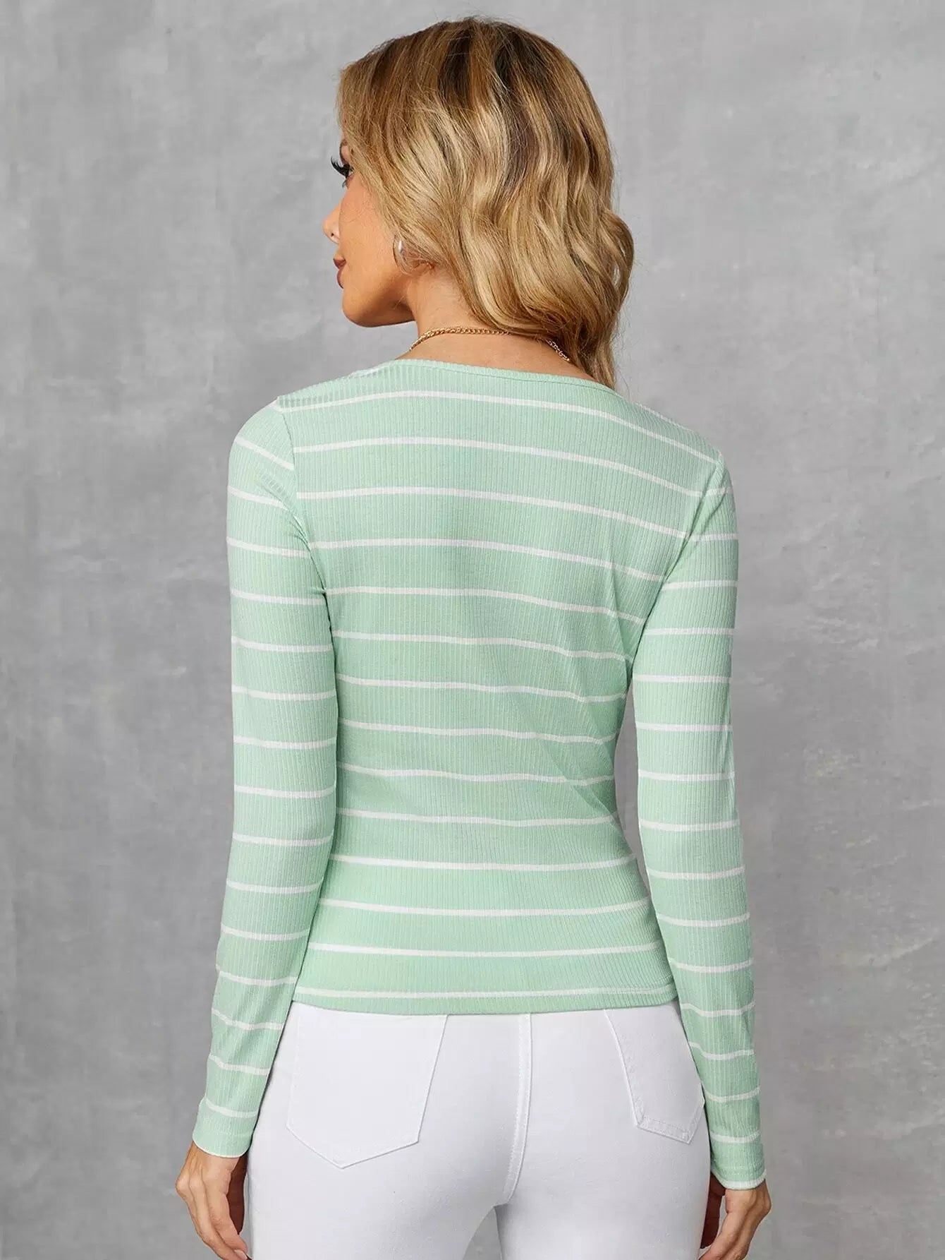 تي شيرت برقبة دائرية برقبة دائرية مخططة على شكل ضلع