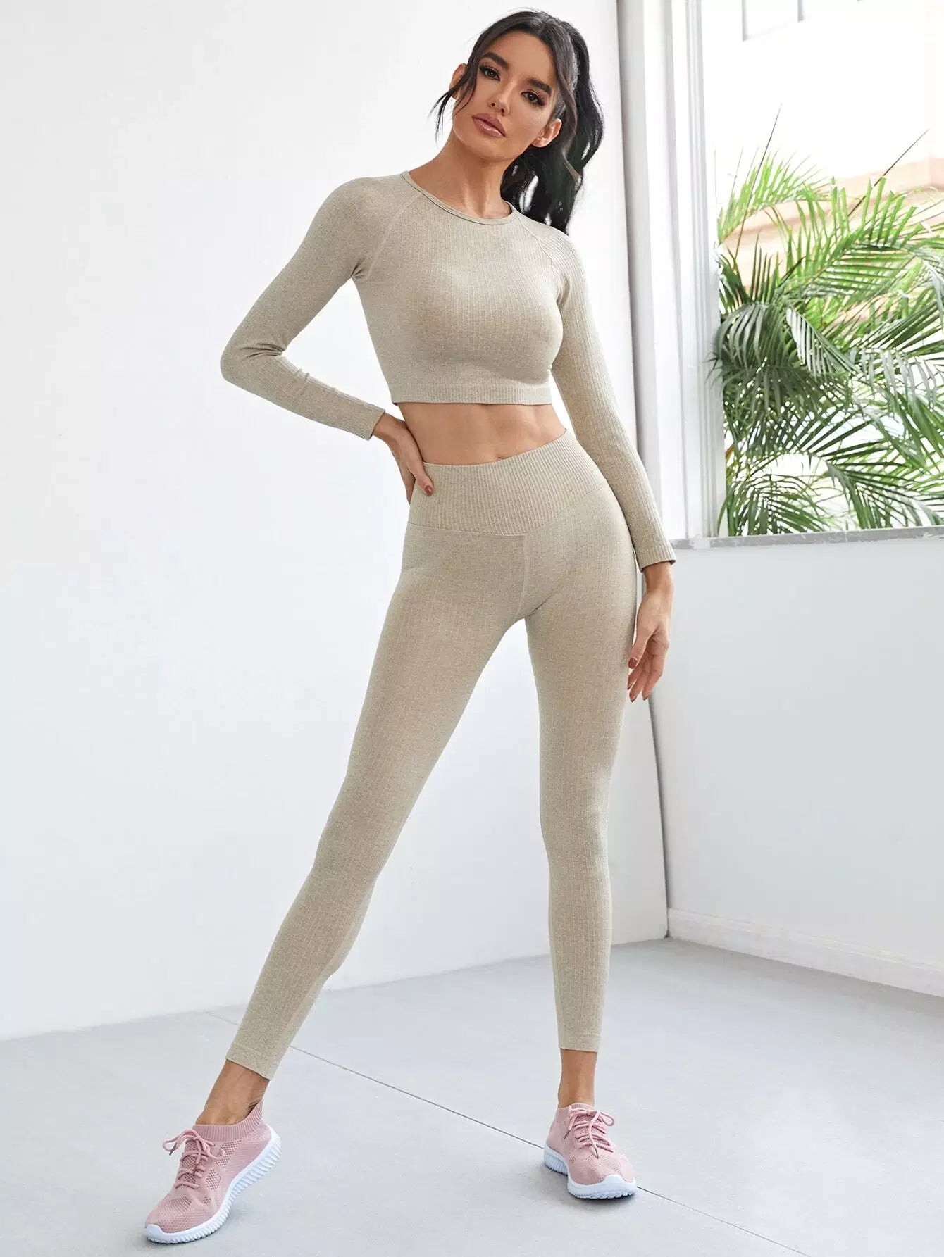 تي شيرت رياضي بأكمام ريجلان بدون أكمام مع بنطال رياضي ضيق