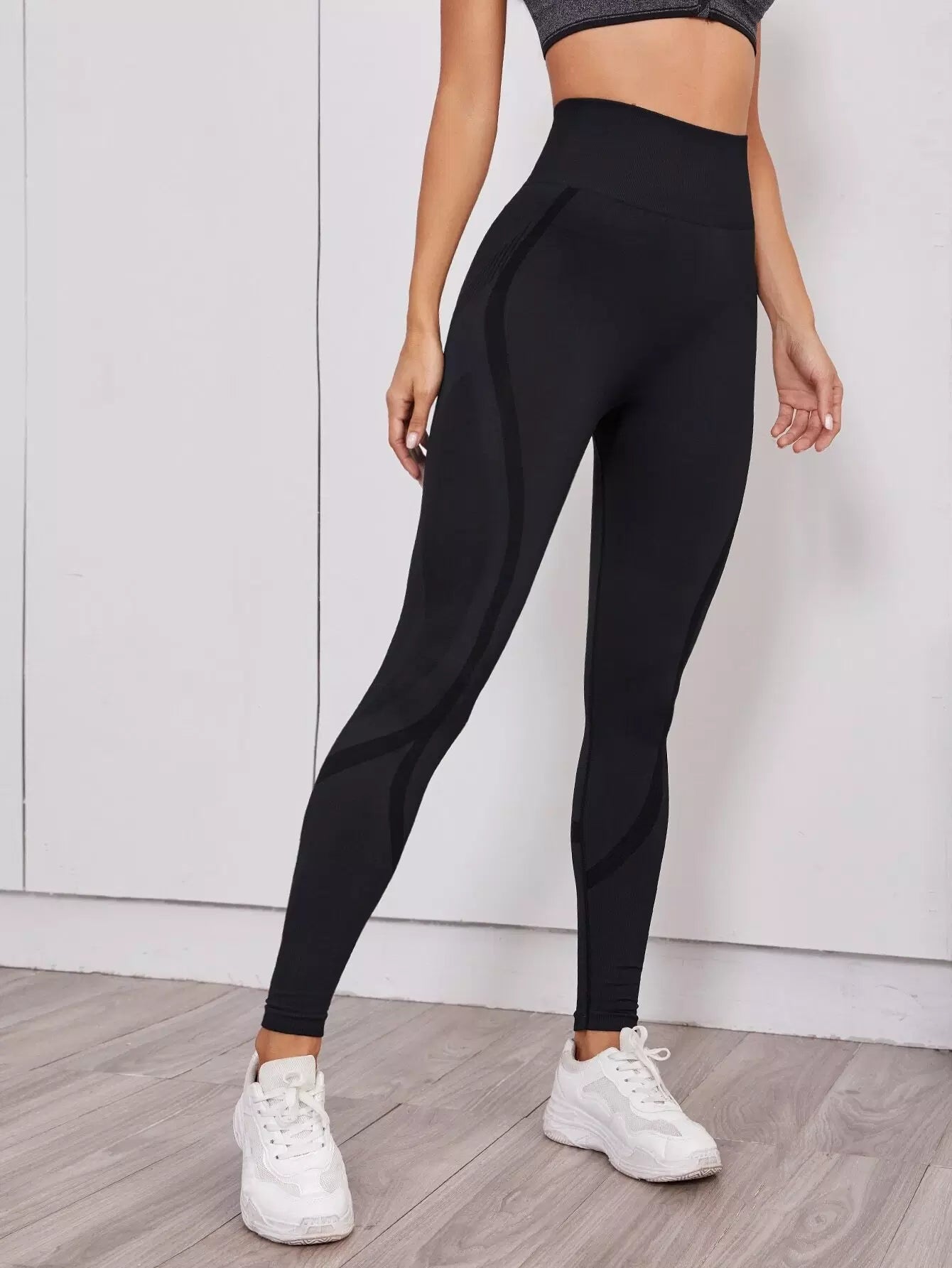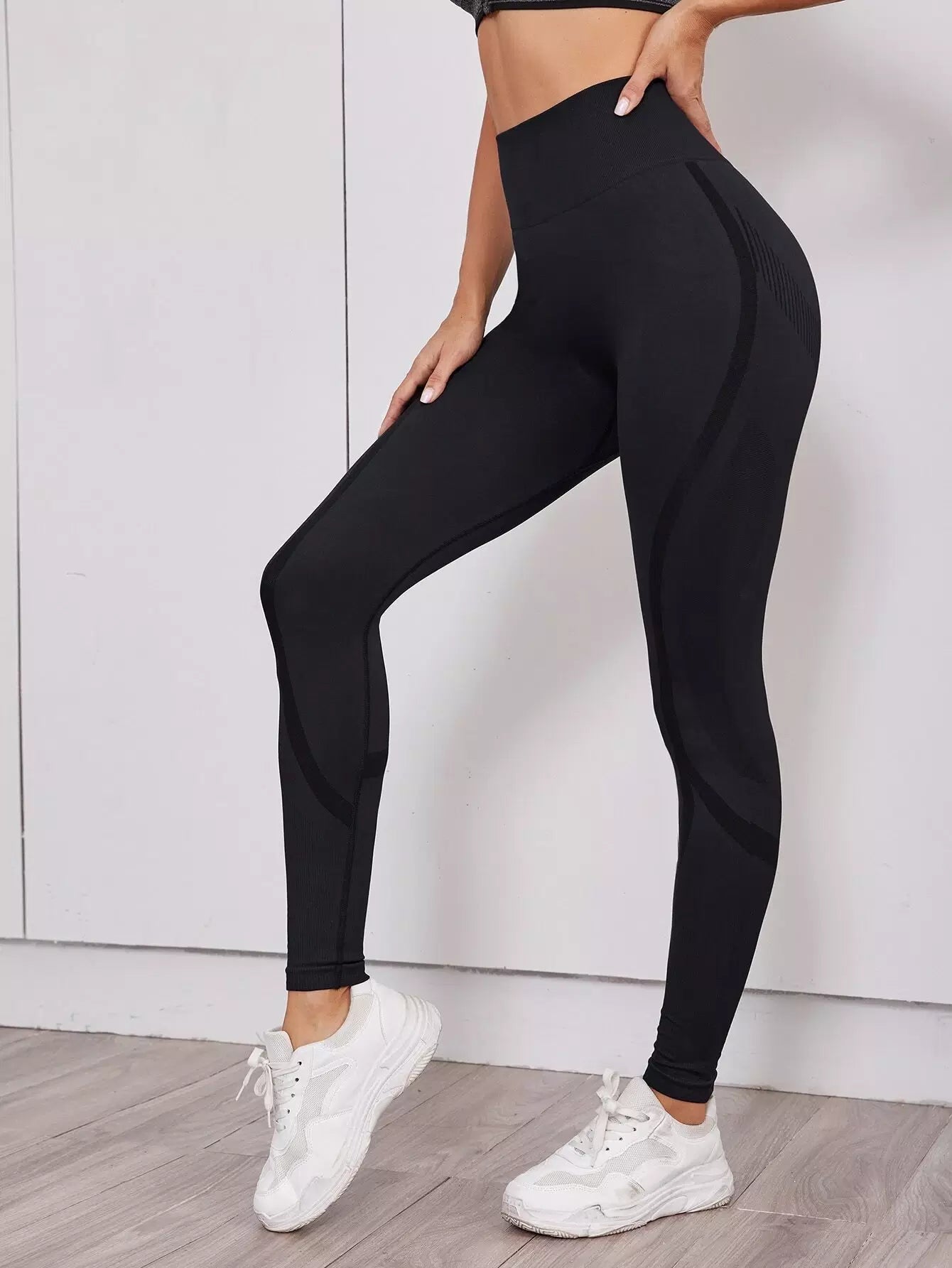 بنطلون ضيق رياضي بحزام خصر عريض بدون خياطة