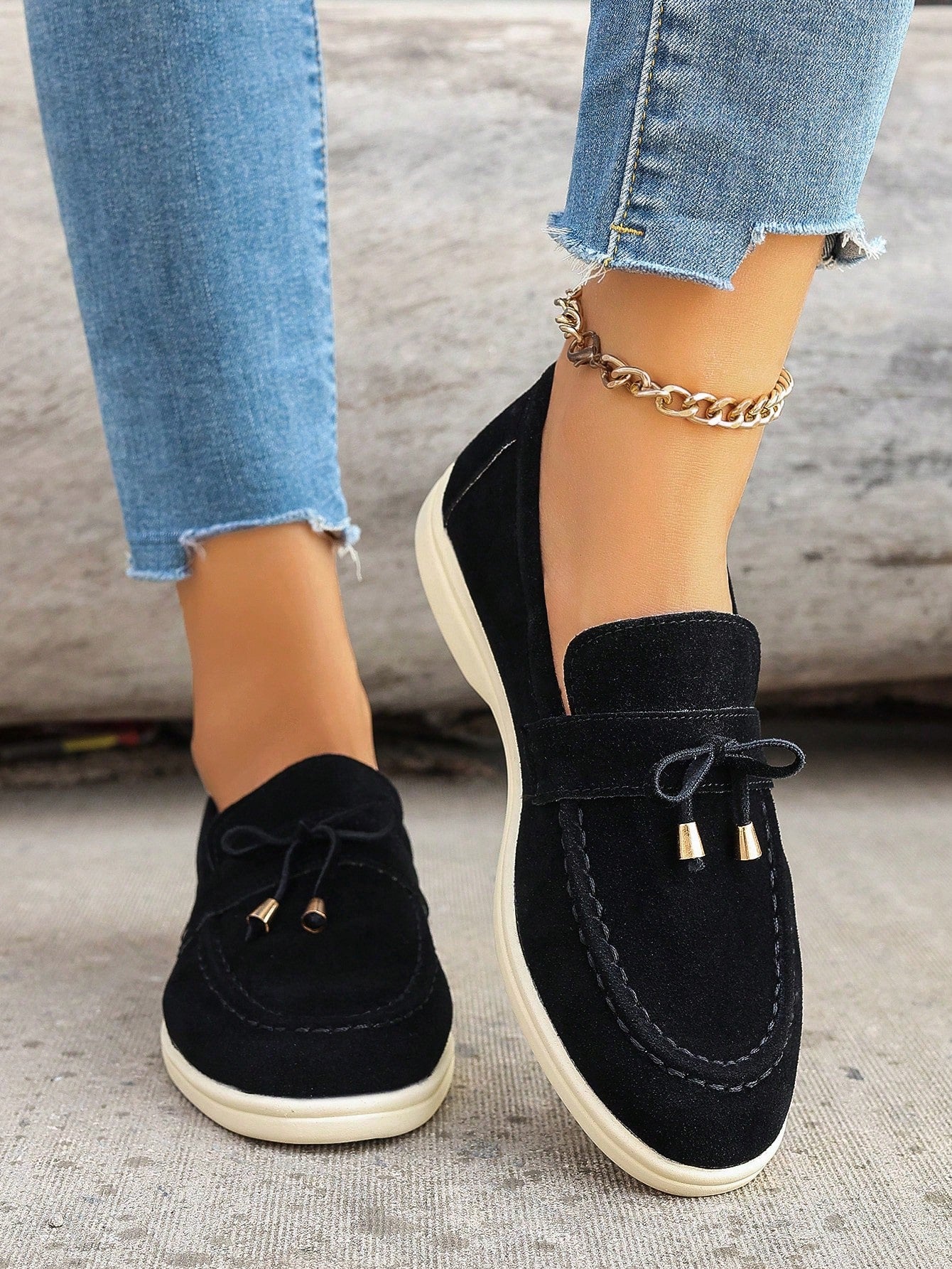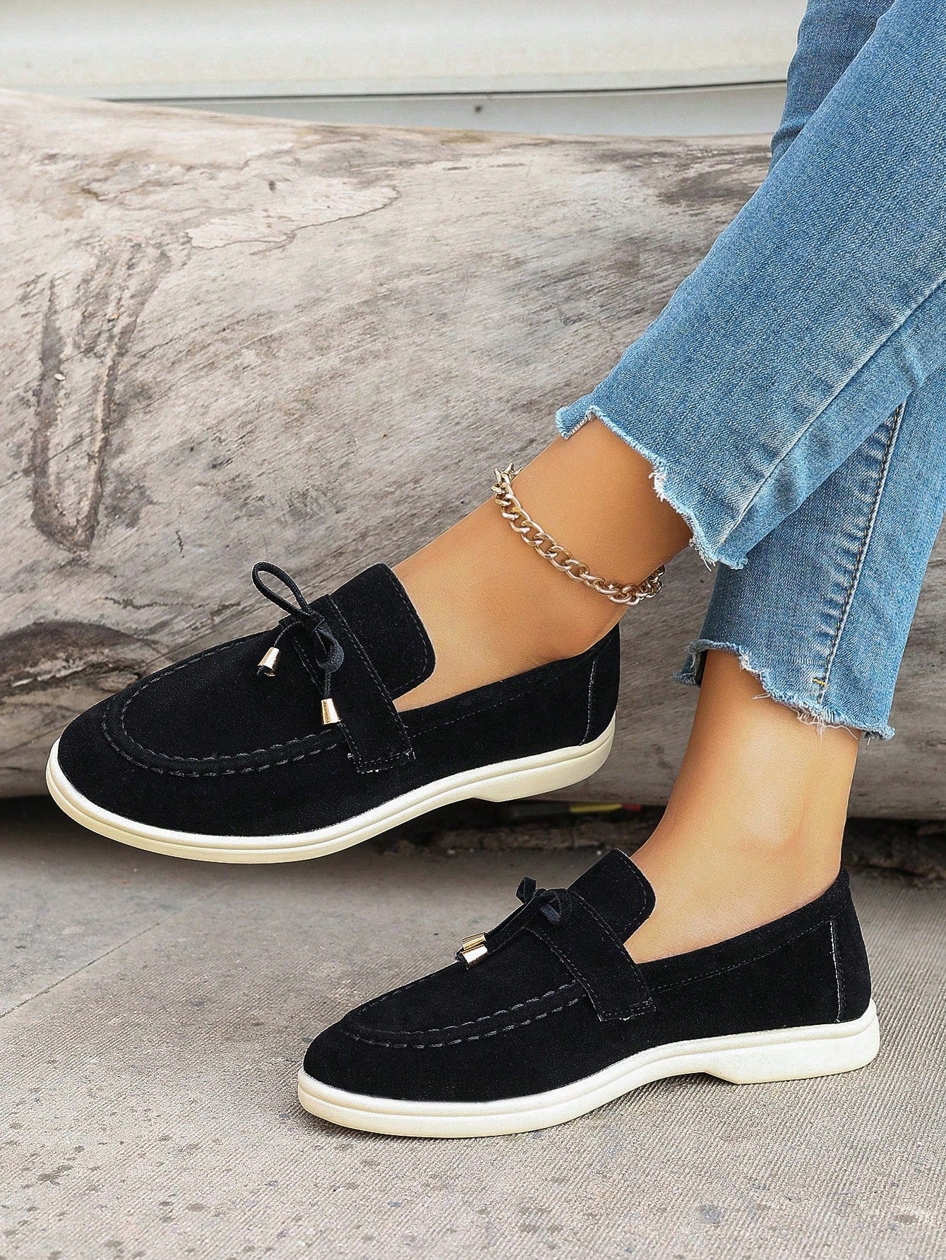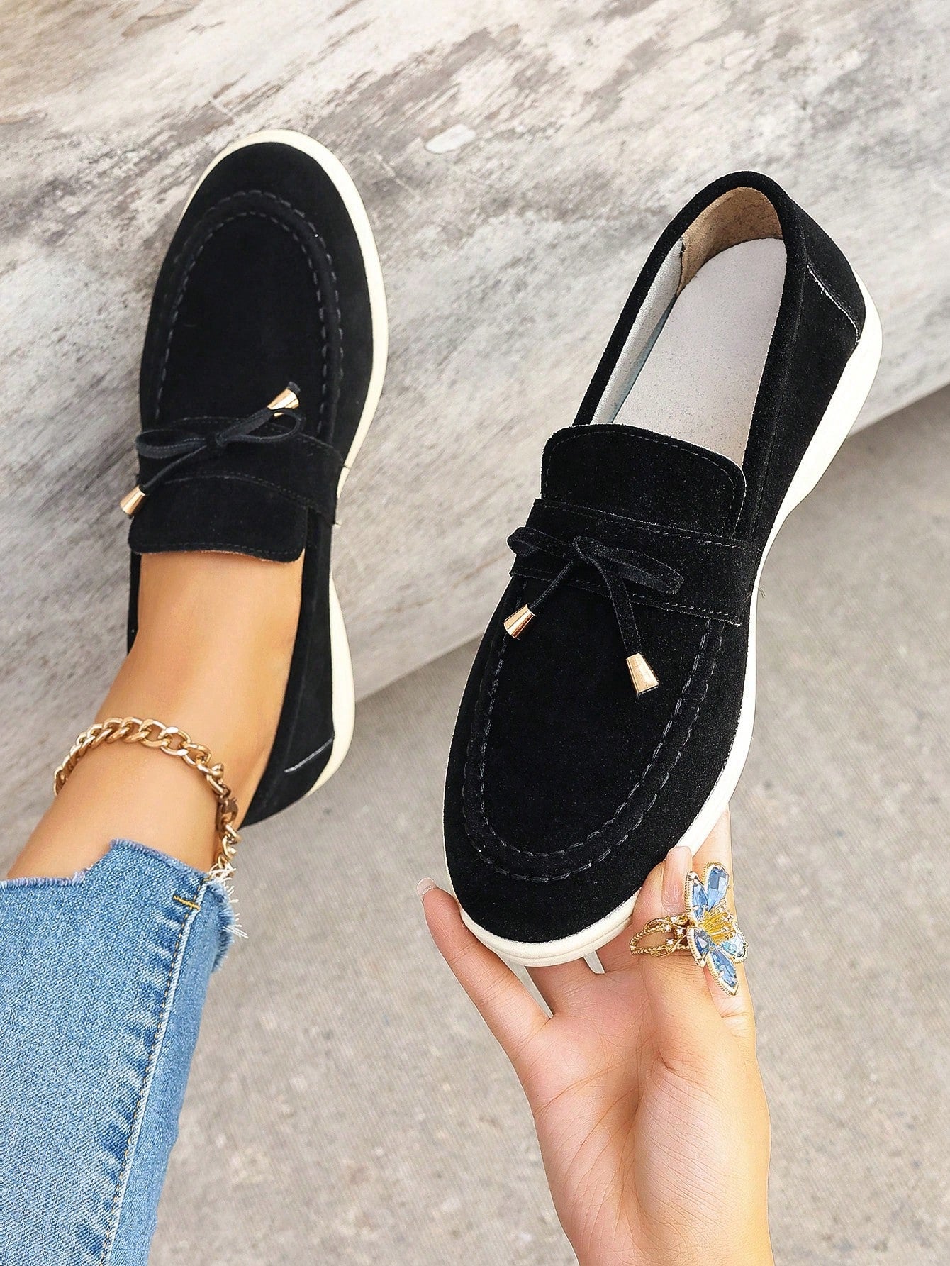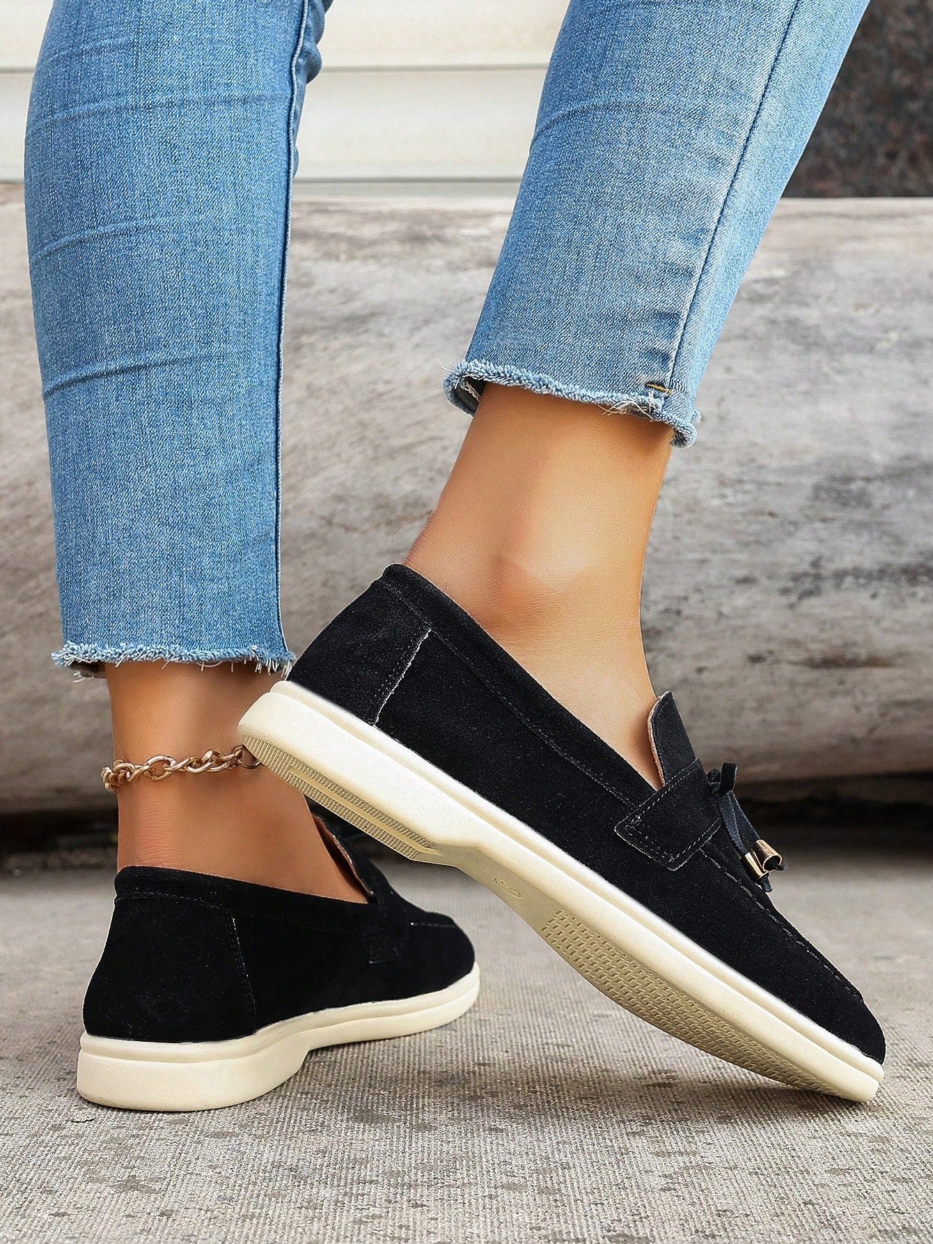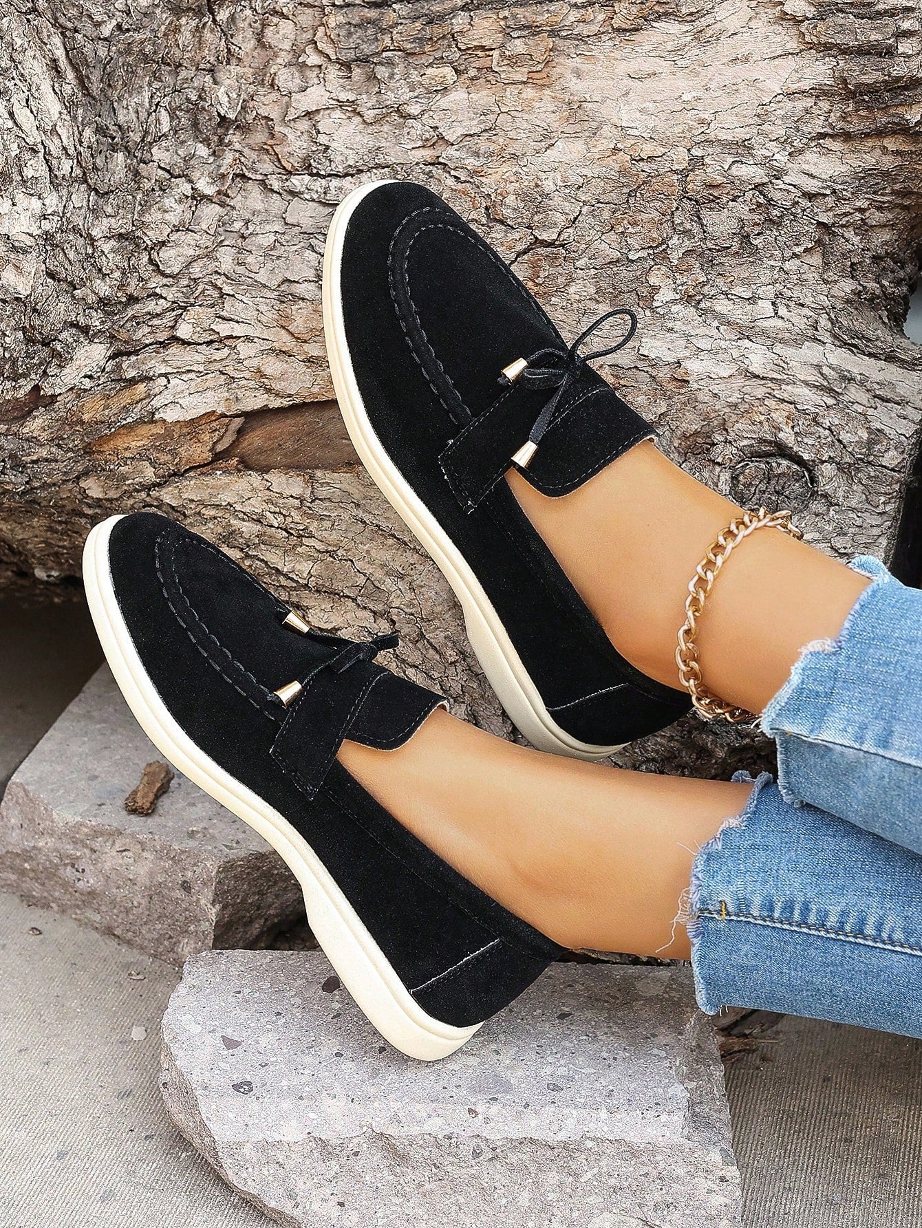 حذاء مسطح سهل الارتداء بمظهر جلد سويدي موسمي للنساء