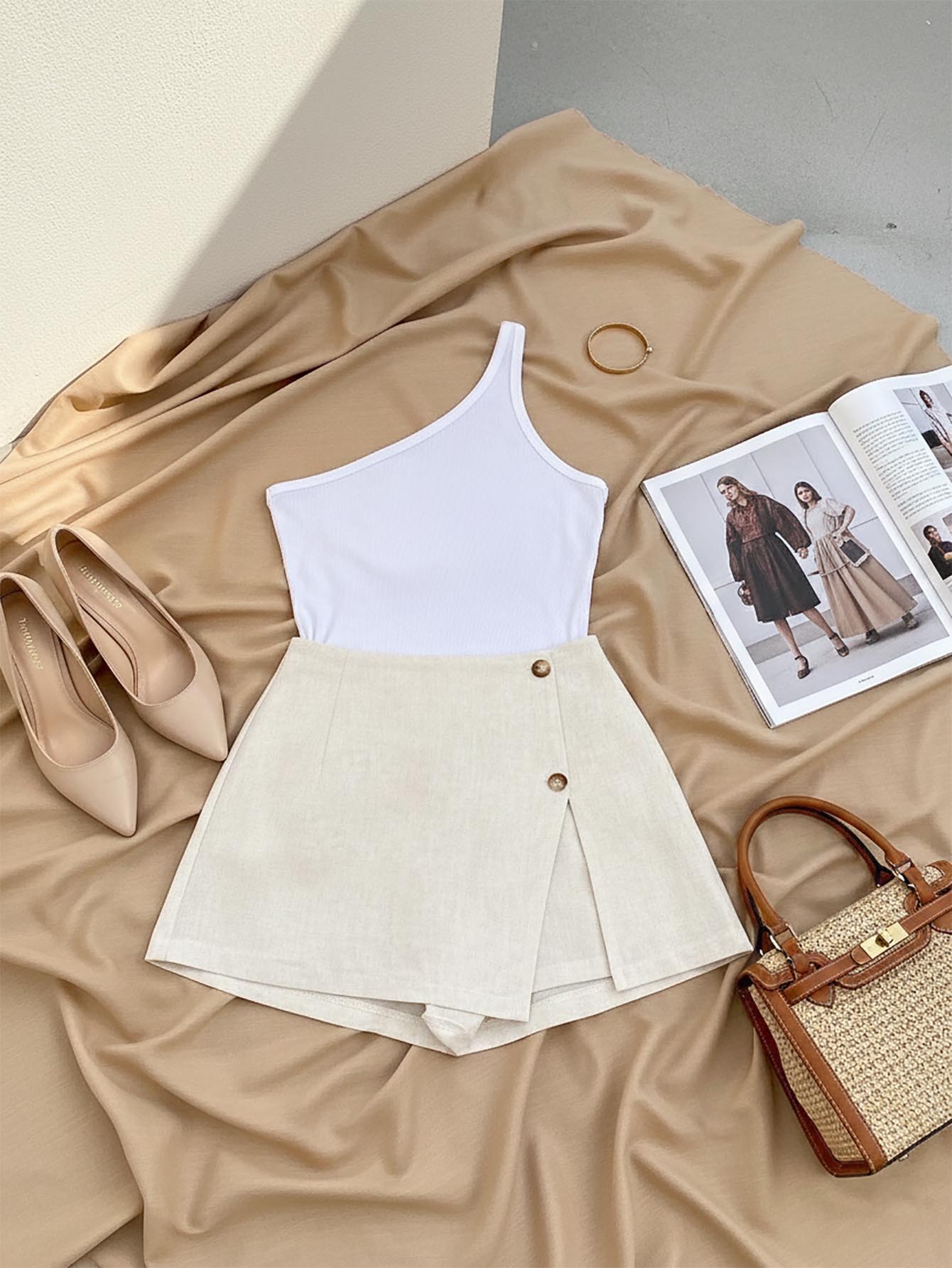 بنطلون كولوت نسائي من سيريس بلون موحد، بتصميم أزرار وحافة مشقوقة، مناسب للإطلالات الكاجوال