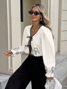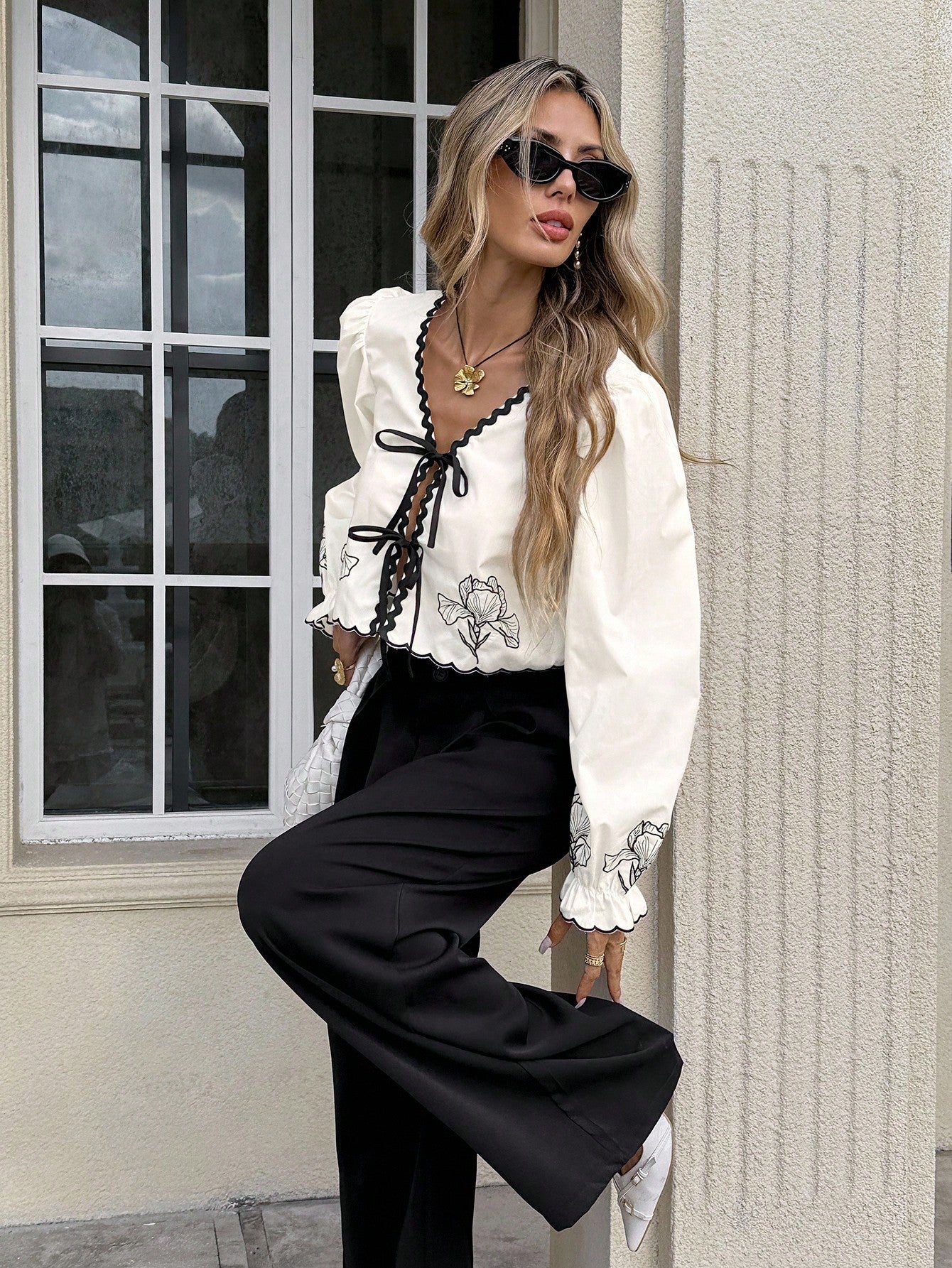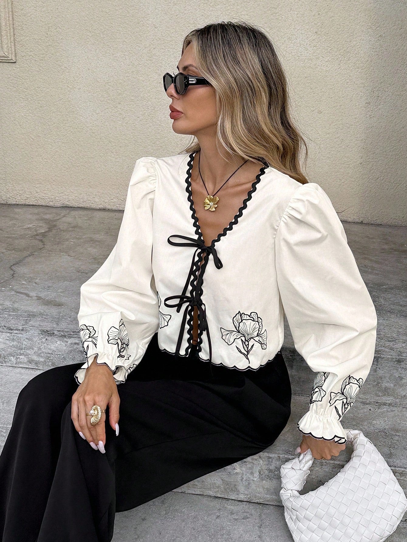 بلوزة نسائية من سيريس، مناسبة للعطلات، بتصميم كاجوال، بألوان متداخلة، وحمالات منسوجة، وتطريزات زهرية، ورباط أمامي.