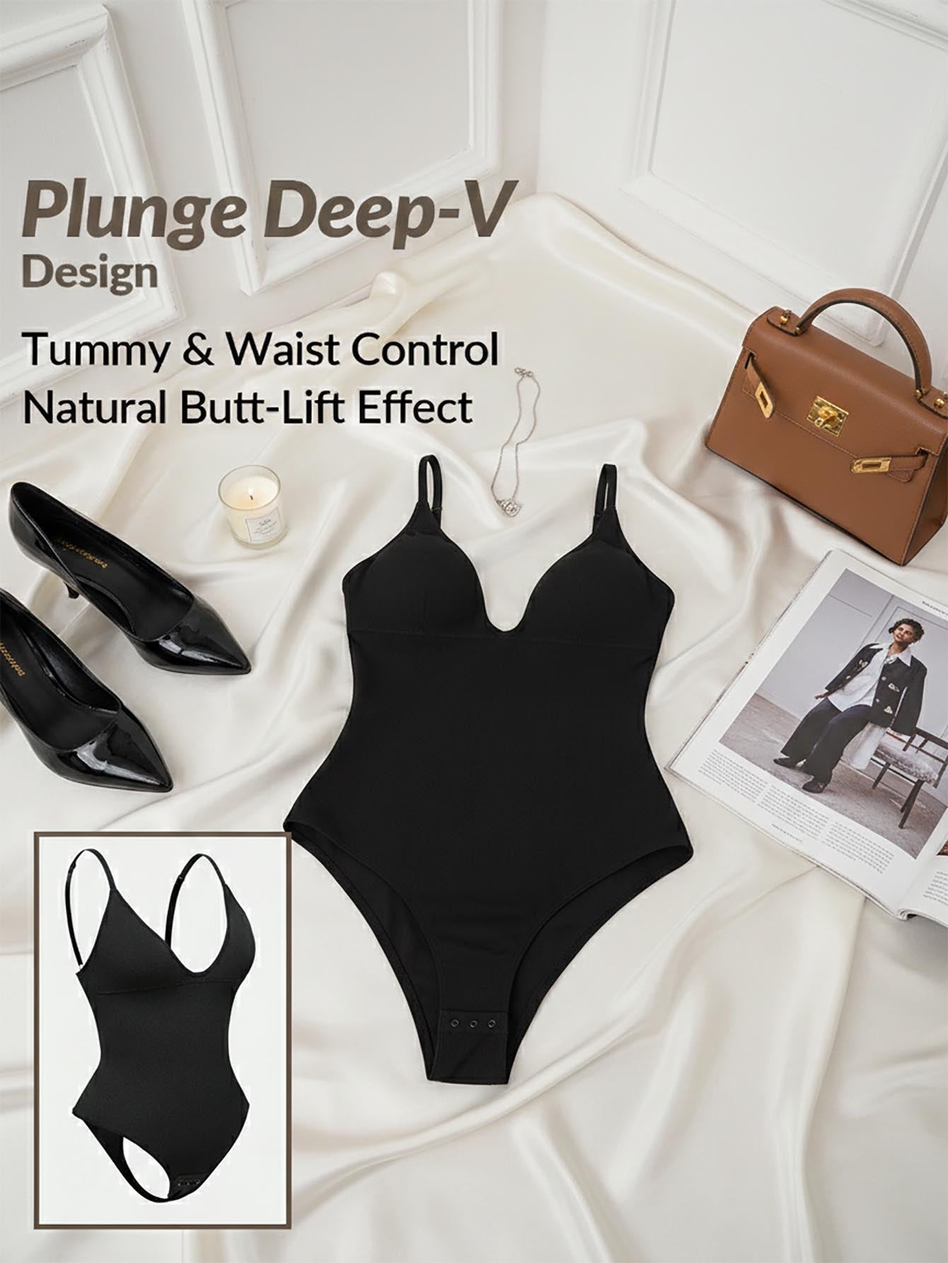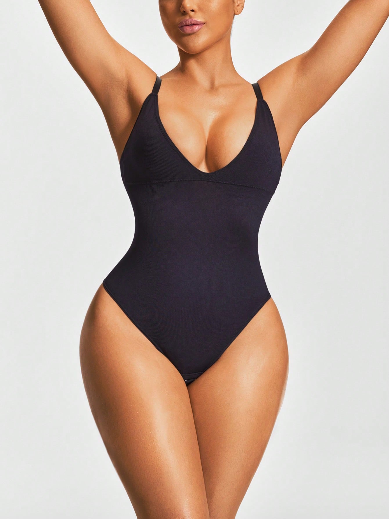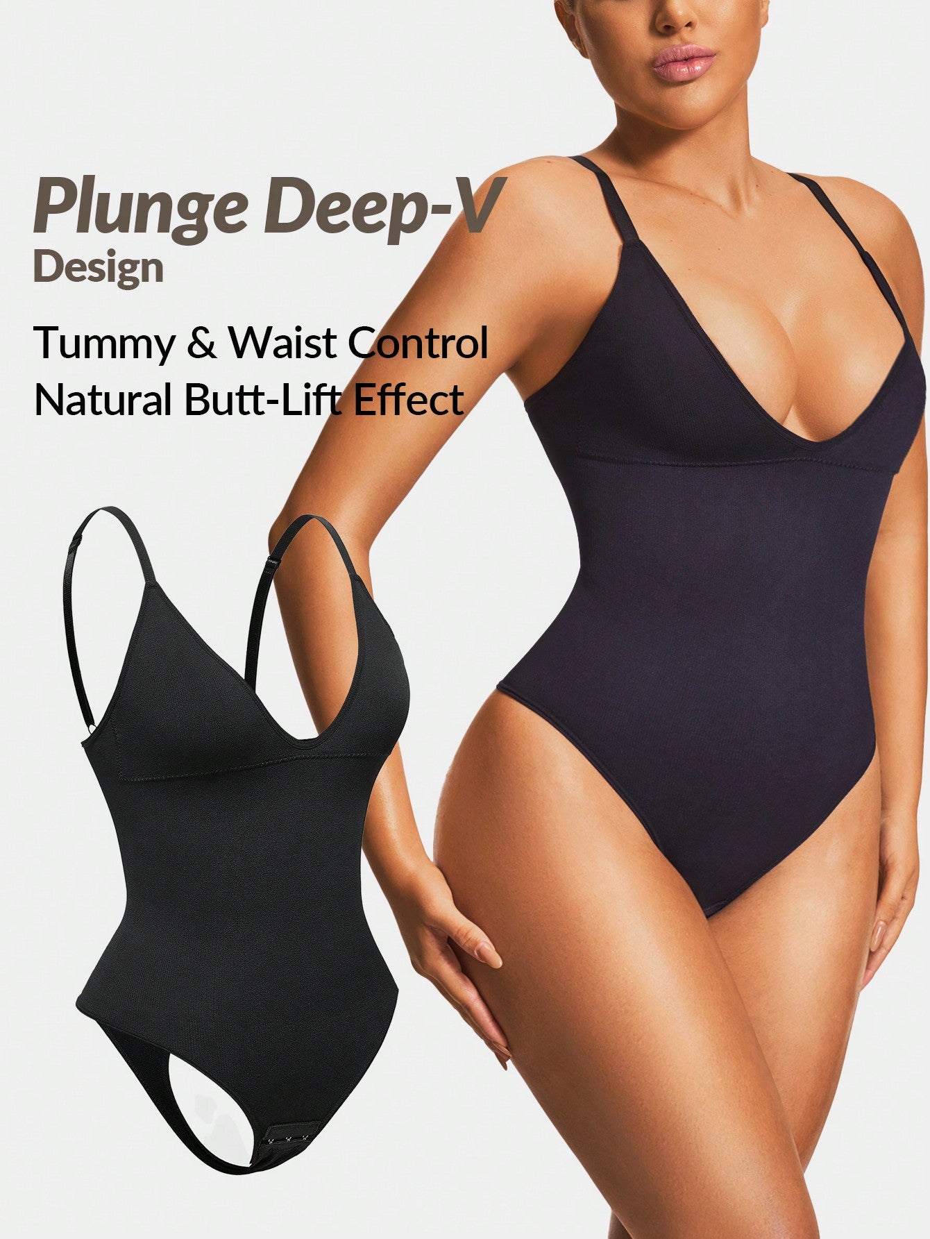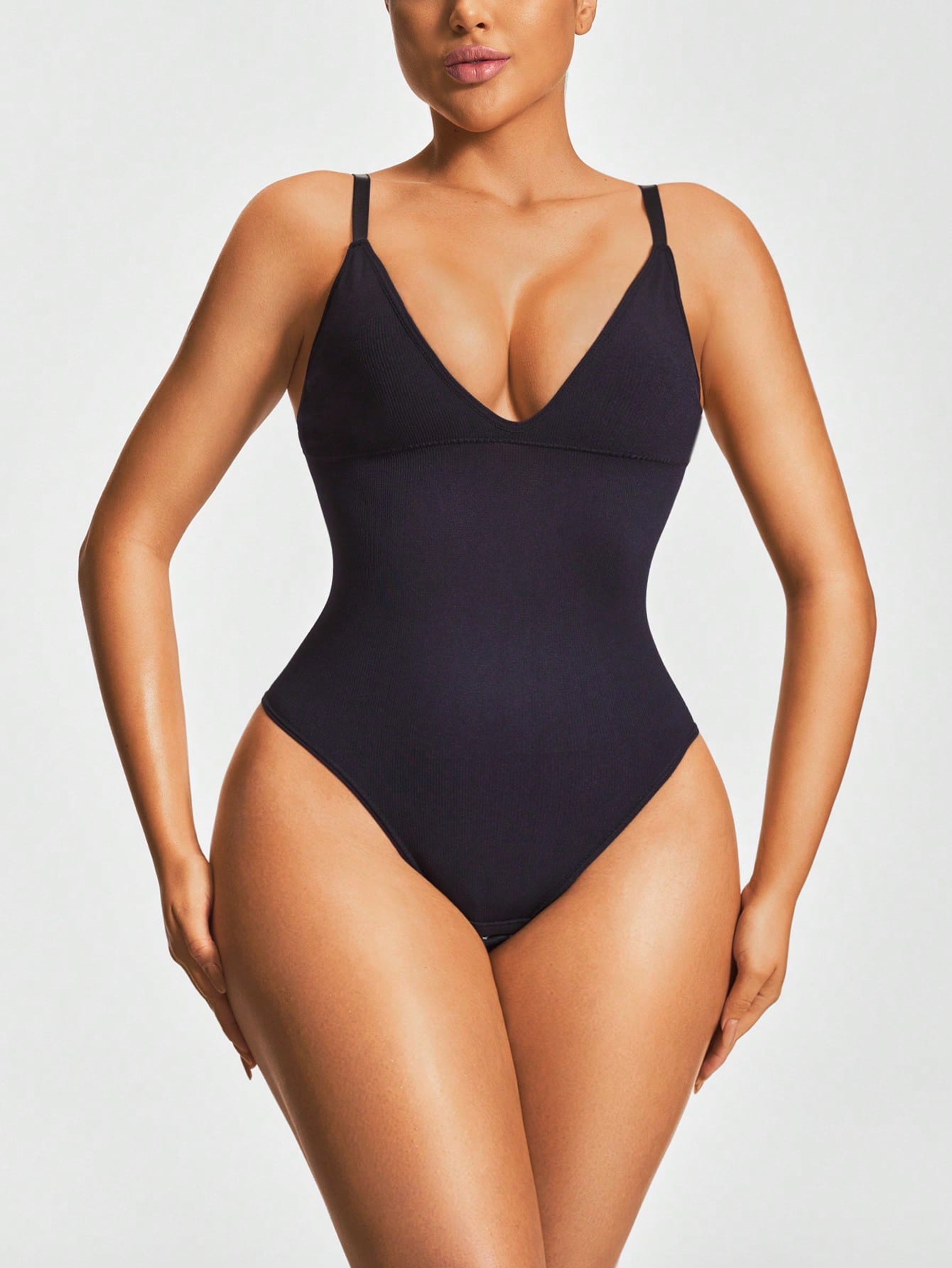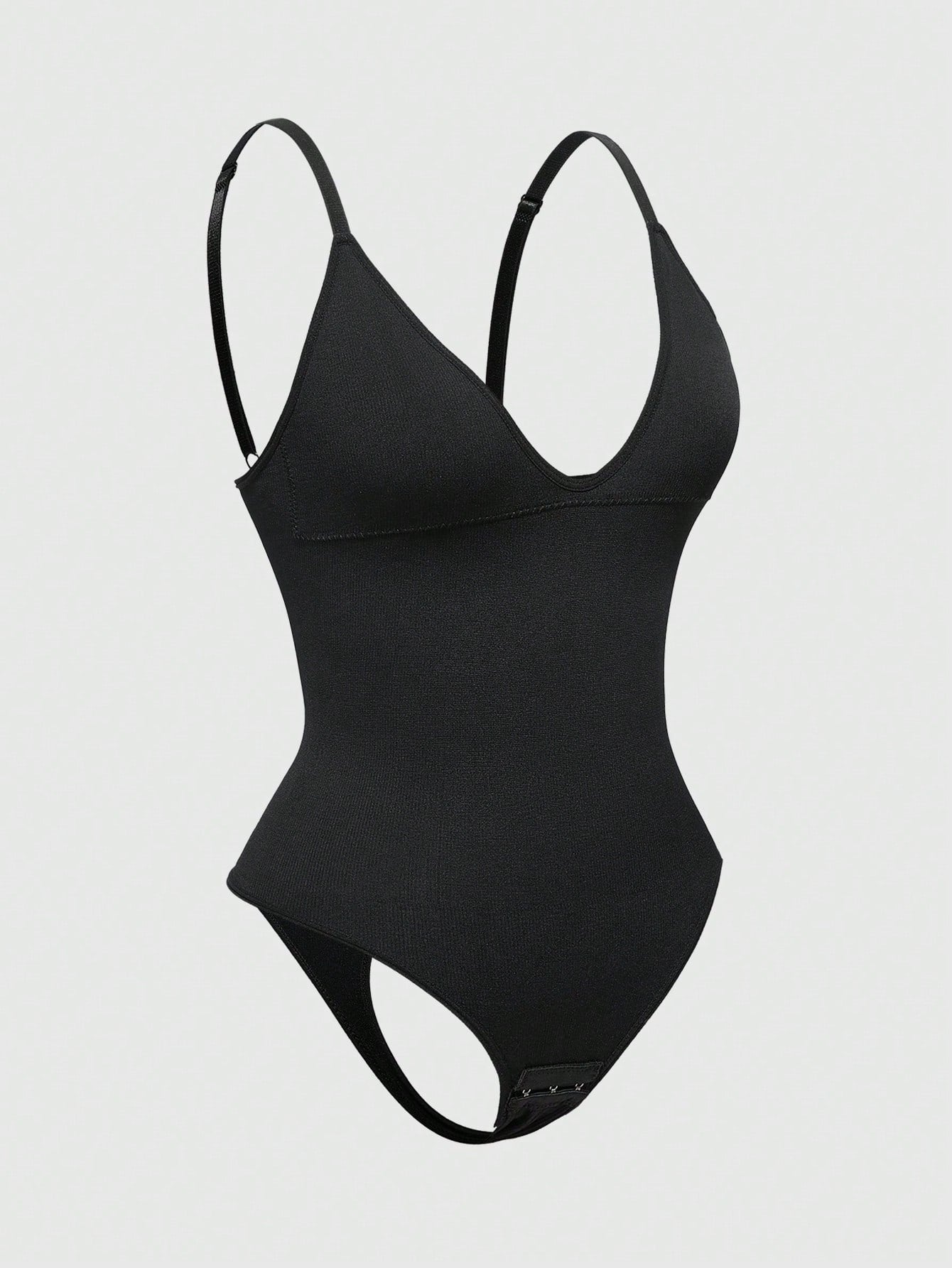 شابورا، ملابس داخلية بدون خياطة، بفتحة صدر عميقة على شكل حرف V، مشد للجسم، رافع للأرداف، بأشرطة قابلة للتعديل - للبطن