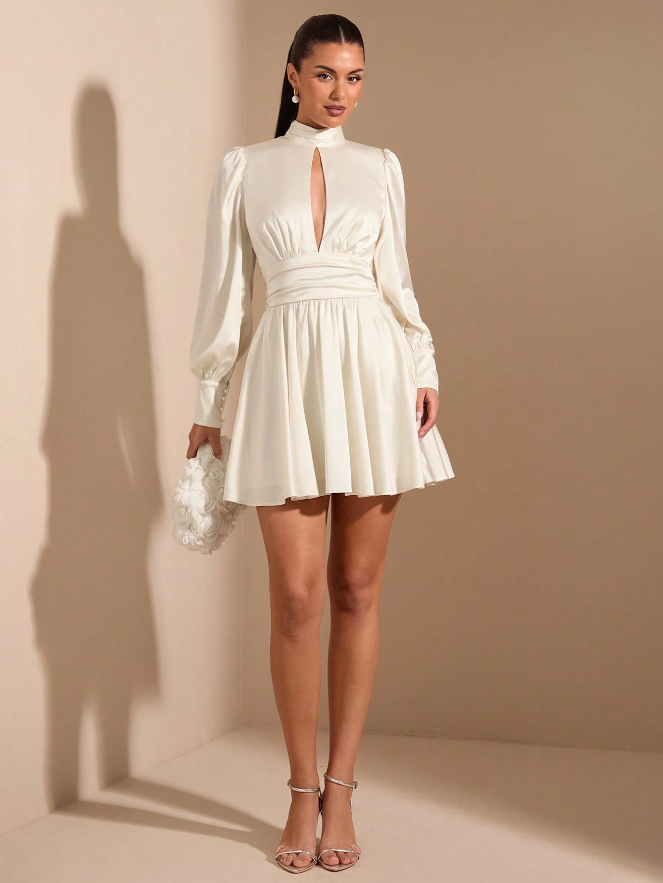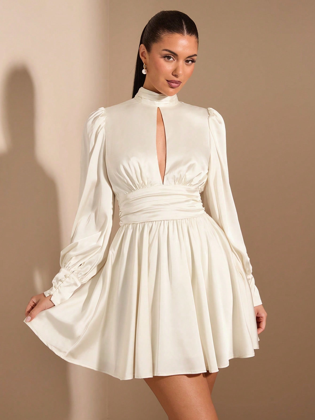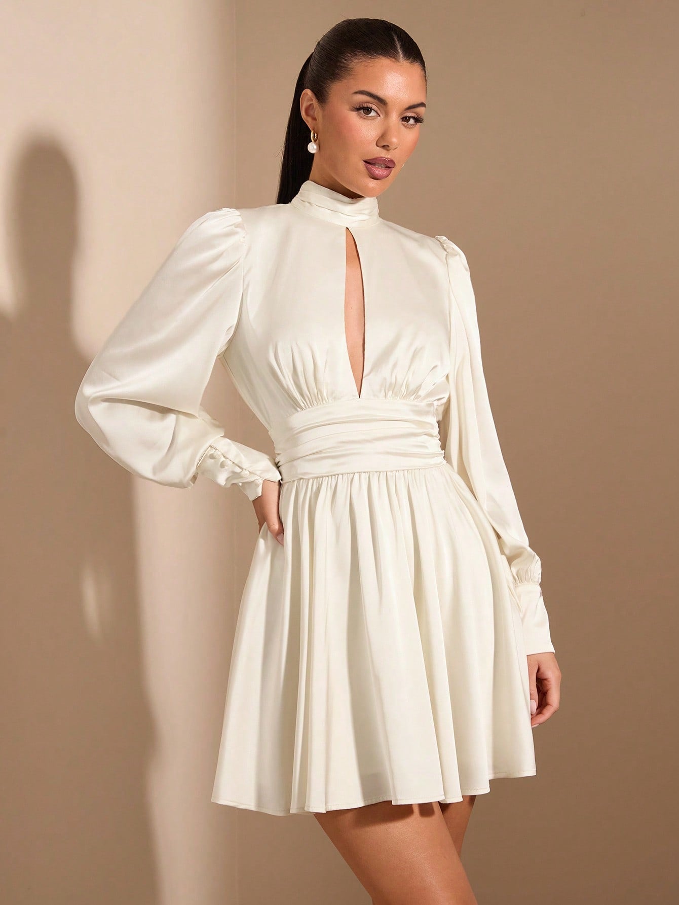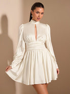 فستان نسائي أبيض مثير وأنيق بأكمام طويلة من SHEIN BAE