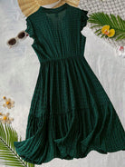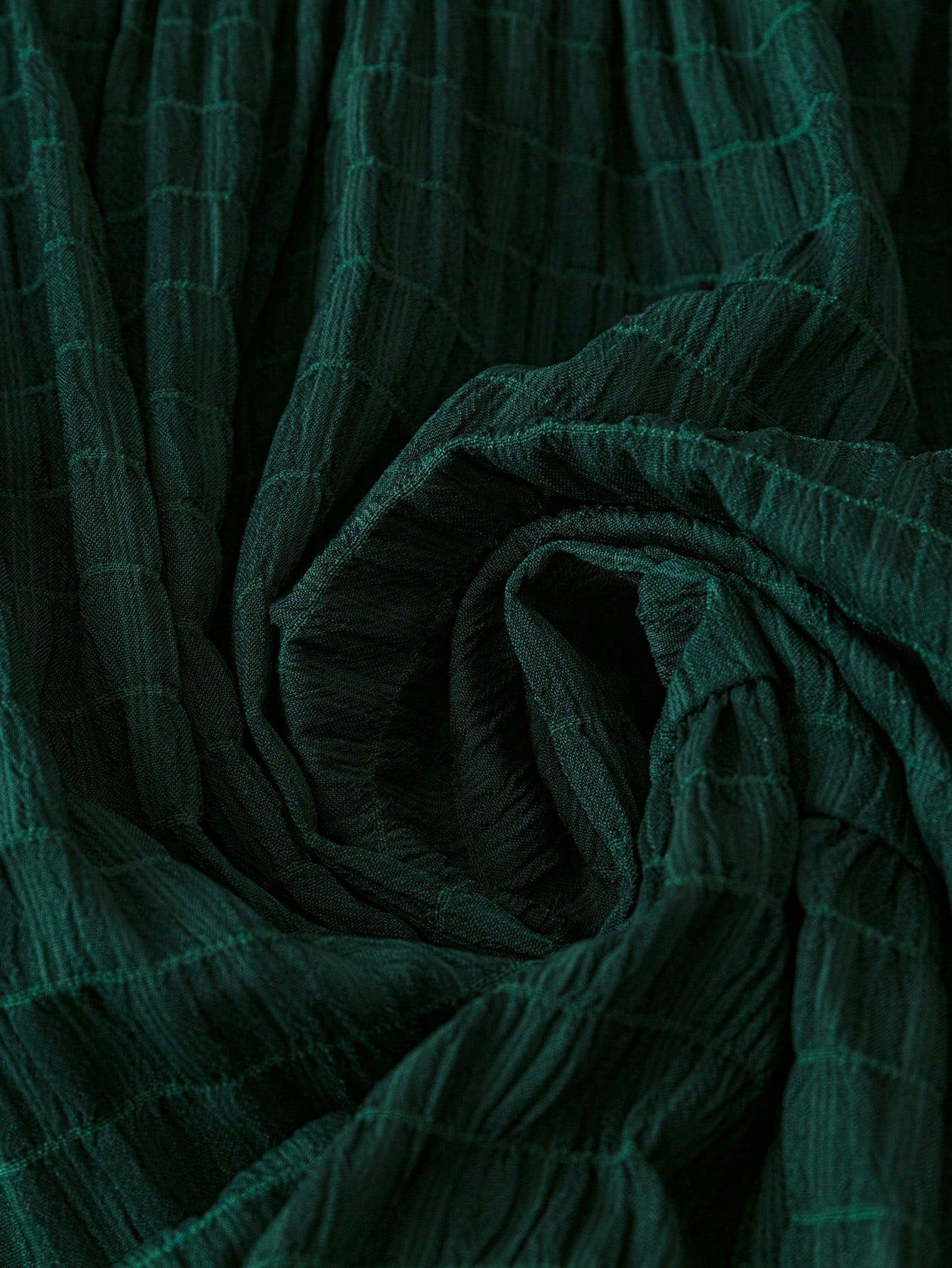 women SHEIN Clasi Plus Size Women's Dark Green Pleated Texture Material Round Neck V-Neck Mini Tiered Ruffle Sleeve Short Elegant Holiday Dress