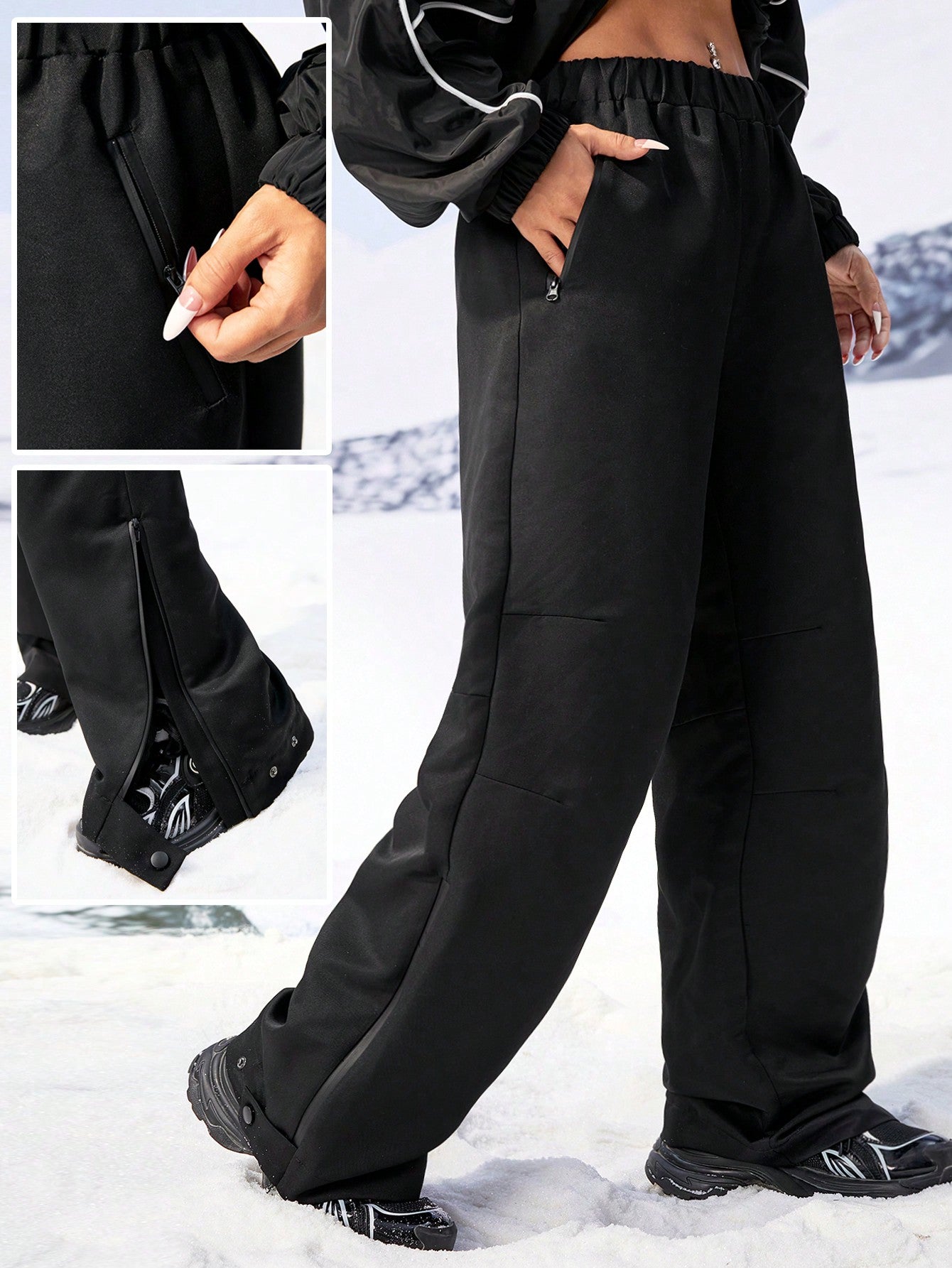 بنطلون SHEIN EZwear الرياضي الكاجوال الخارجي ذو اللون الواحد وسحاب من الأسفل وطويل