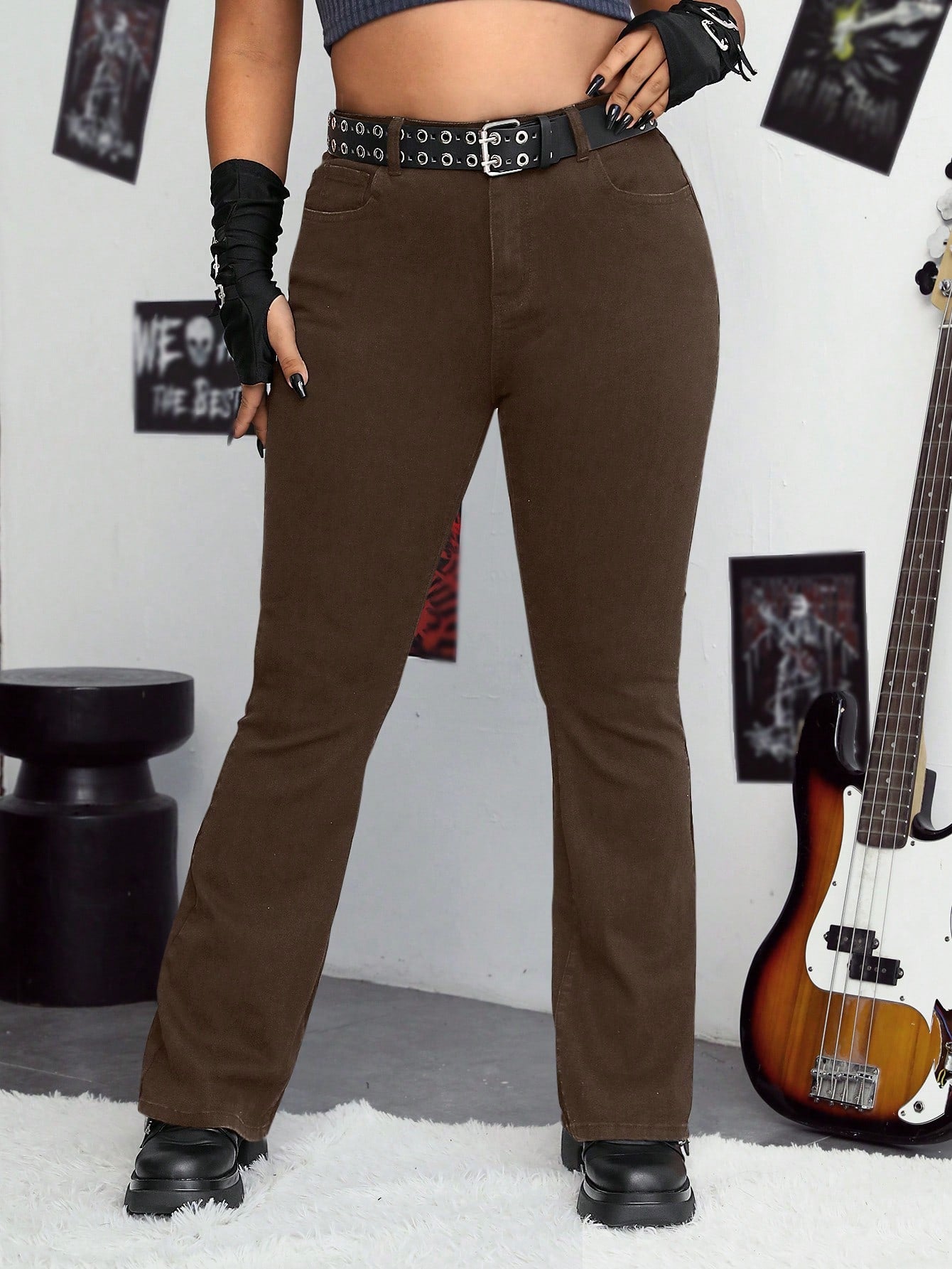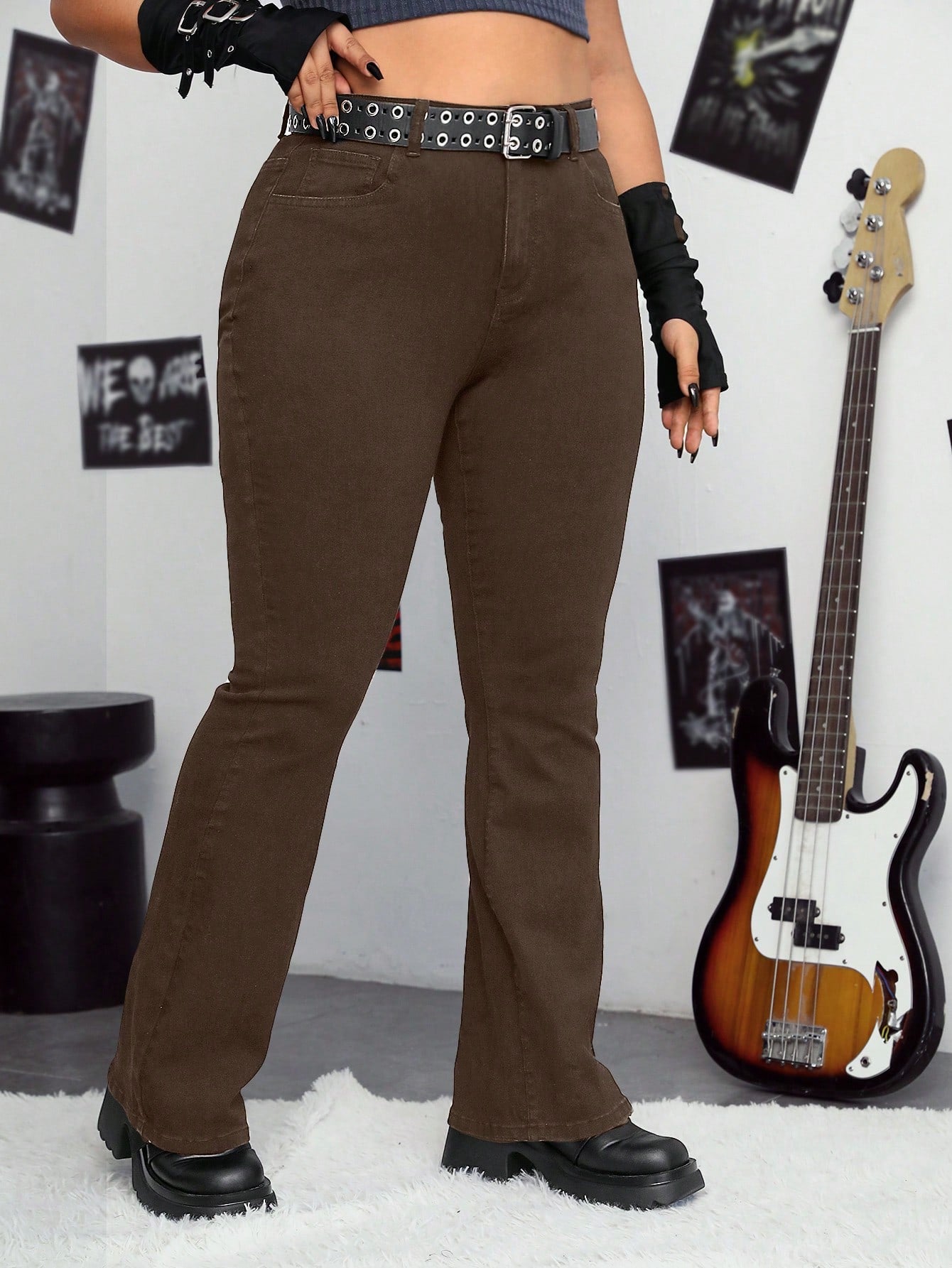 women SHEIN ICON Plus Black High Waist Flare Leg Jeans Without Belt