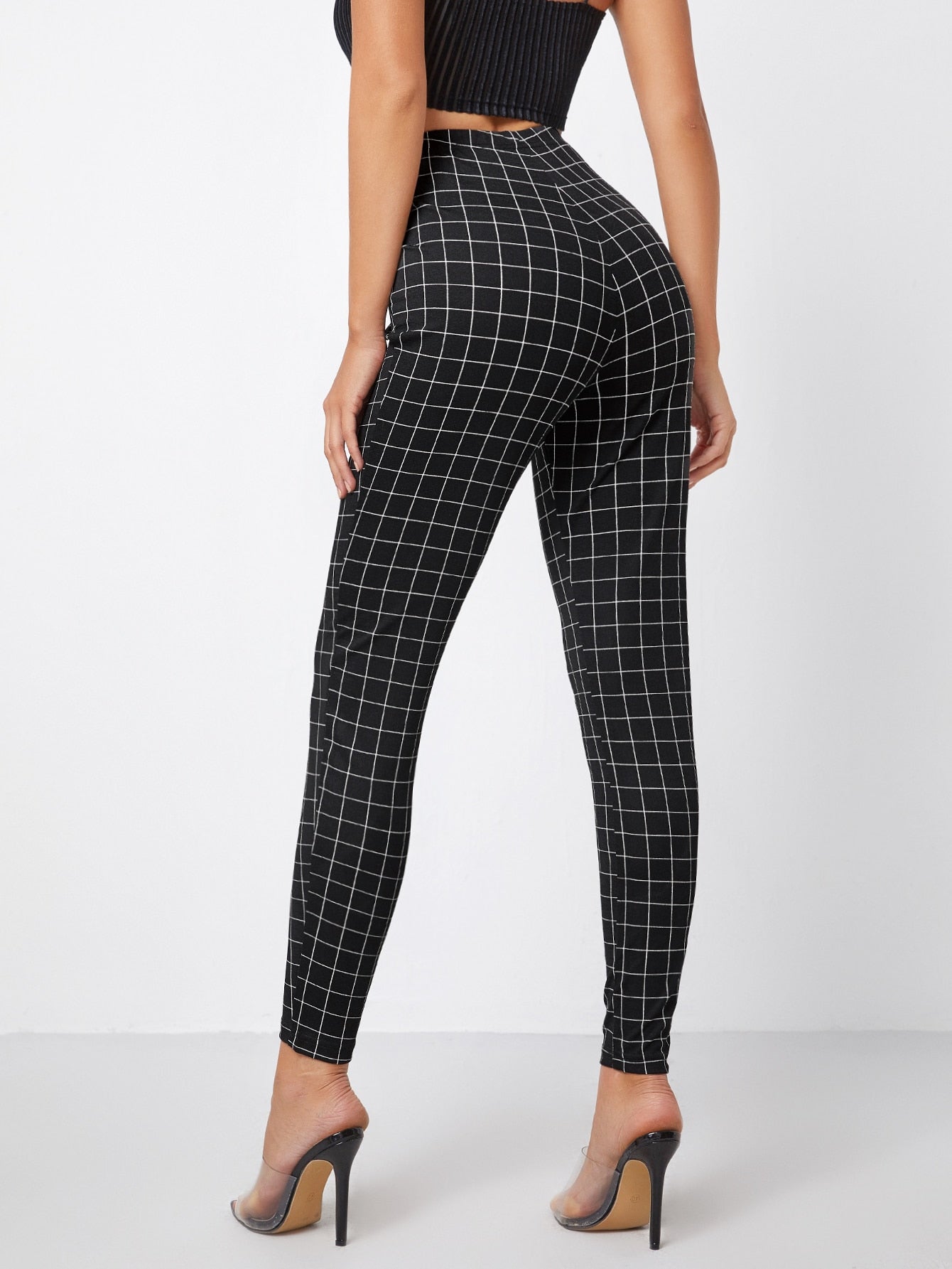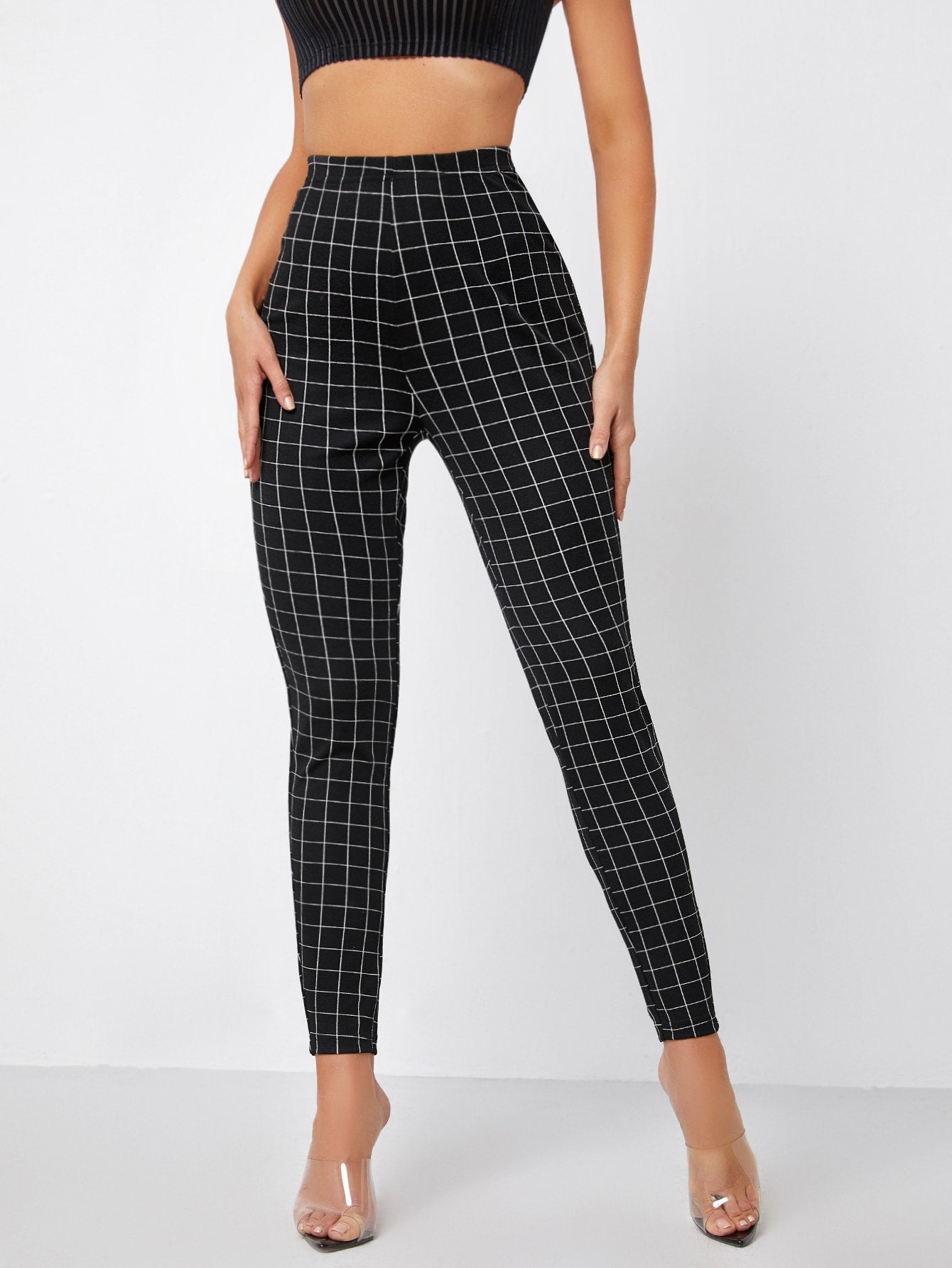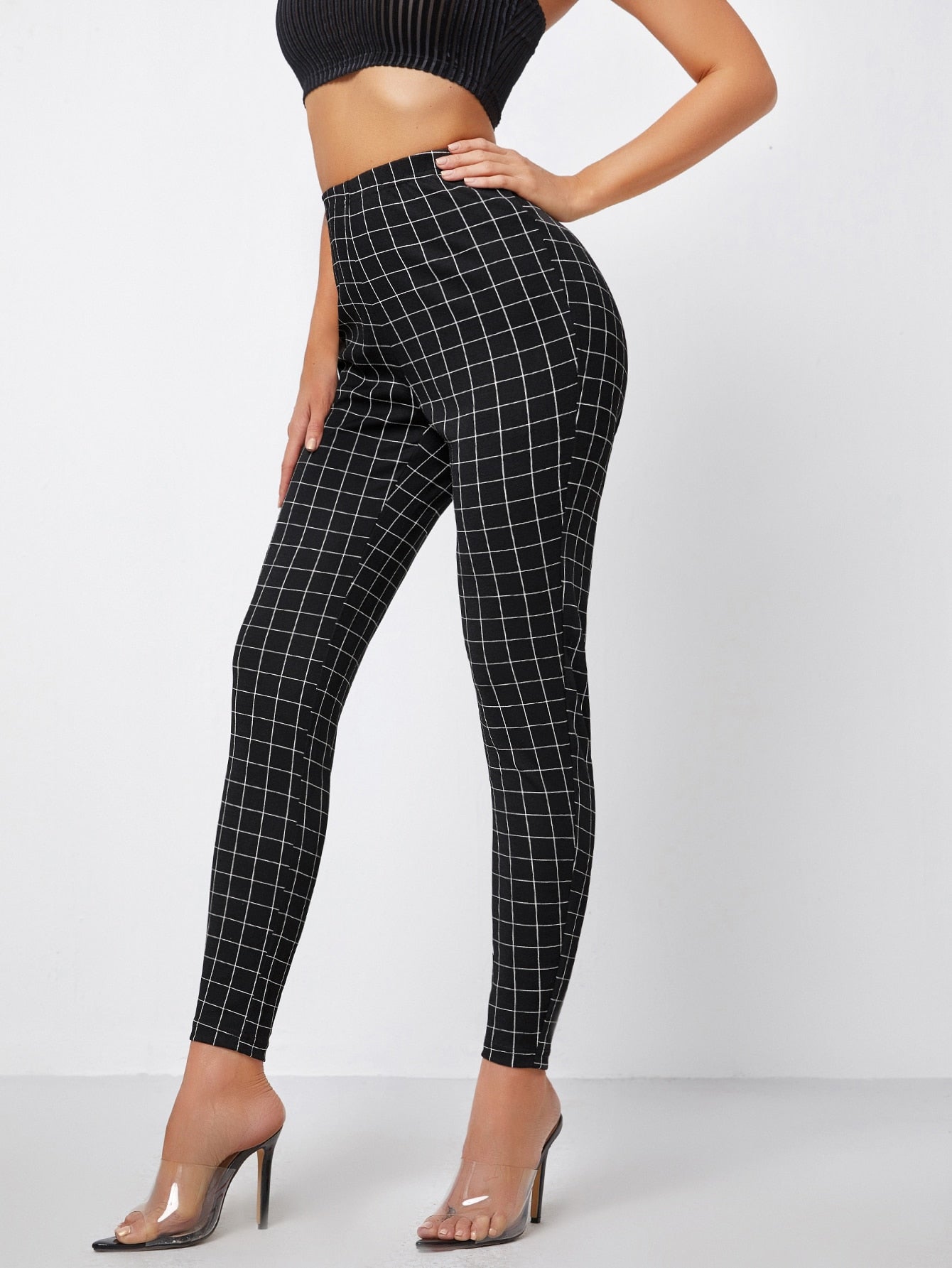 women SHEIN Privأ© High Waist Grid Skinny Leggings
