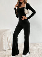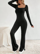 women SHEIN Tall Solid Color Square Neckline Simple Flared Pants Jumpsuit
