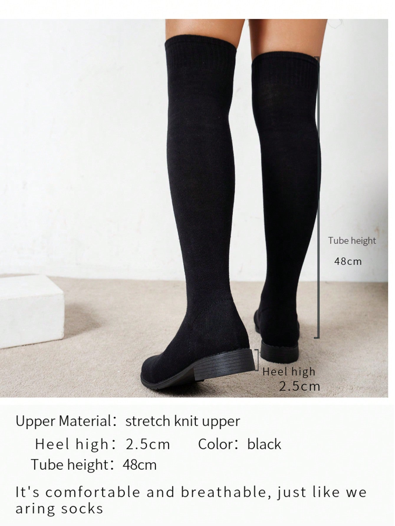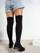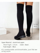 أحذية شيهوا فوق الركبة برباط مطاطي - تصميم نسائي جديد لعام 2025، متعدد الاستخدامات، طويل، محبوك، مسطح، مقدمة دائرية، رفيع