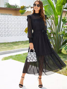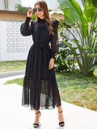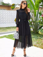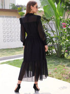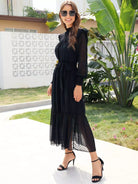 فستان بكشكشة وأكمام مكشكشة بدون حزام