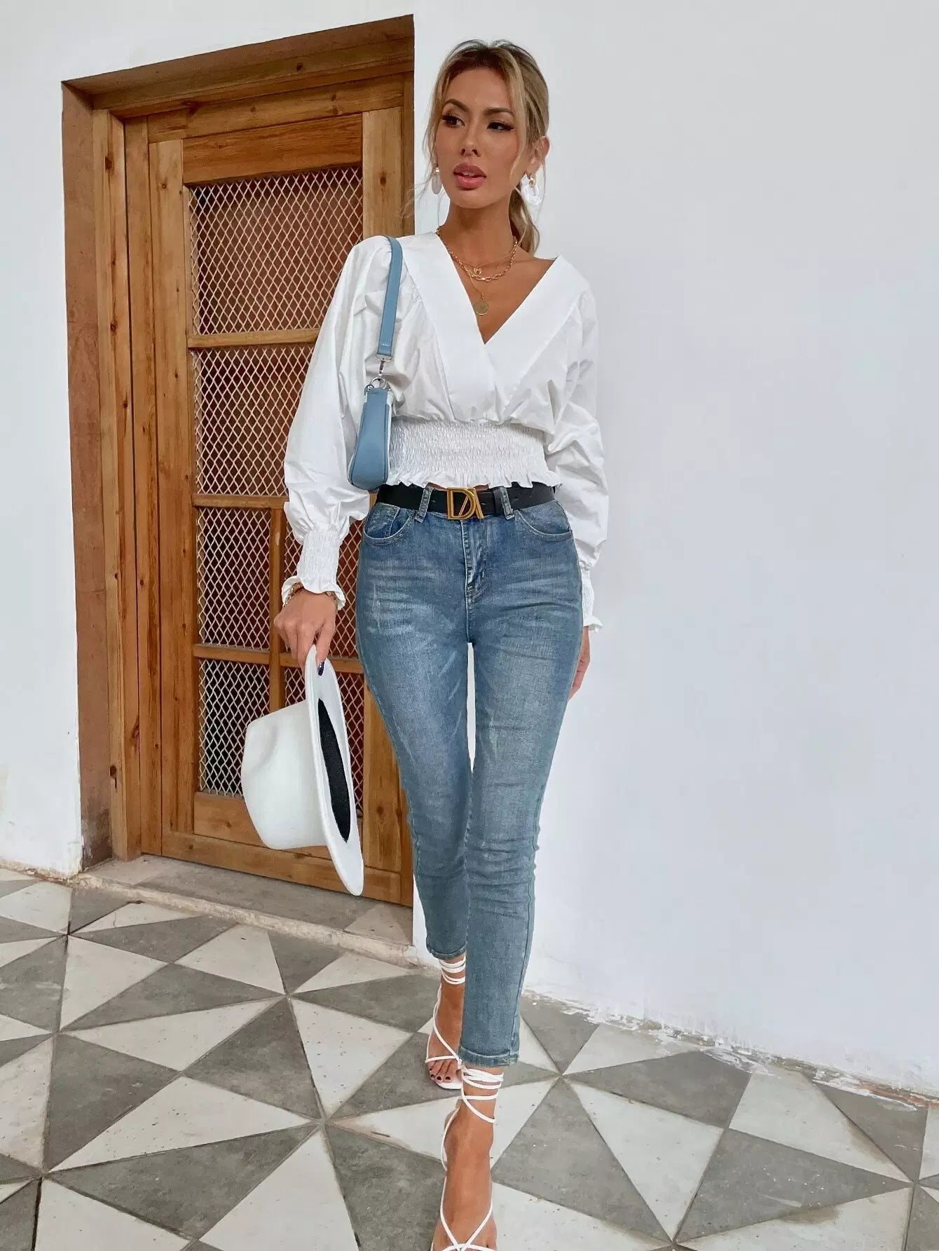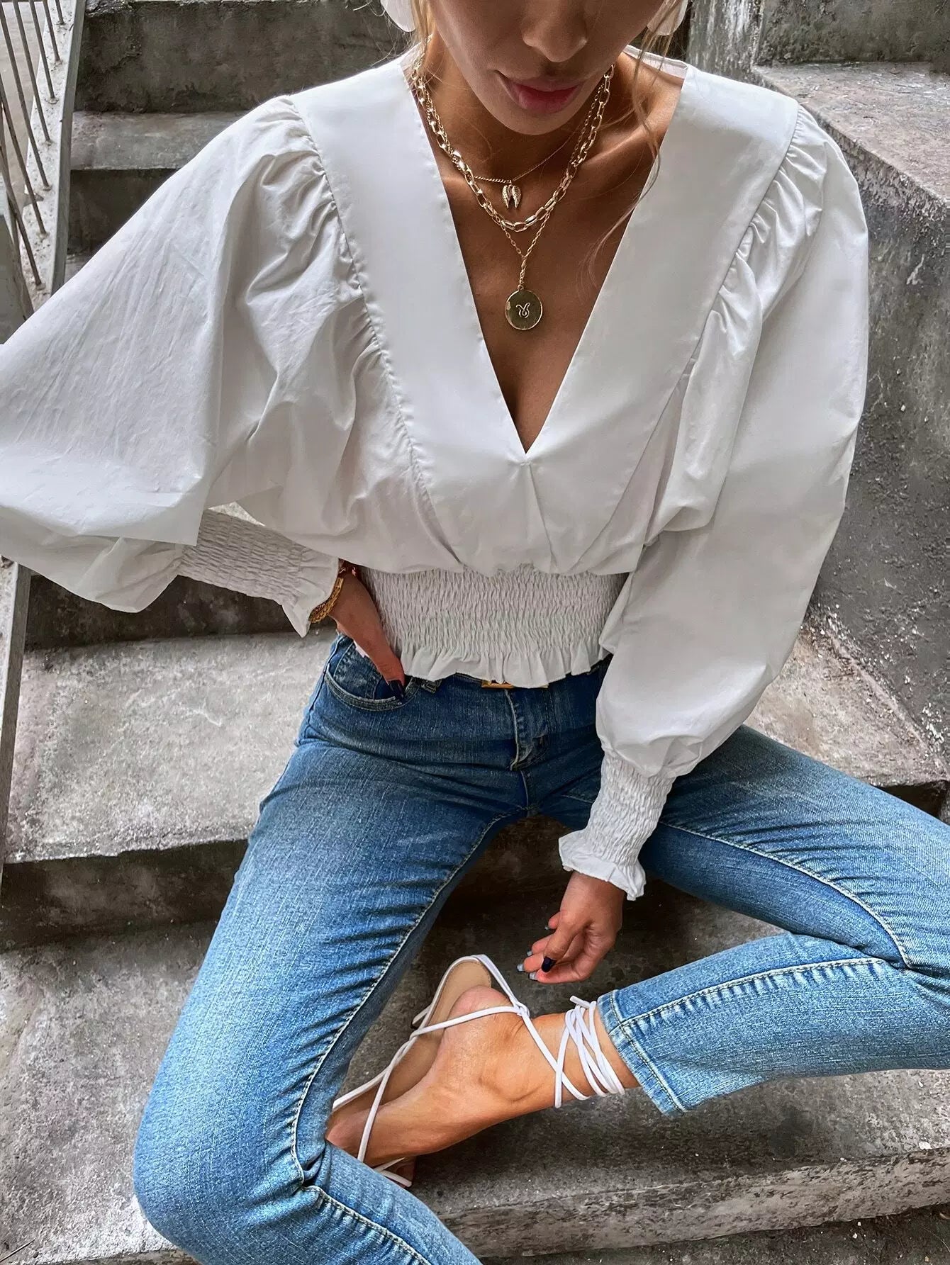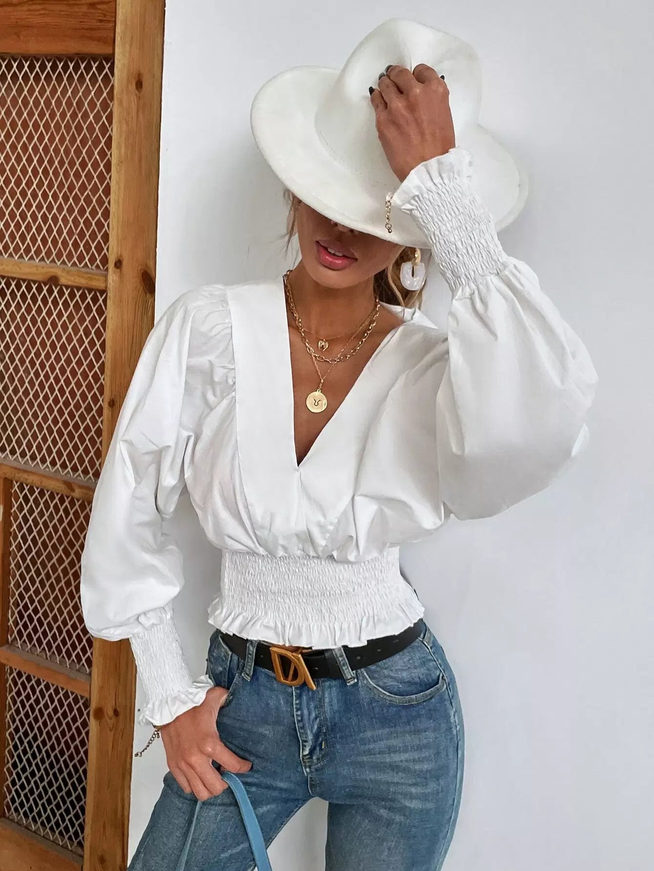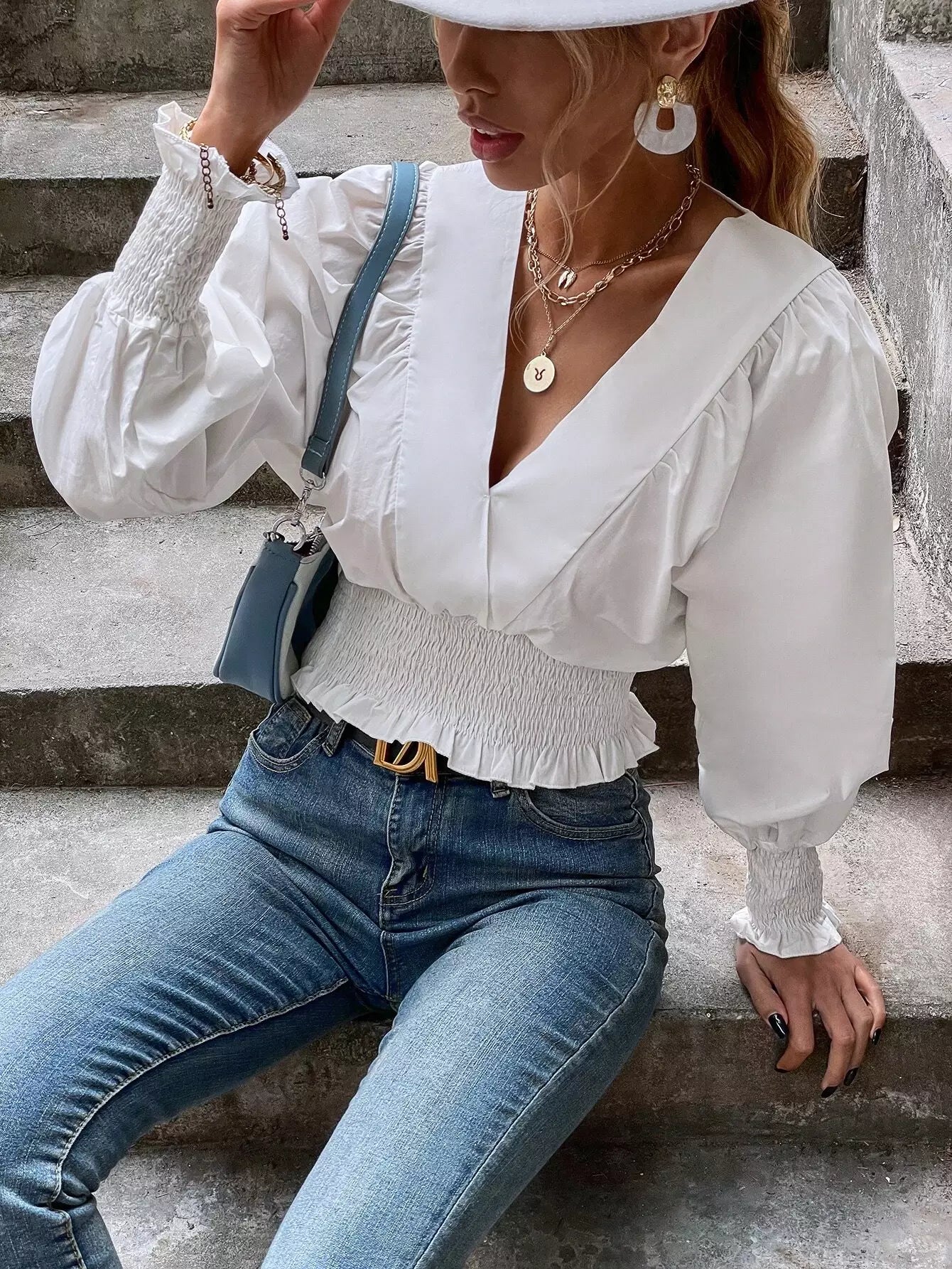 بلوزة كشكش الخصر كشكش الحاشية