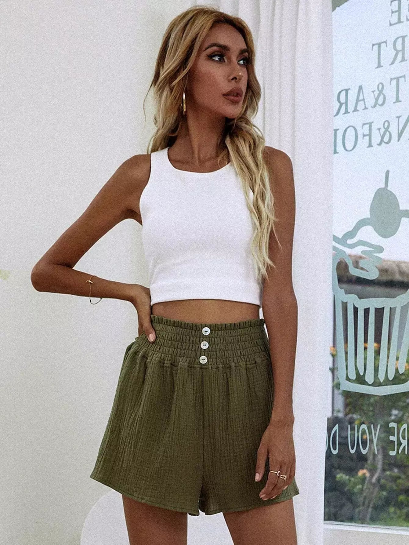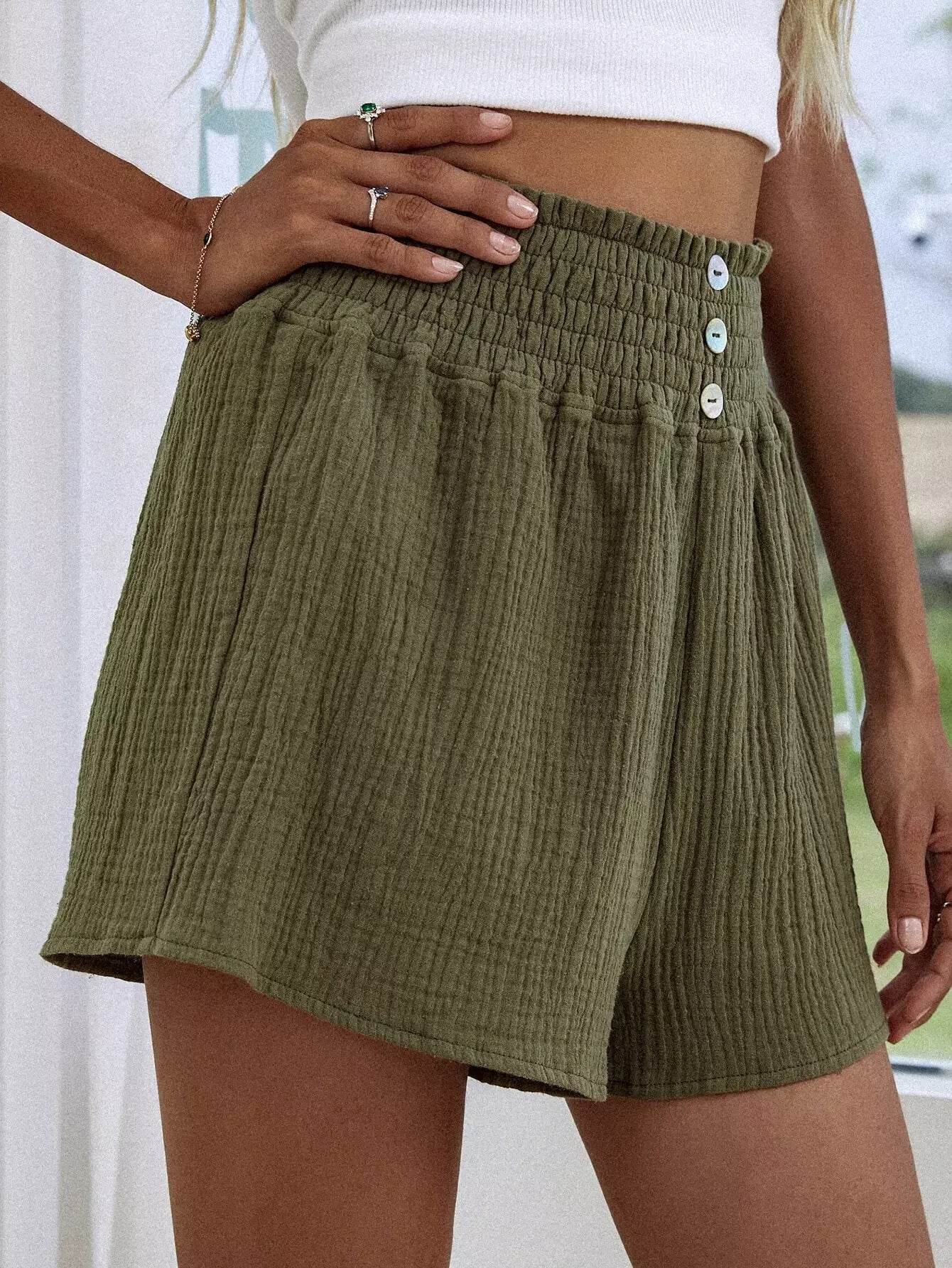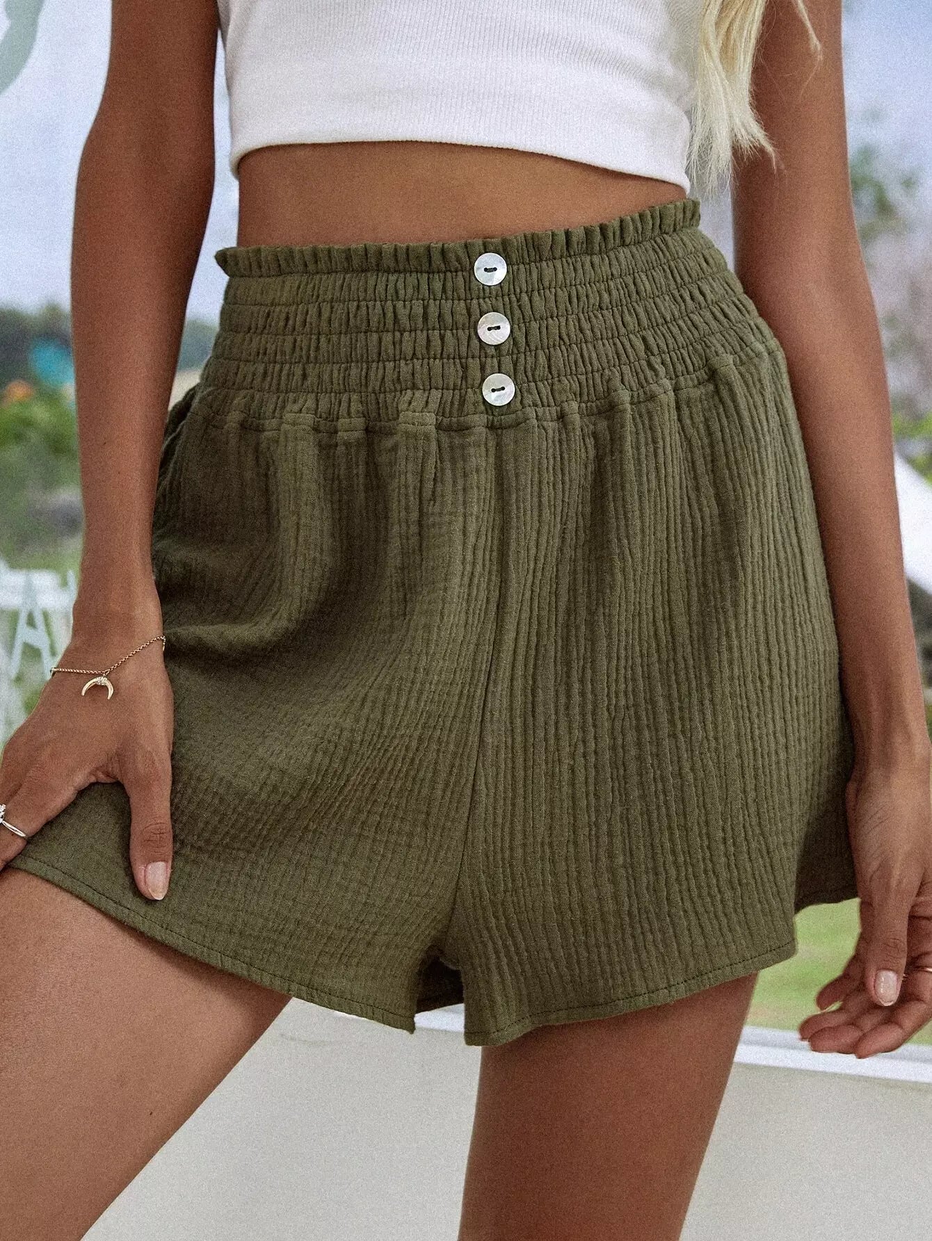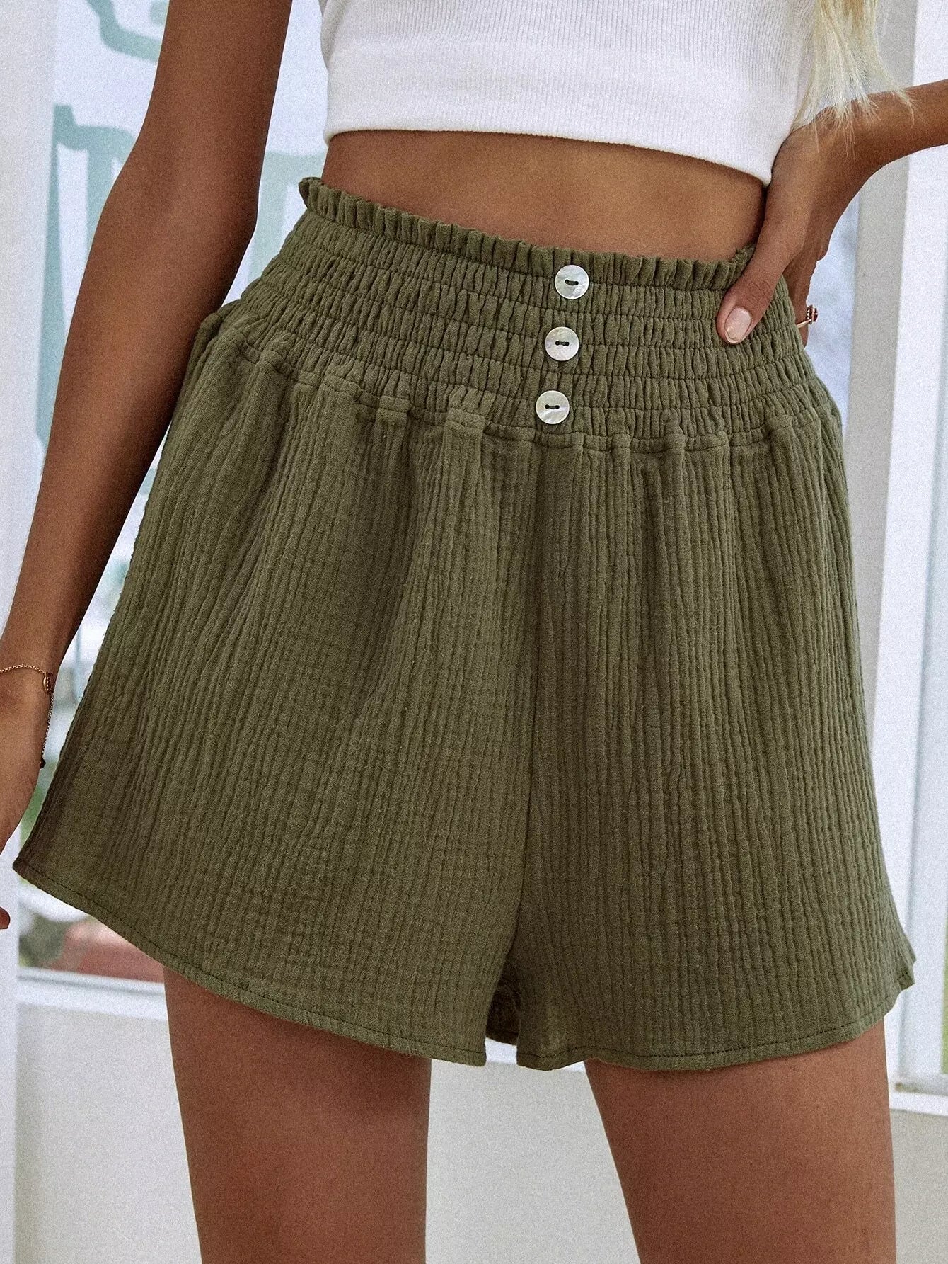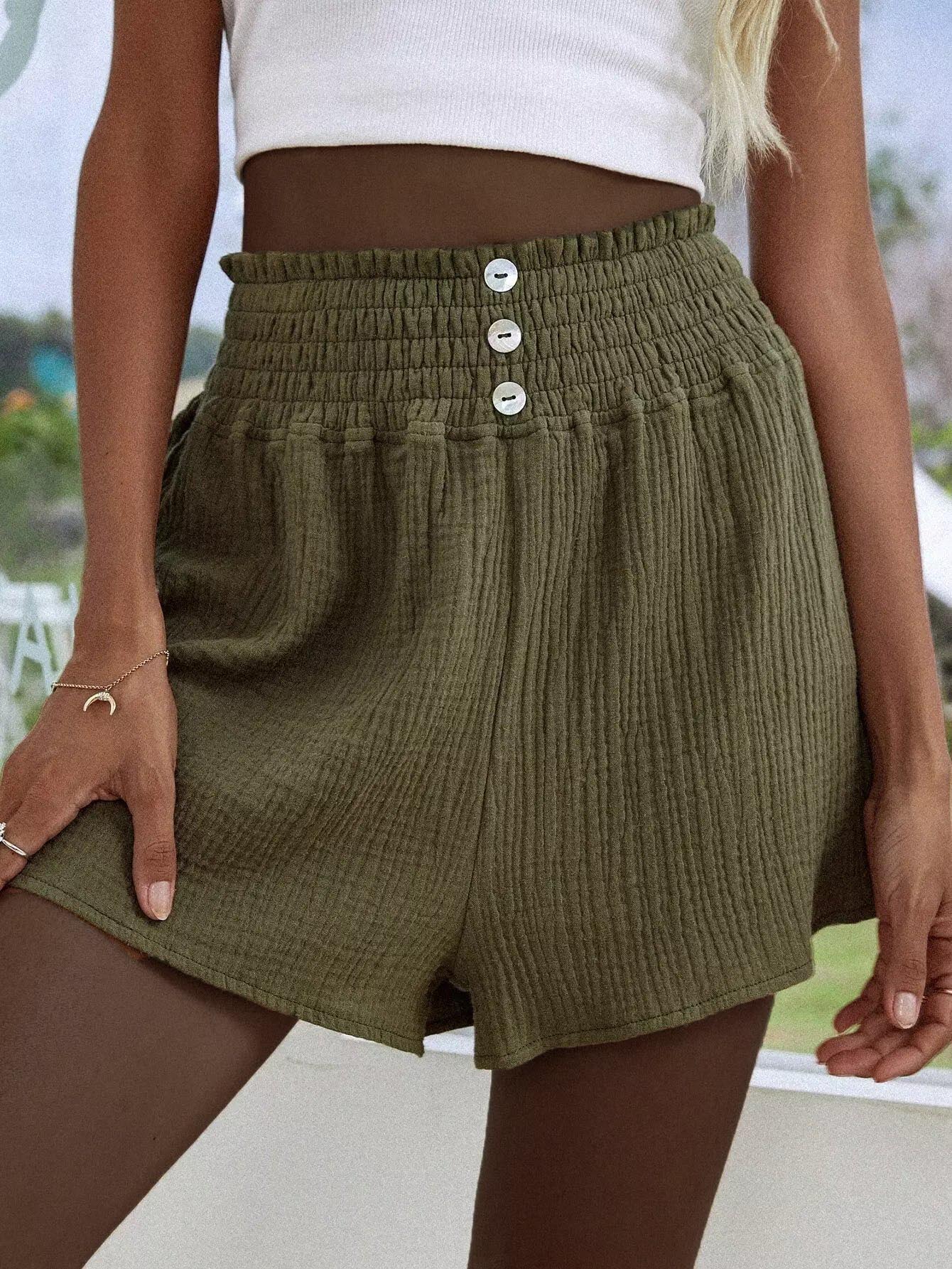 شورت بخصر مكشوف الخصر سادة