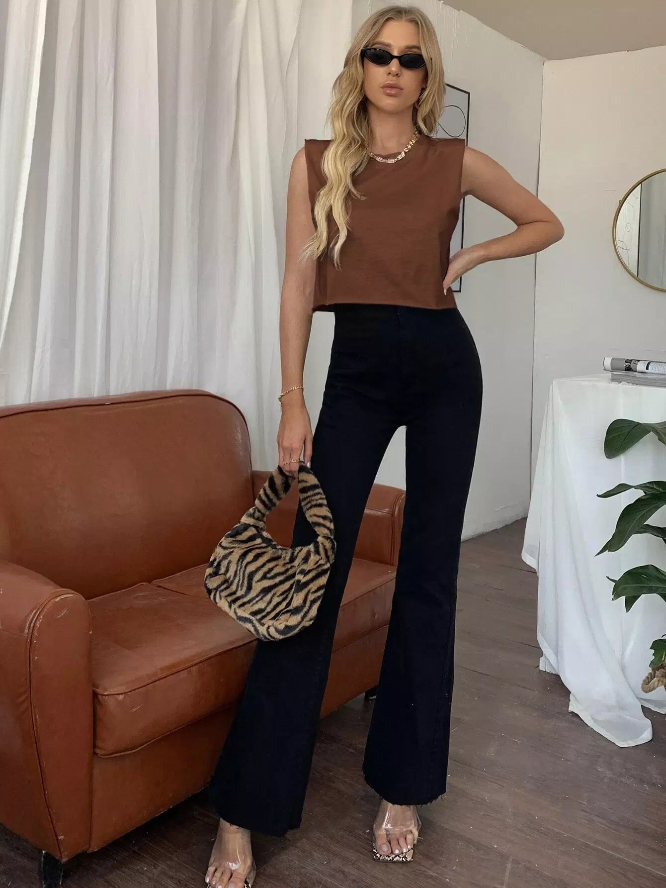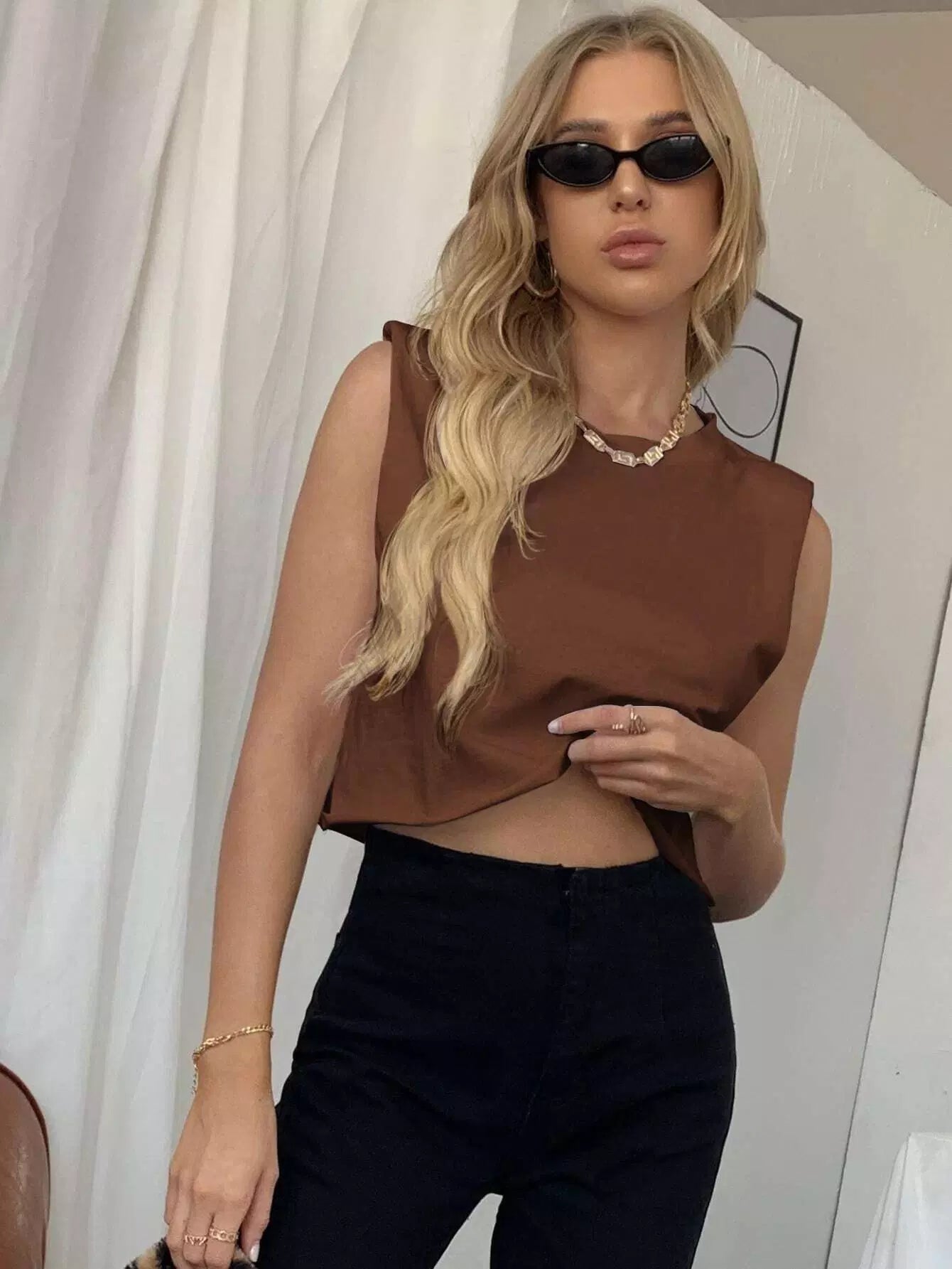 توب قصير بدون أكتاف على الكتف