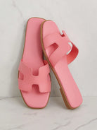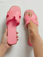 women SHUZIA All-Time Bestseller Women's Luxe-Inspired Harness Cutout Open Toe Minimalist Palm Print Pu Peach Pink Slides Slpiiers Spring Shoes Vacation Shoes Casual Shoes Beach Shoes Mother's Day Present