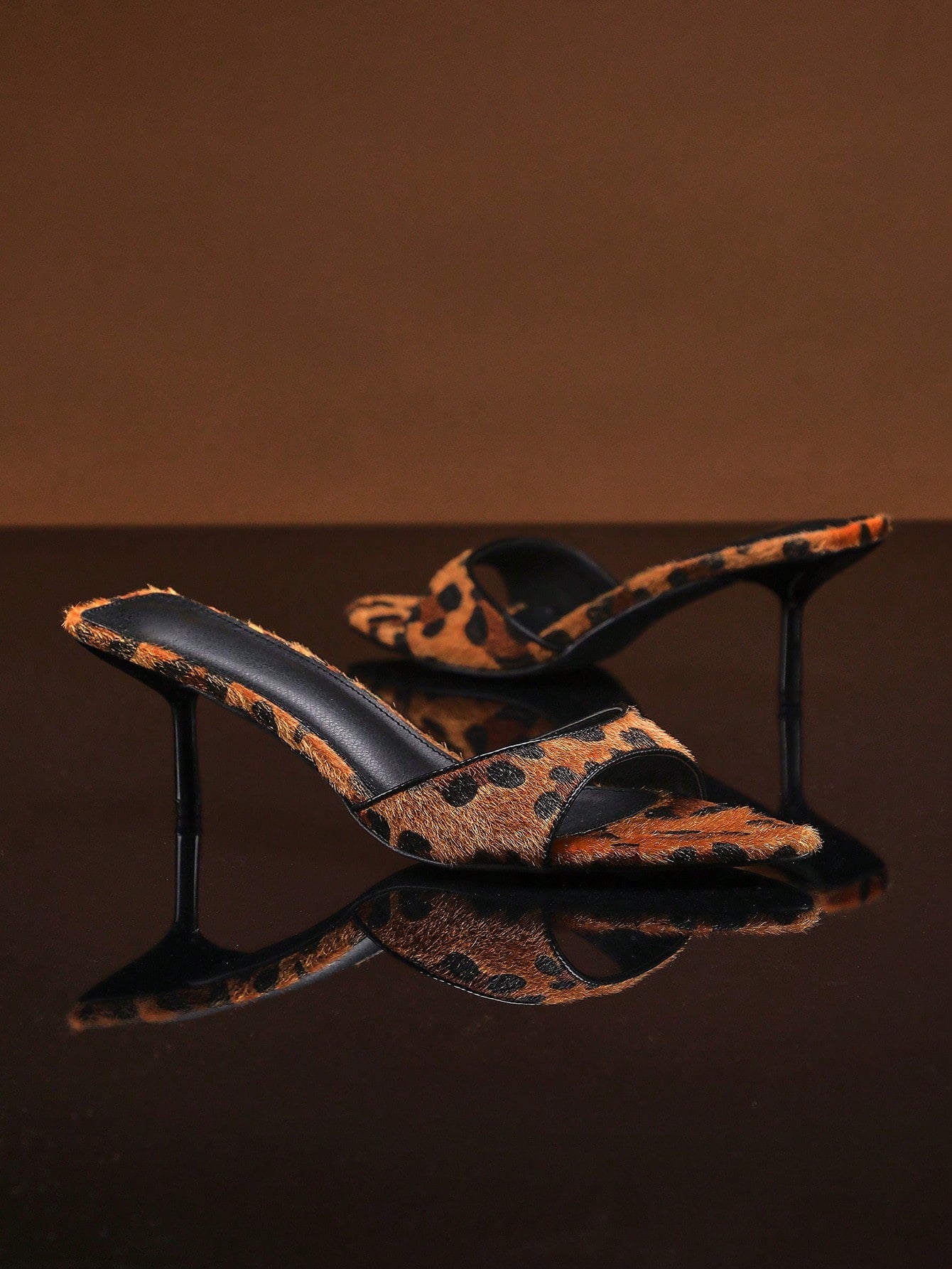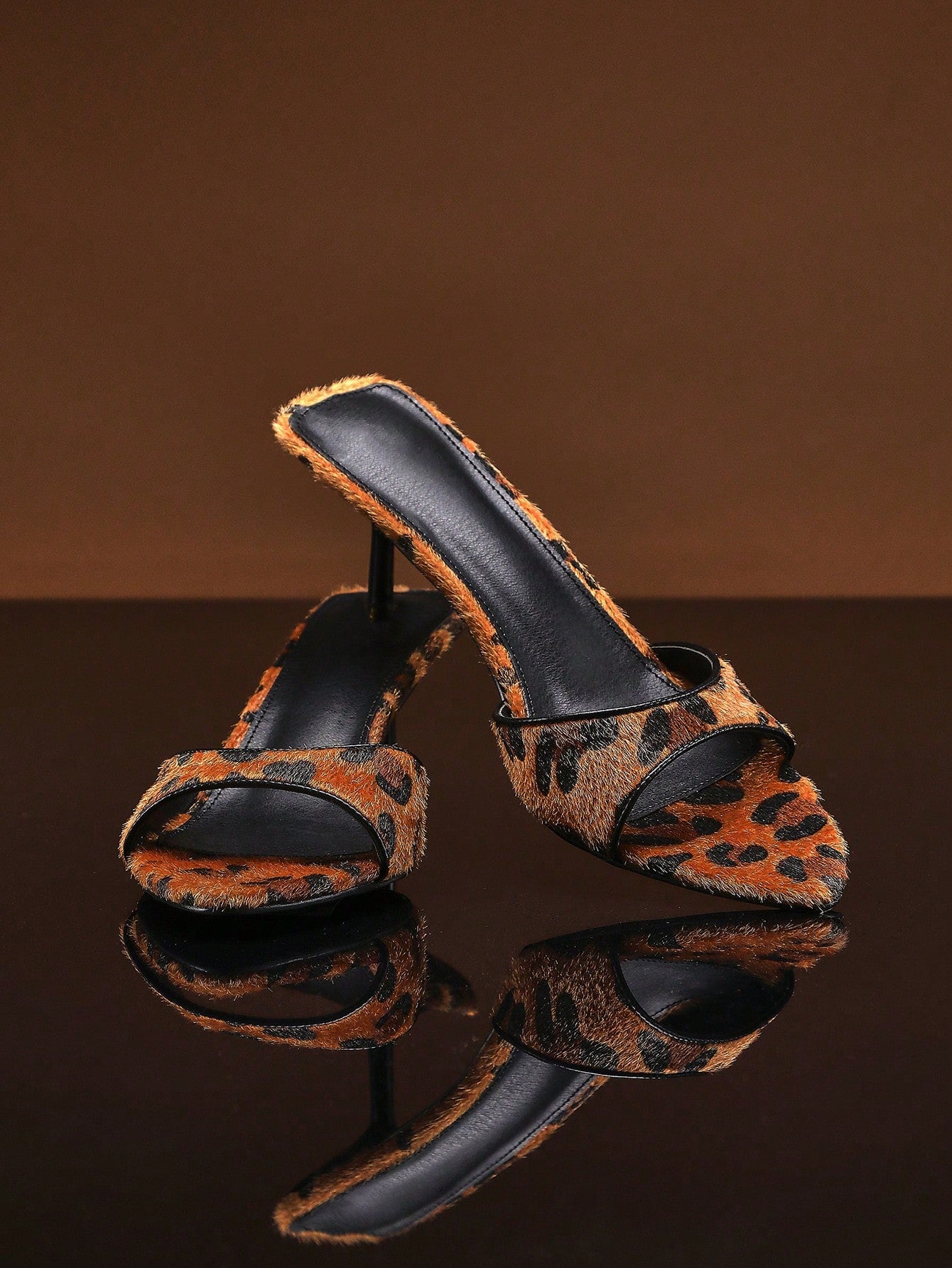 women SHUZIA Women Animal Print Everyday Simple Western Boho Feminine Party Sexy Faux Pony Hair Leopard High Heeled Sandals
