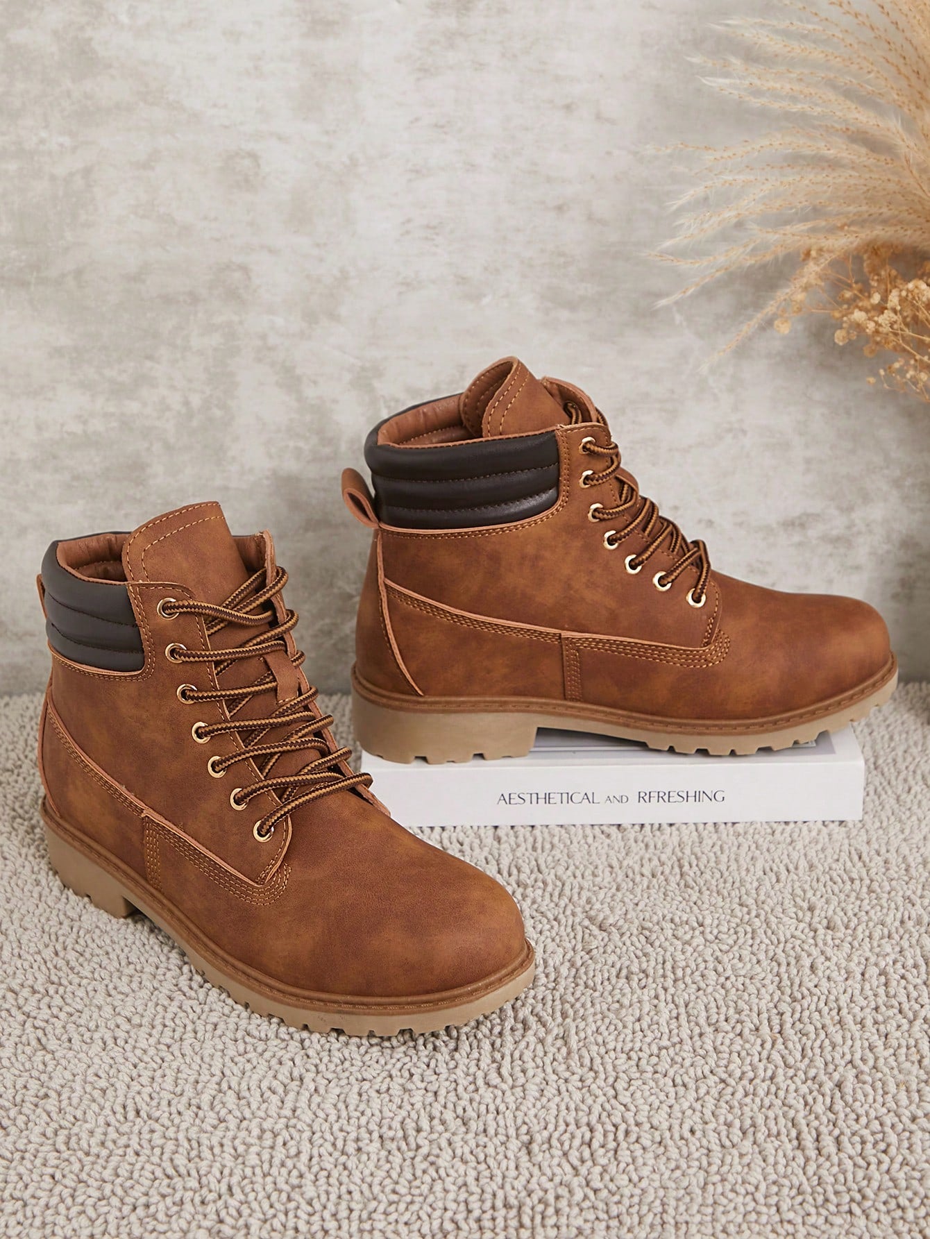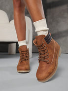 حذاء SHUZIA النسائي القتالي الصحراوي ذو اللون البني الفاتح القابل للارتداء في الاتجاهين - بطانة من الفرو قابلة للطي