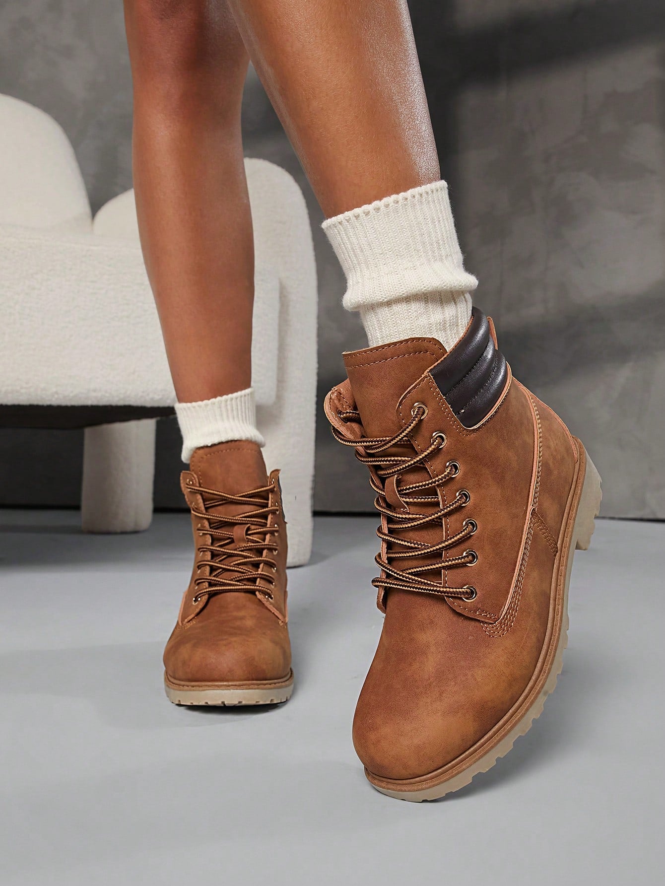 women SHUZIA Women's Tan Two-Way Wear Desert Combat Boots – Fold-Over Fur Lining