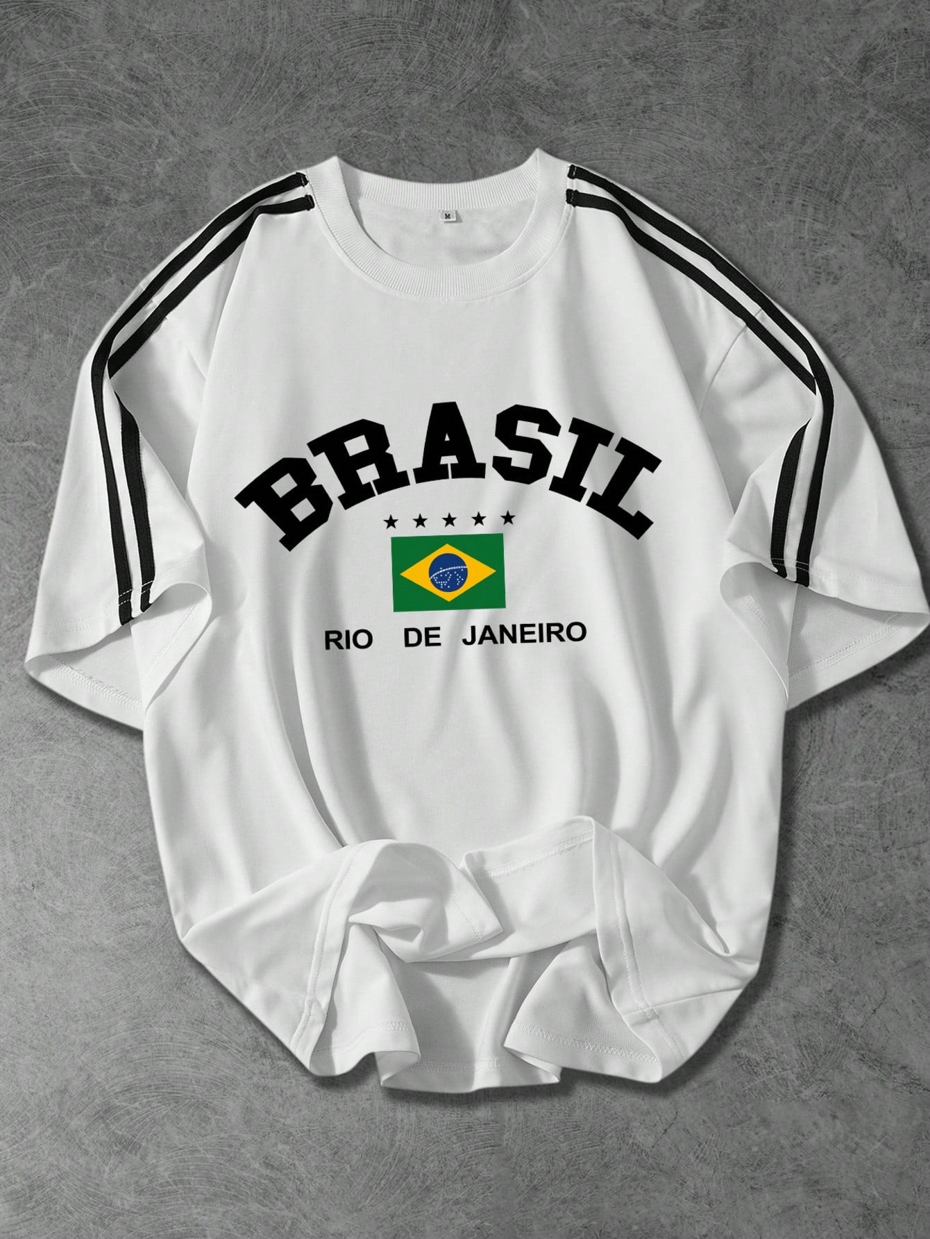 تي شيرت شوي رجالي صيفي رياضي بأكمام قصيرة وشريط أسود مع علم البرازيل