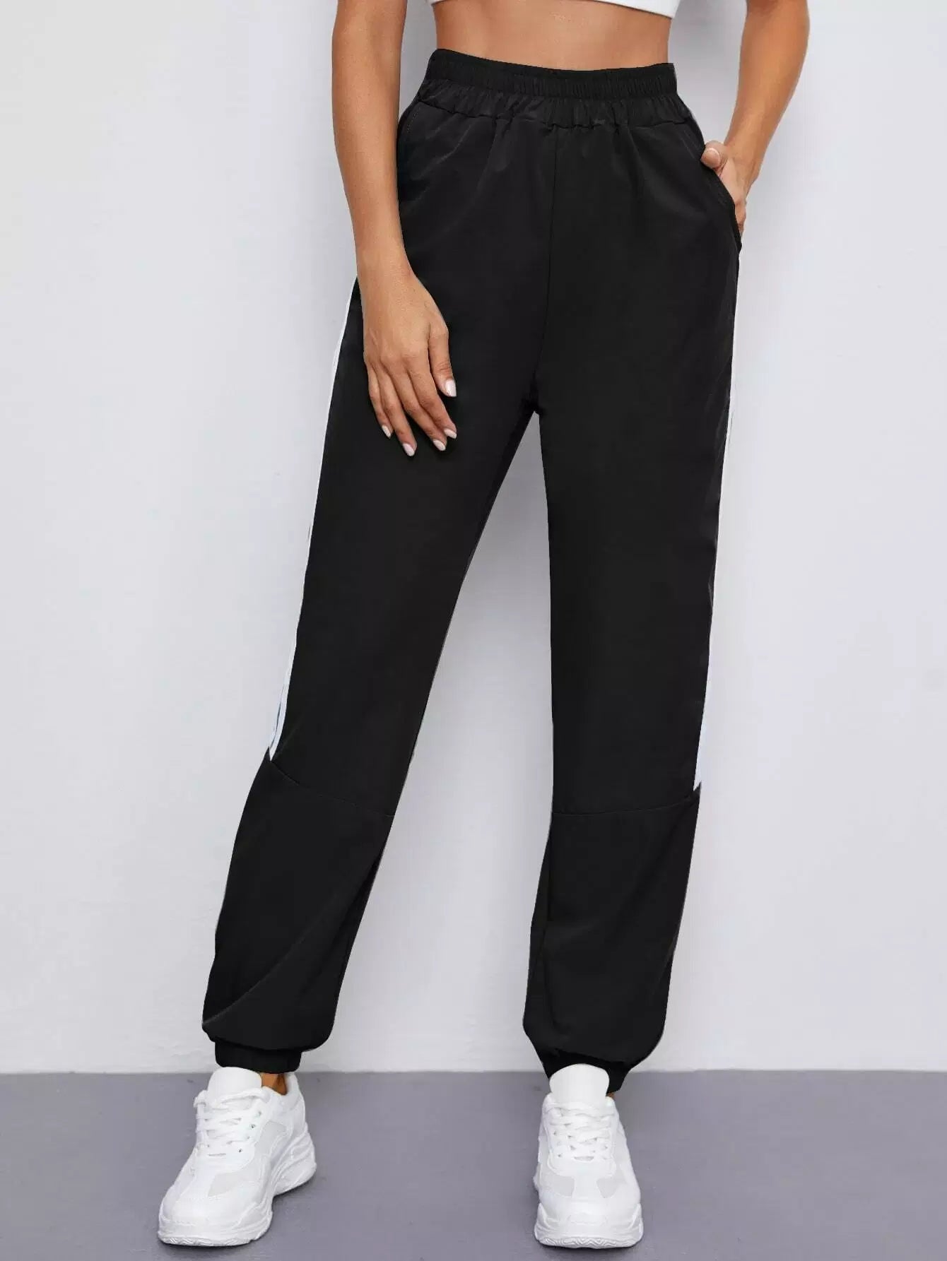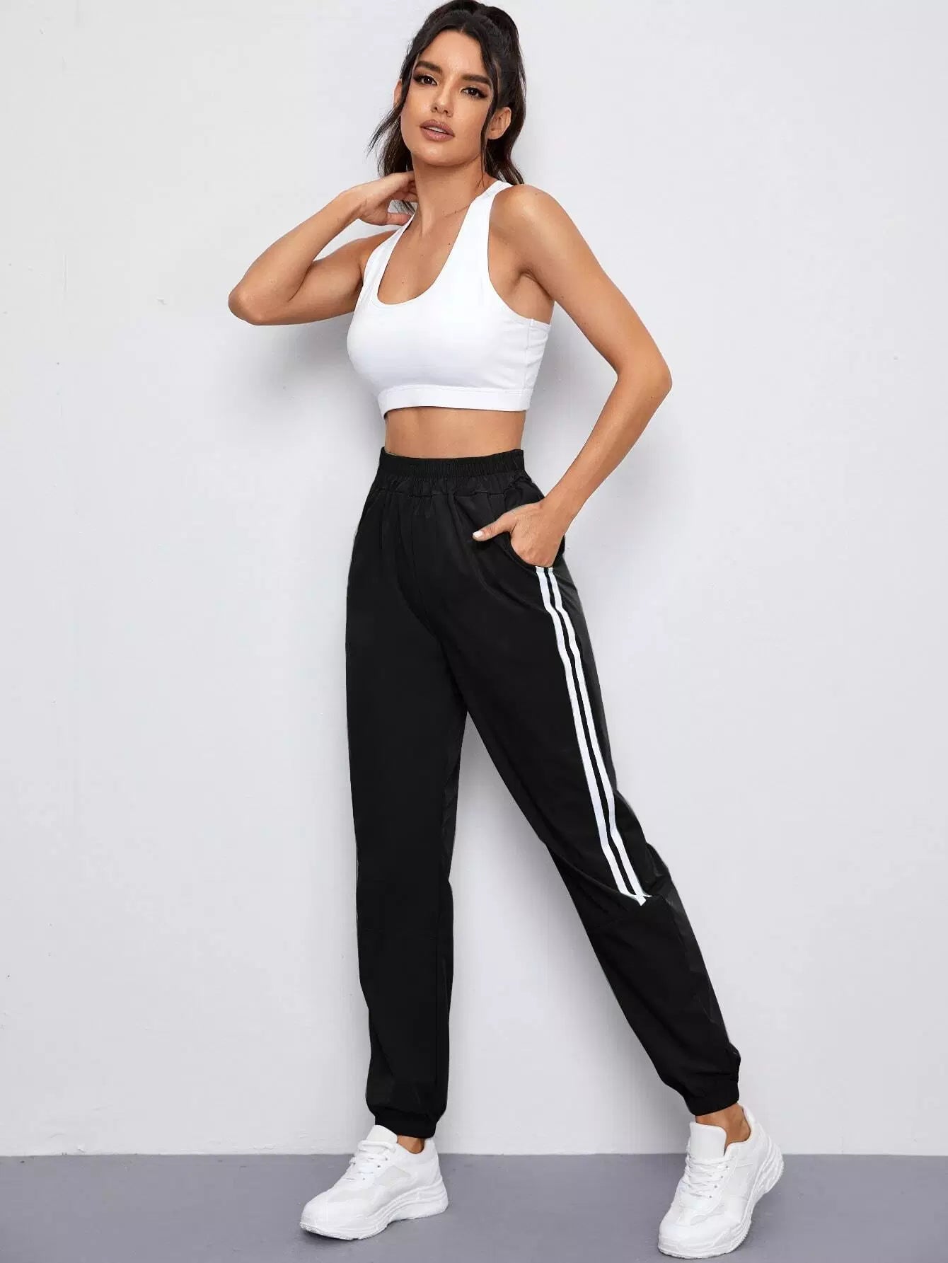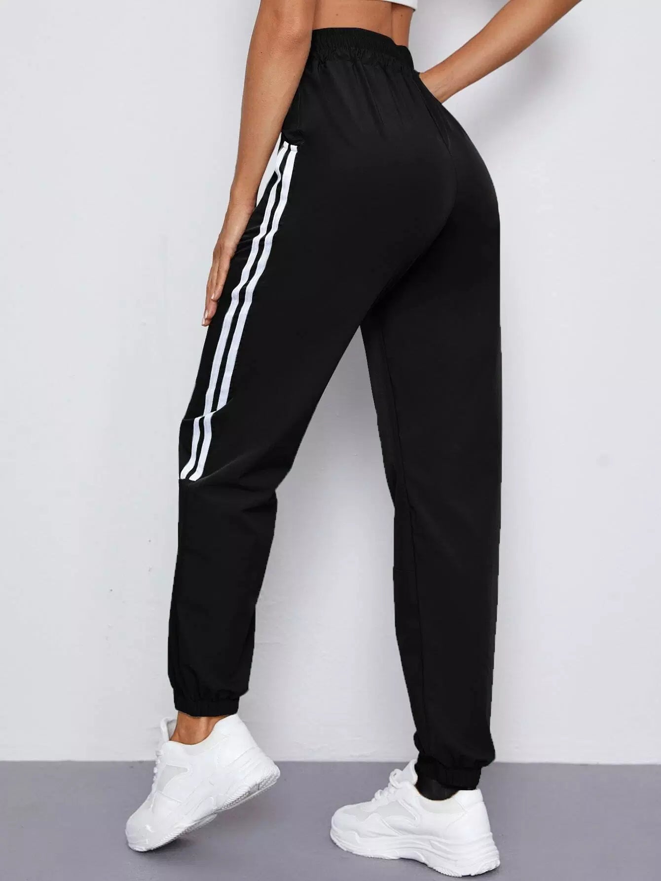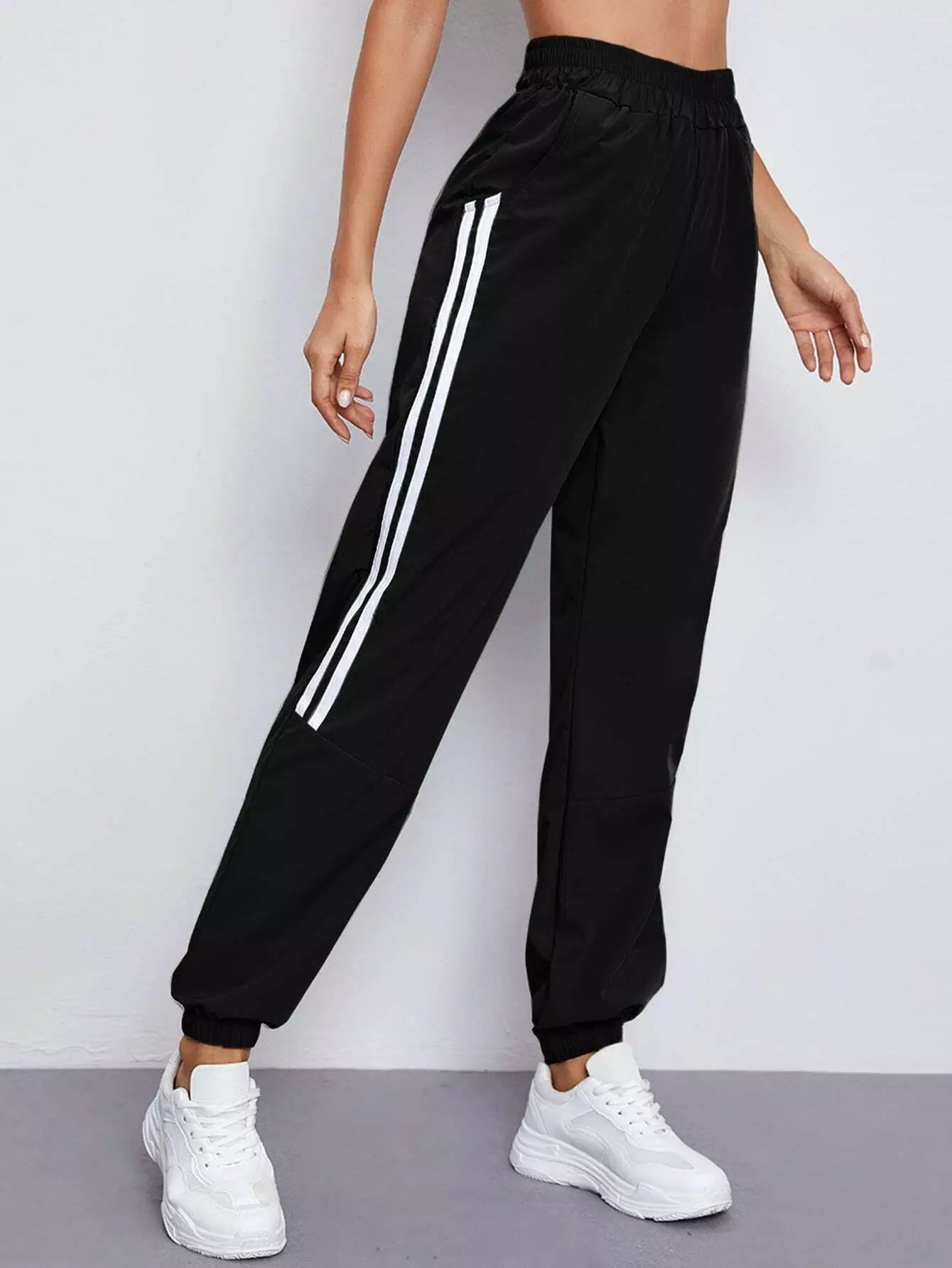 بنطلون رياضي بجيب مائل مخطط على الجانبين