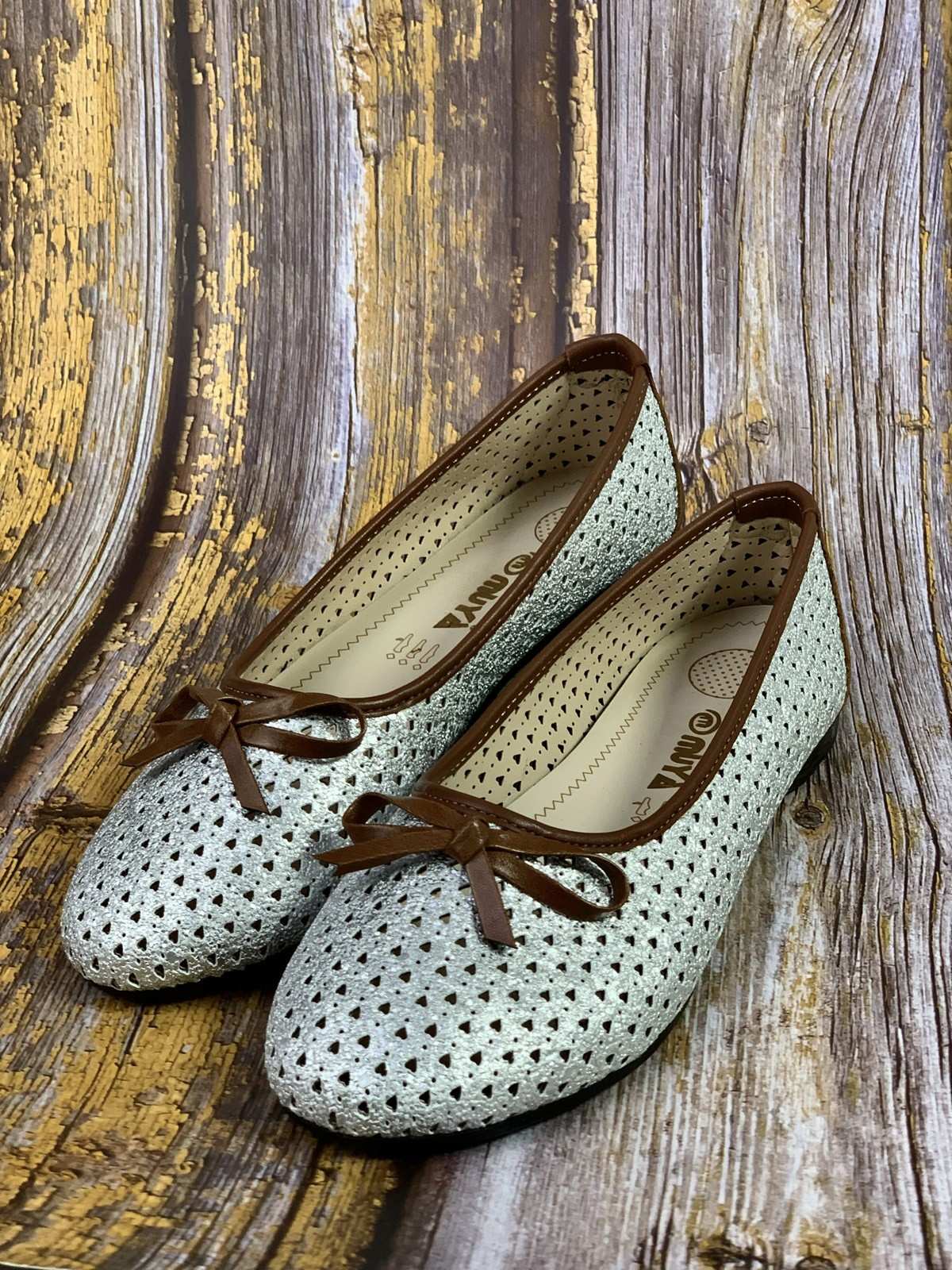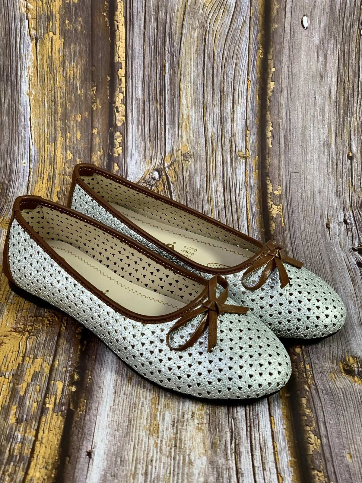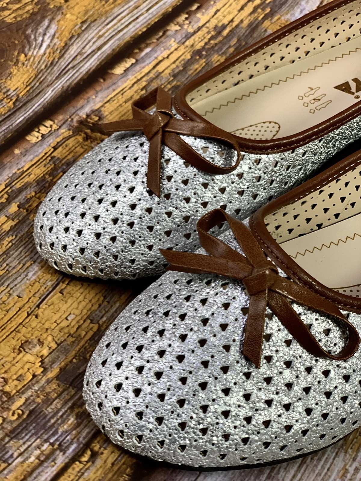حذاء فضي مع ثقوب