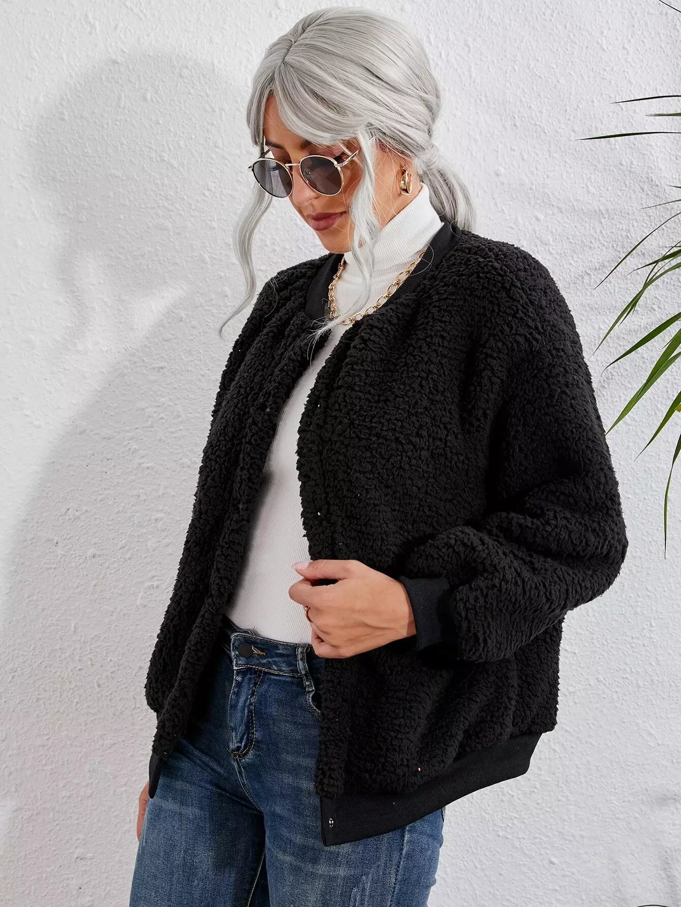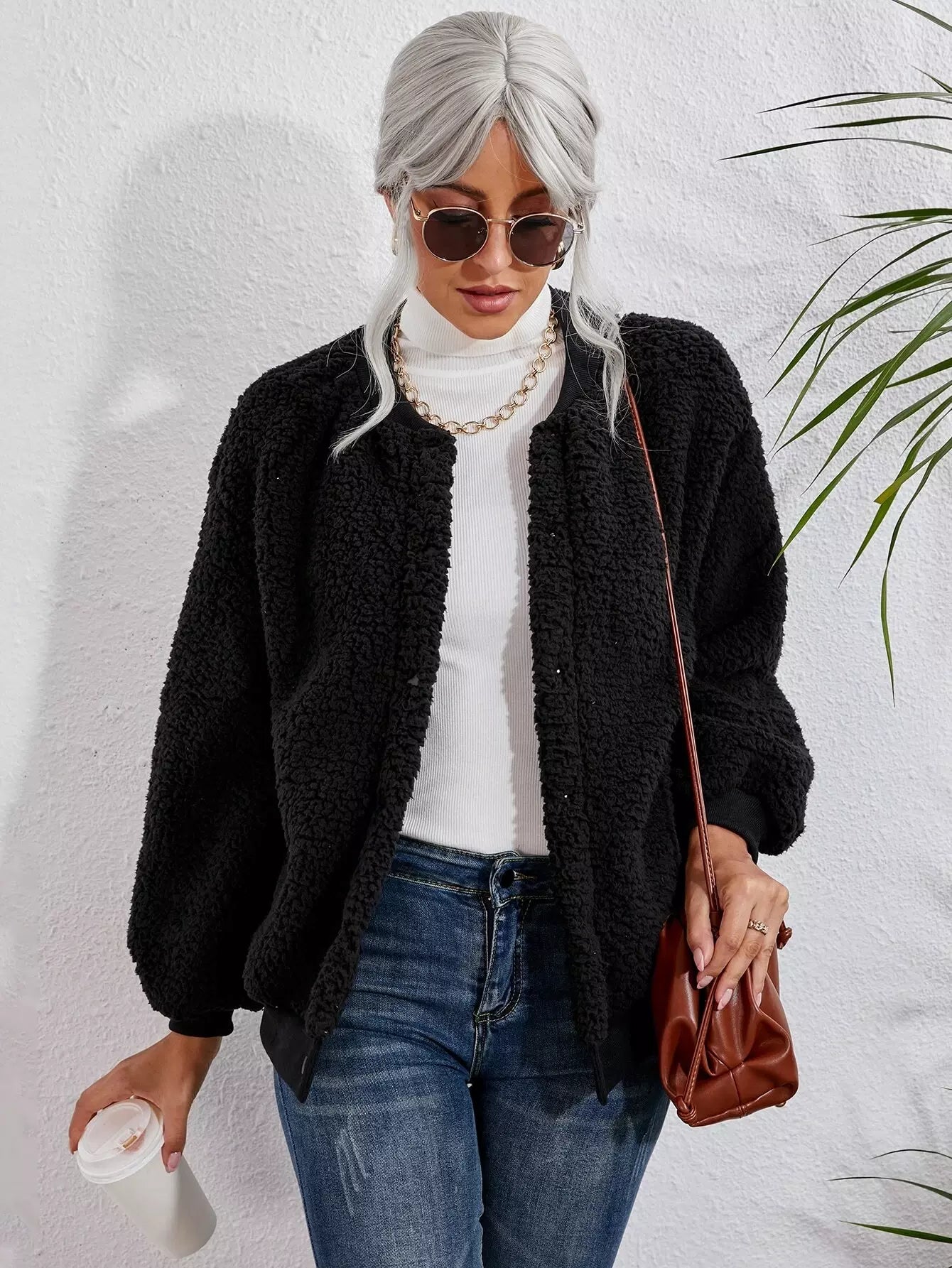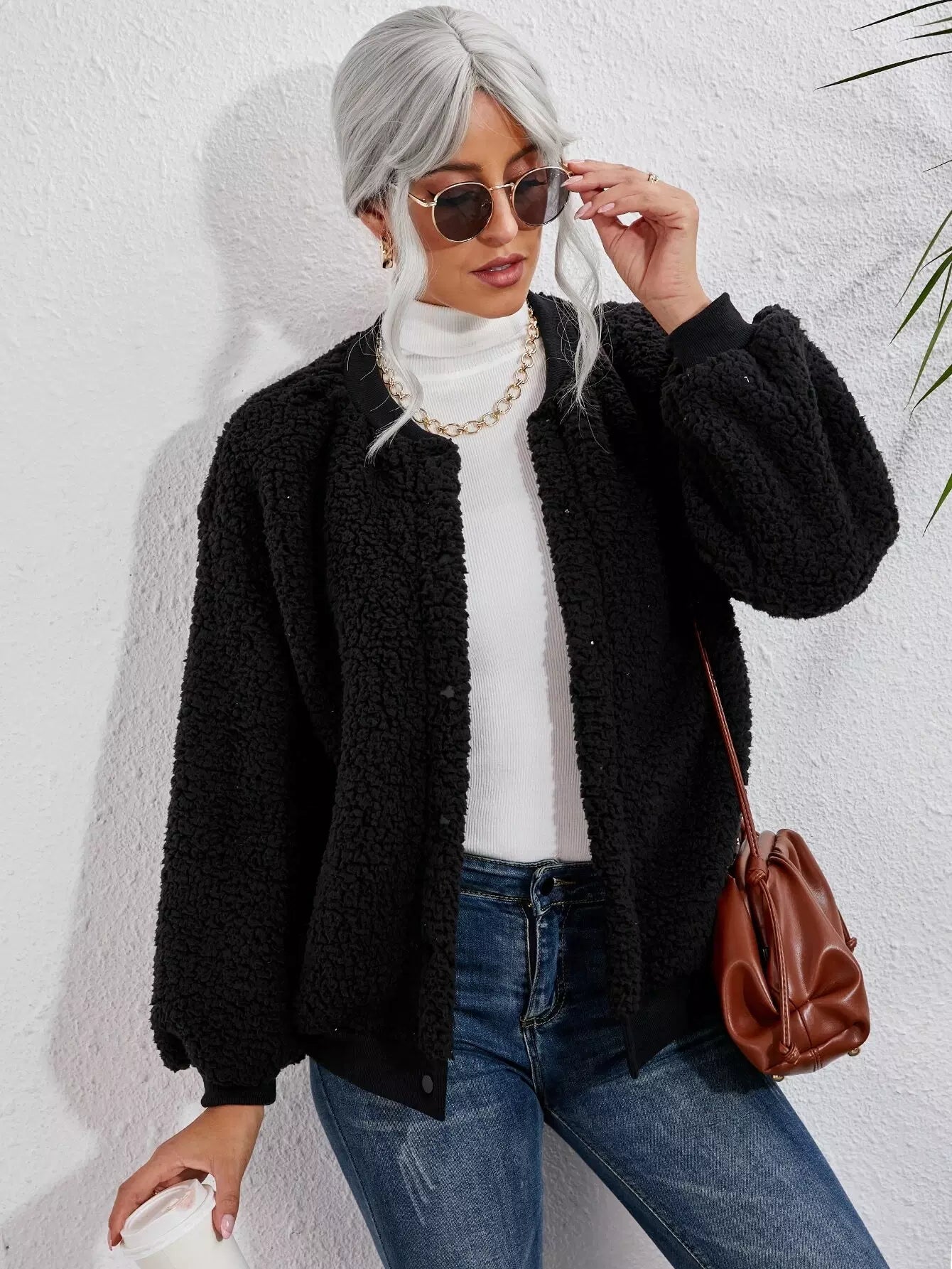 جاكيت صوف منسدل الكتفين بصدر واحد