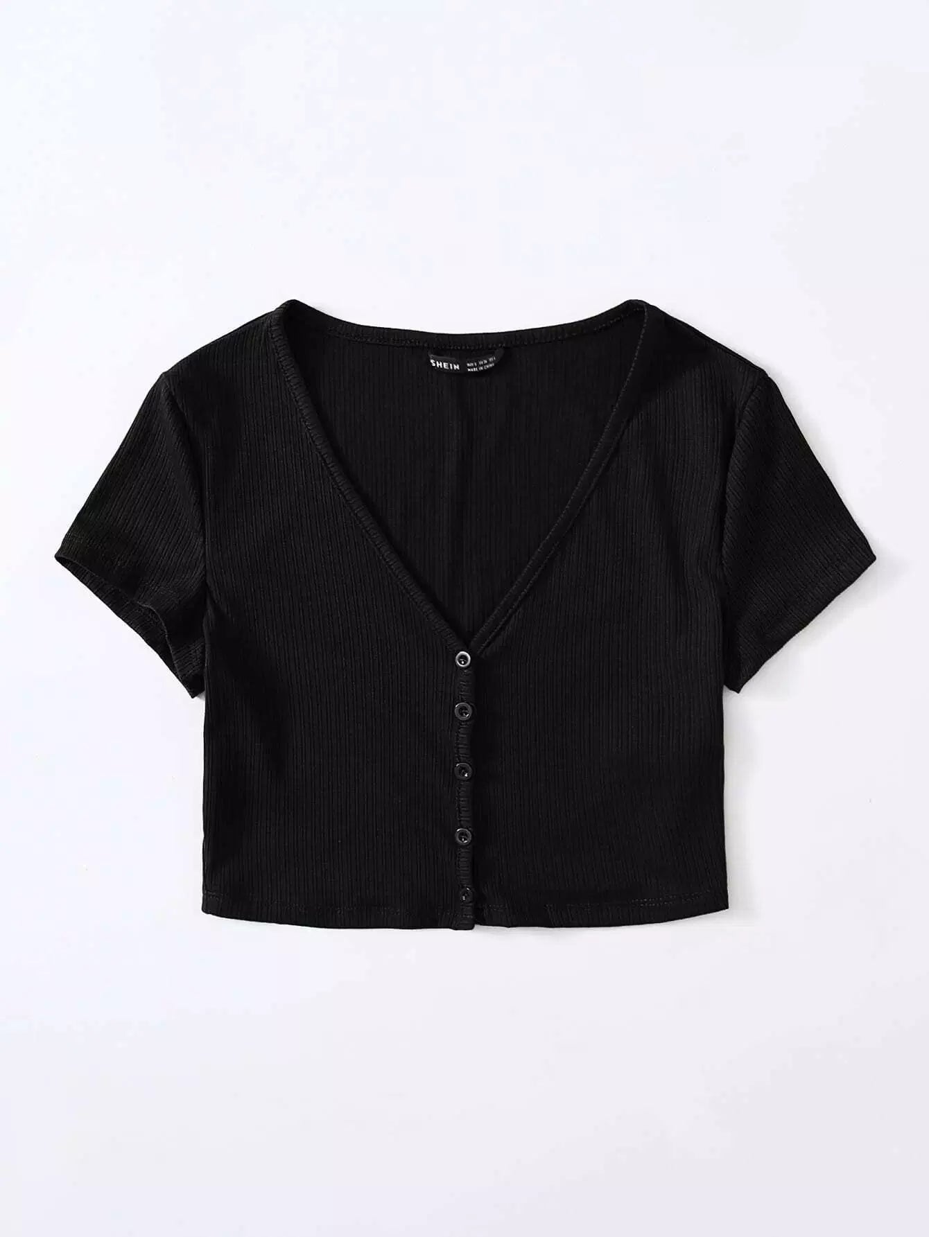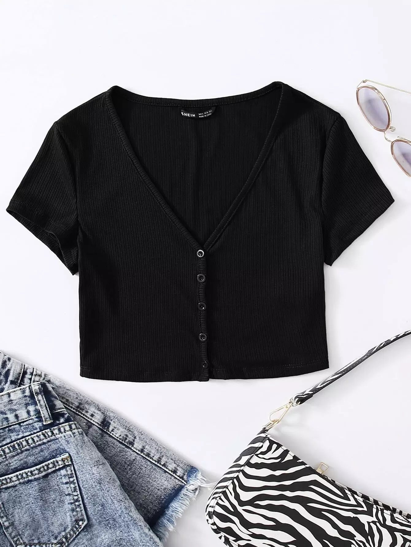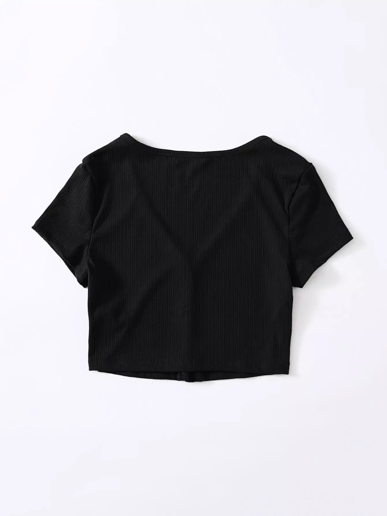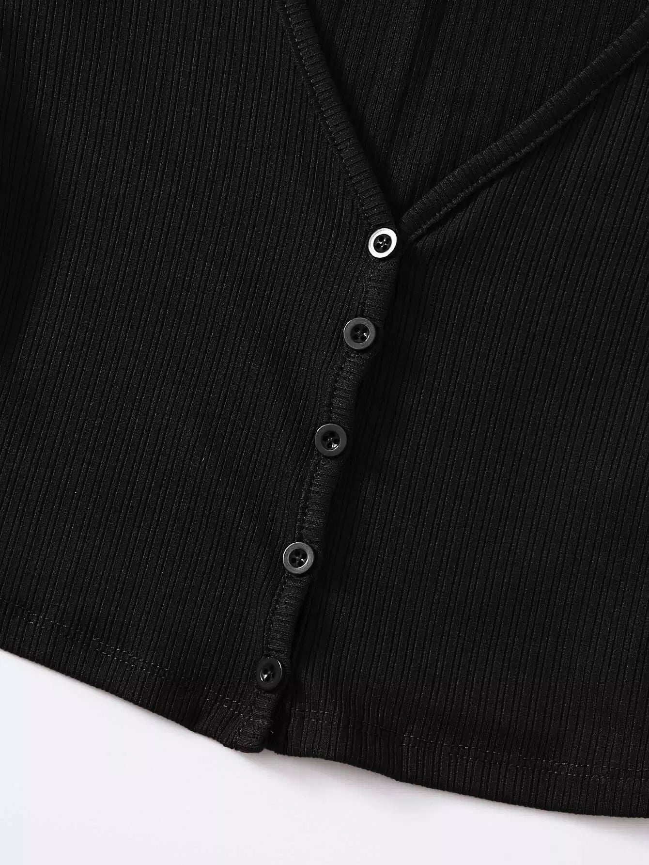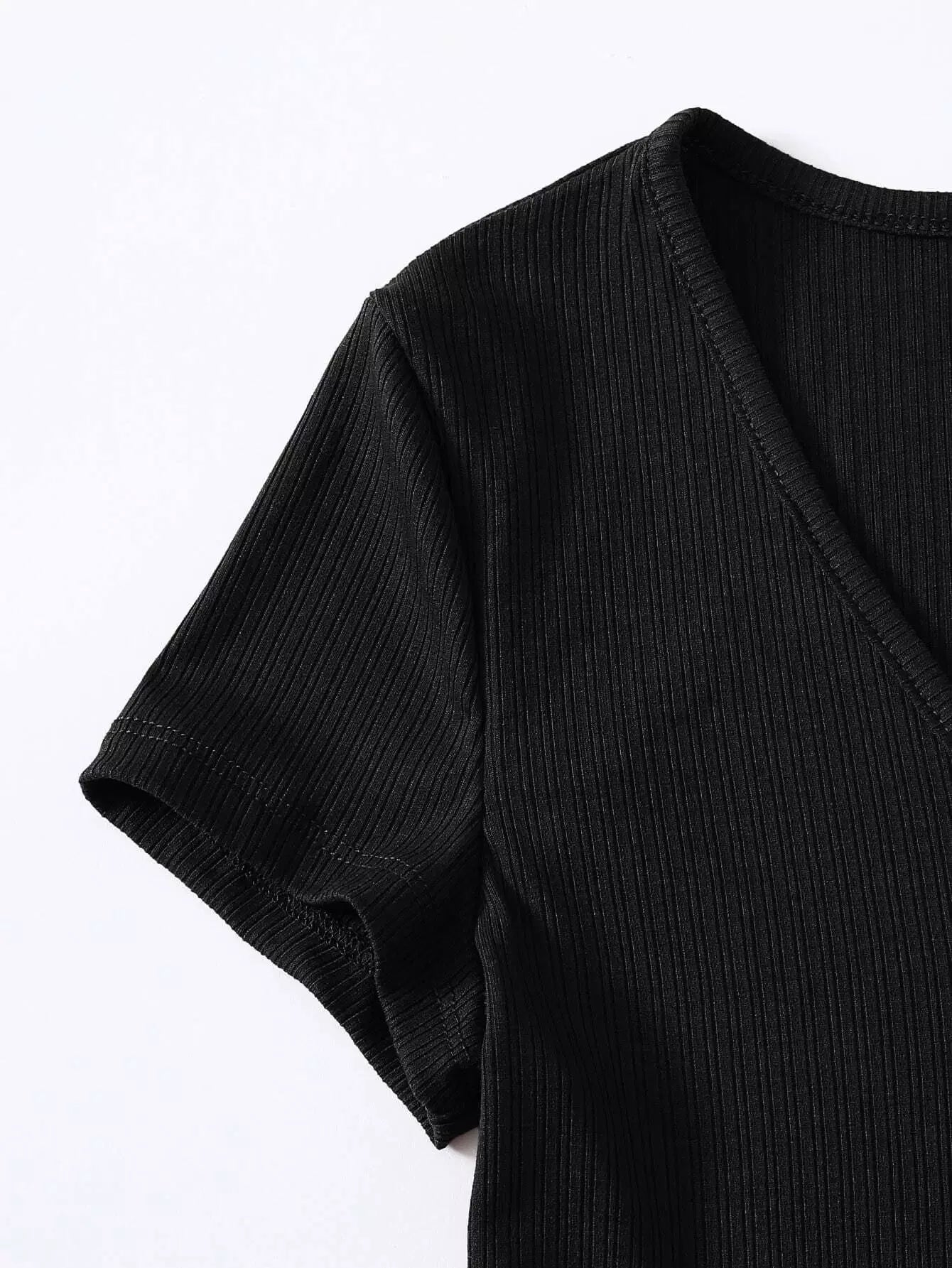 تي شيرت بصدر واحد محبوك على شكل ضلع واحد محبوك سادة