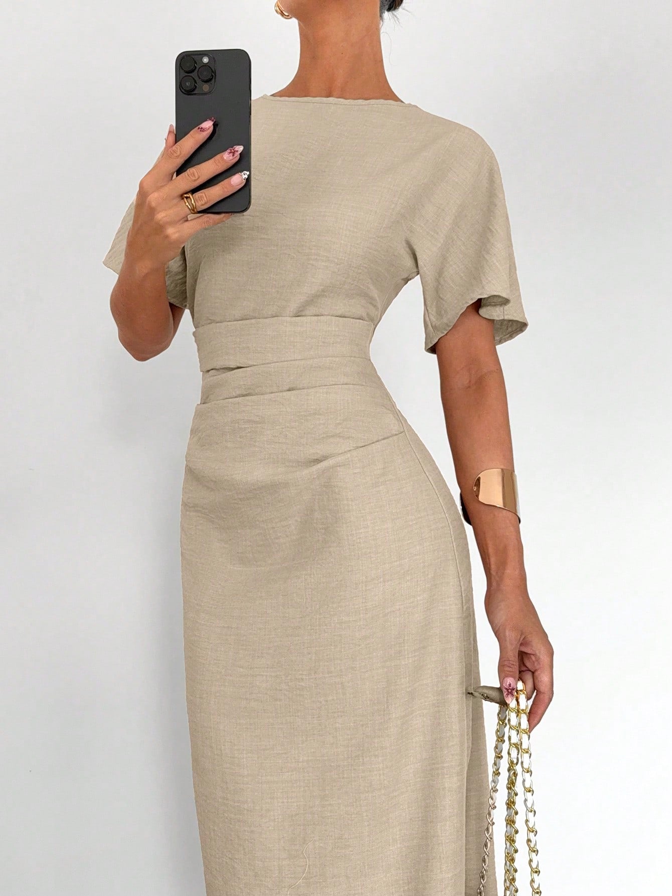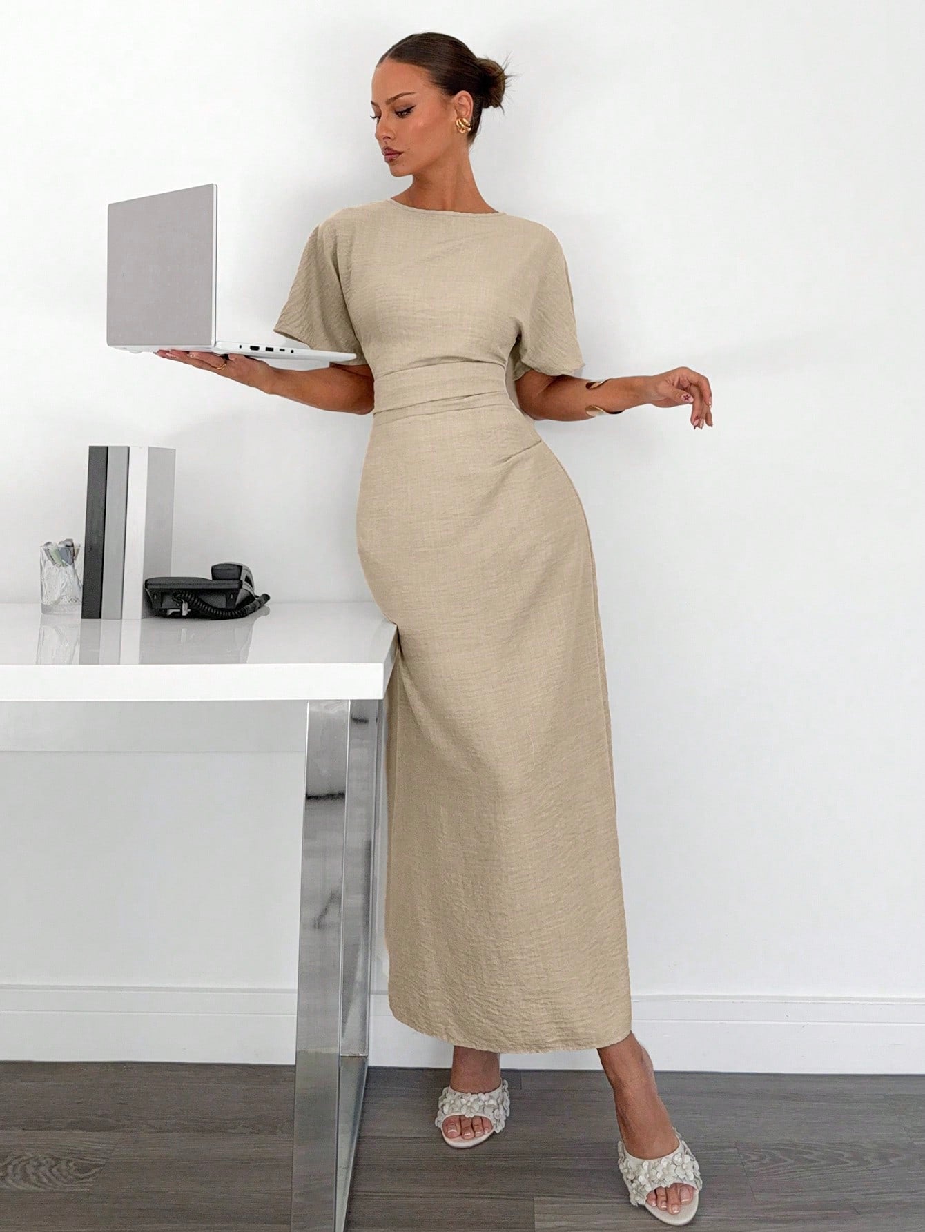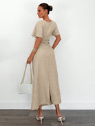 فستان صيفي نسائي من الكتان المخلوط بلون موحد من سايرن جيز، لون أصفر زبدة، فساتين أنيقة وراقية.