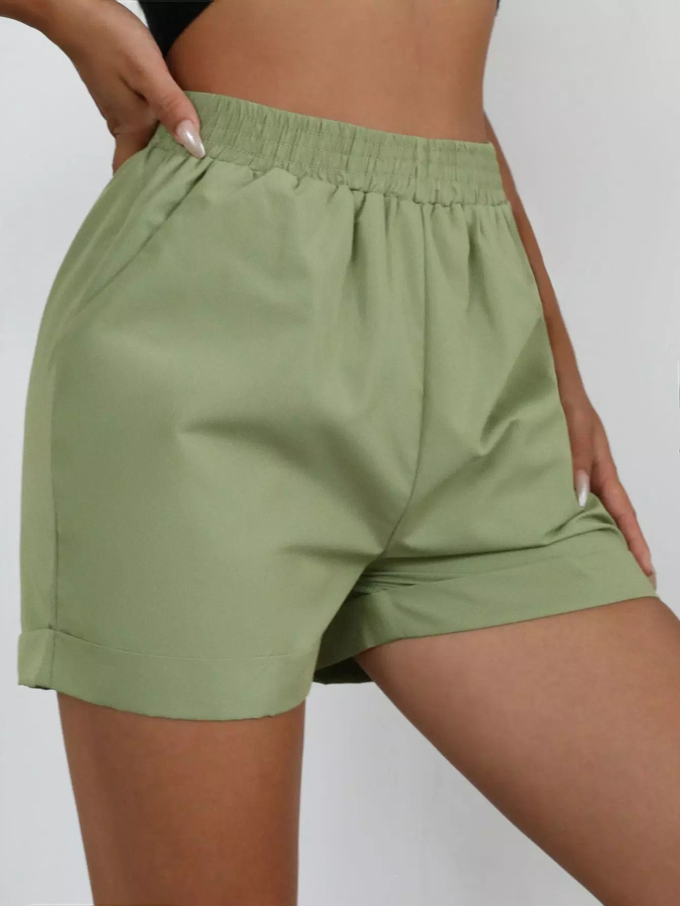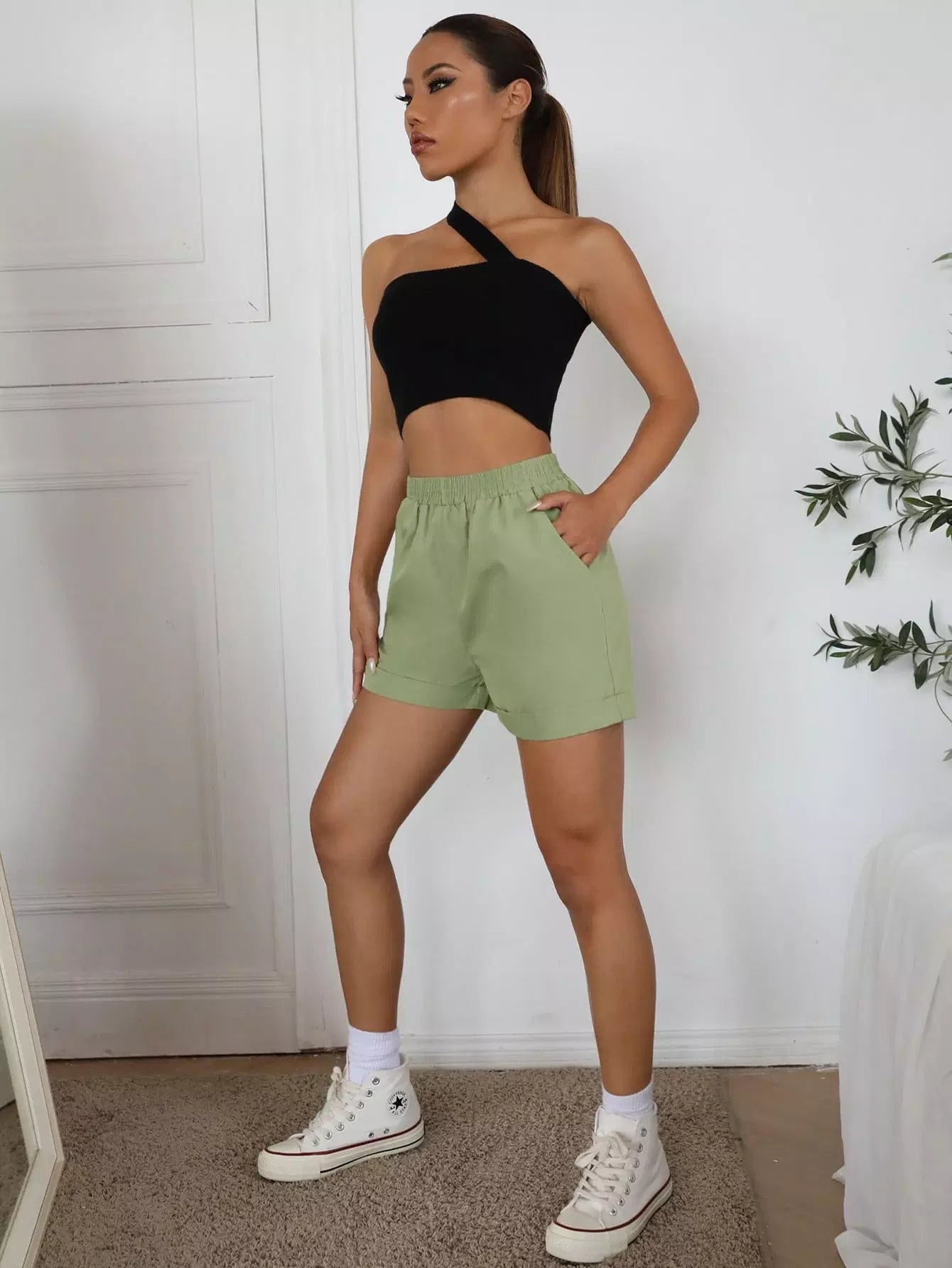 شورت ذو جيب مائل وحاشية ملفوفة